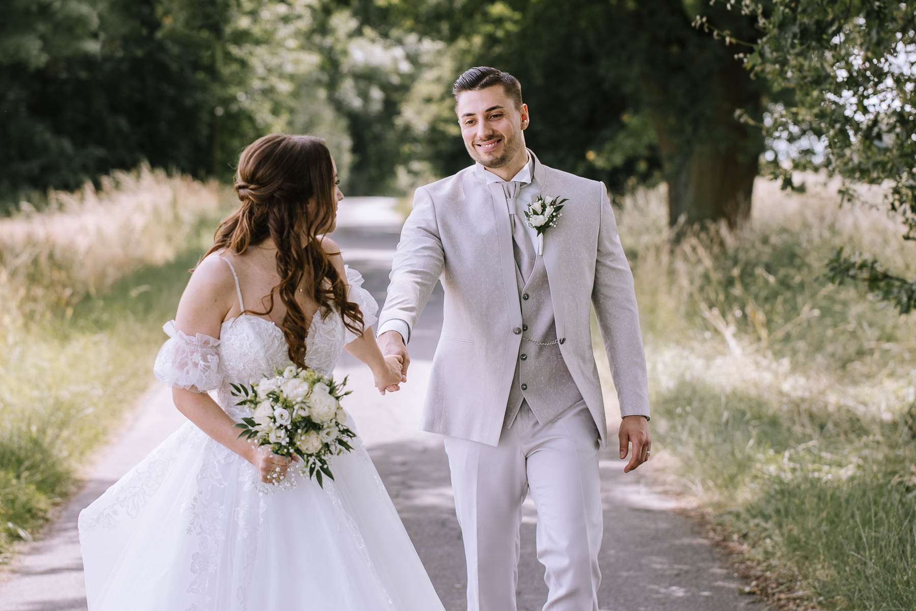 Das Hochzeitsshooting ist oft eines DER Highlights eurer Hochzeitsreportage. Die Bilder, die beim Hochzeitsshooting entstehen, sind meistens auch die, die später auf einem Schrank in eurer Wohnung stehen werden. Oft werden sie auch für Danksagungskarten o.Ä. verwendet und sollten euch dementsprechend gut gefallen. Viele Brautpaare haben Bedenken, dass sie auf den Bildern vom Brautpaarshooting nicht gut aussehen oder sind unsicher, ob sie das mit dem „Posen“ hinbekommen. Und glaubt mir, diese Gedanken macht sich nahezu JEDES Paar. Also keine Panik. Meine Shootings laufen immer sehr locker ab und ich werde euch die ganze Zeit anleiten, damit wir euch bestmöglich beim in Szene setzen. In Szene setzen bedeutet bei mir nicht, dass ich euch in starre Posen zwinge. Ich gebe euch vielmehr Tipps, wie ihr miteinander interagieren könnt, sodass jede Pose immer noch natürlich aussieht und echte Emotionen entstehen können. So konnte ich bisher jedem Paar ein natürliches Lächeln, ein herzhaftes Lachen oder einen verliebten Blick