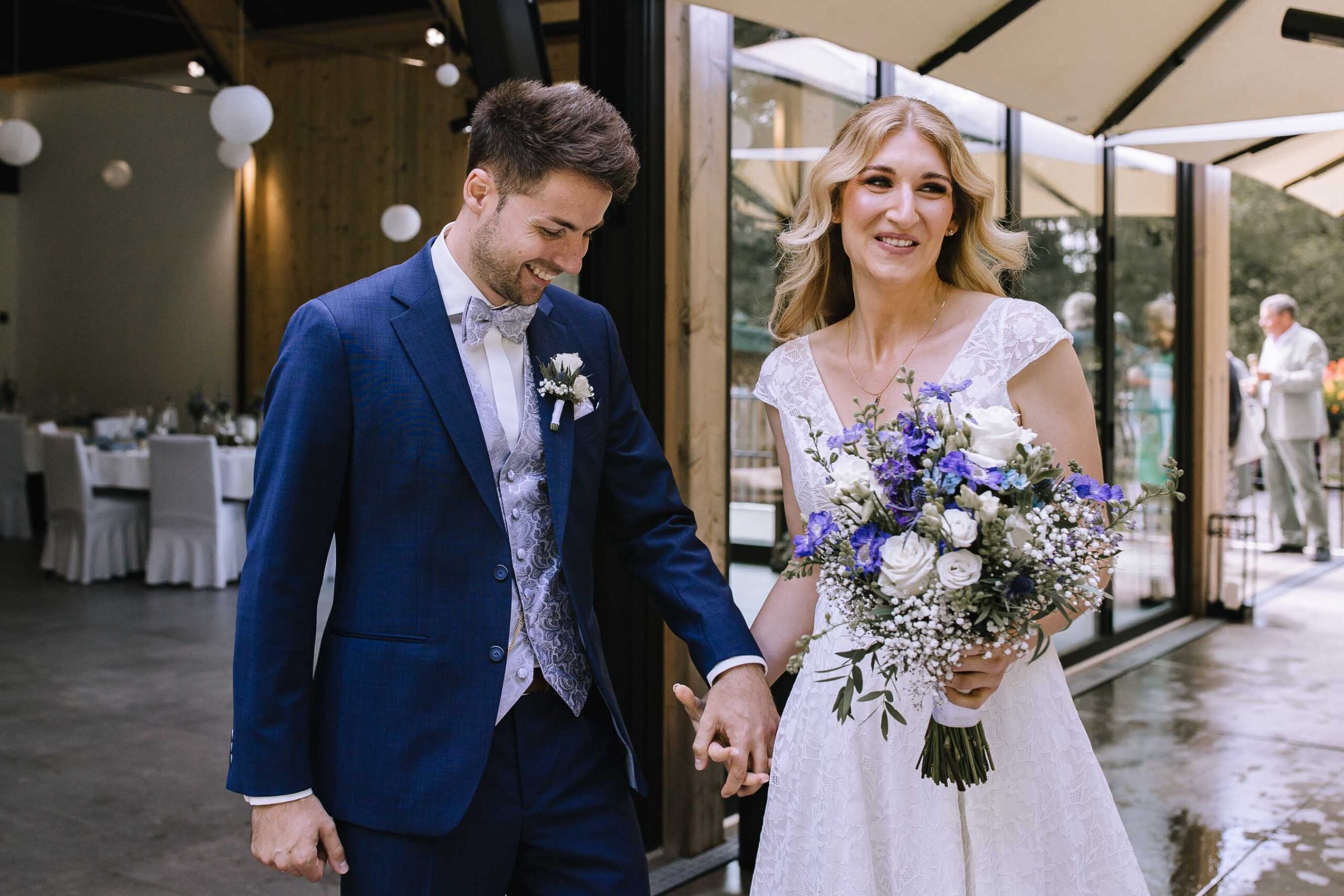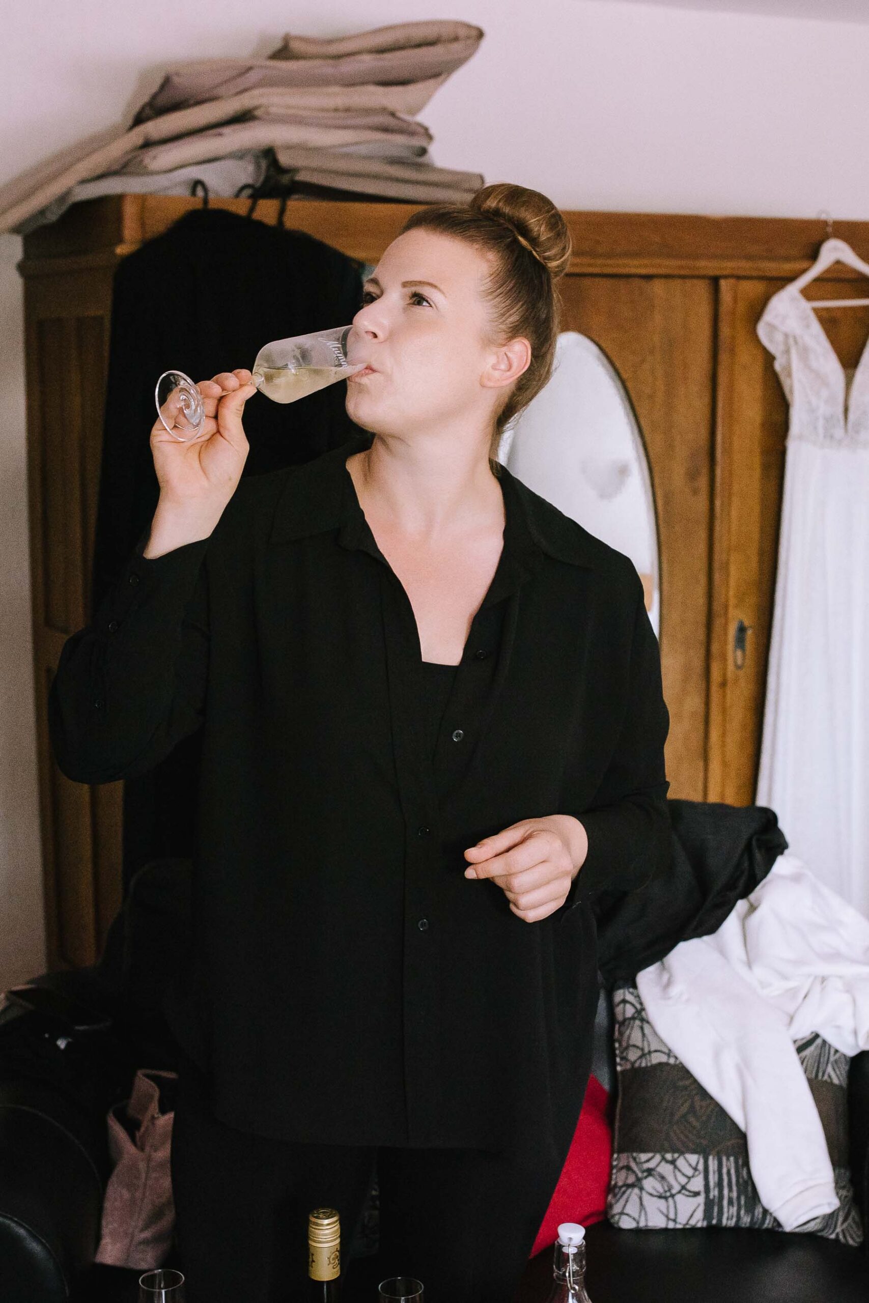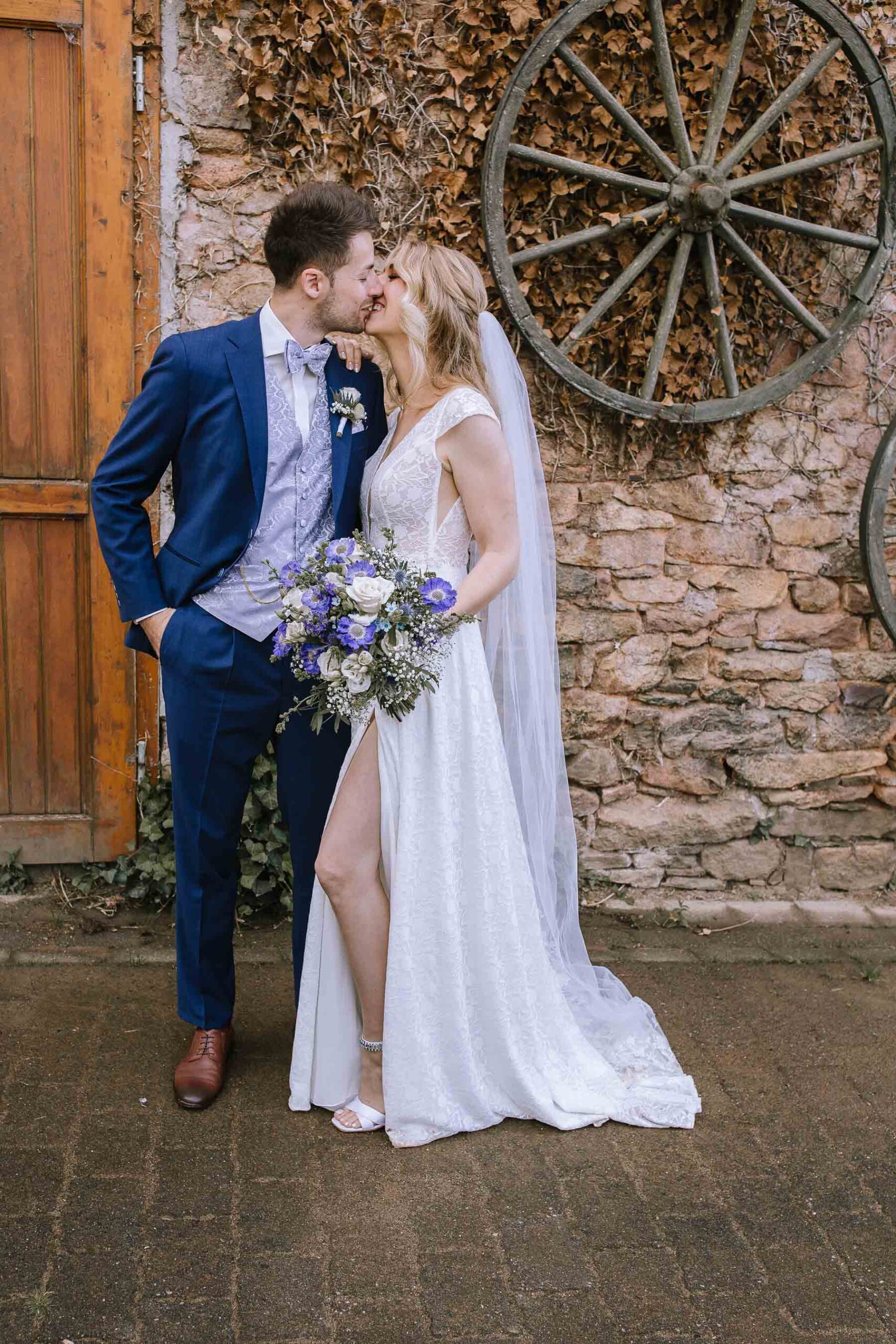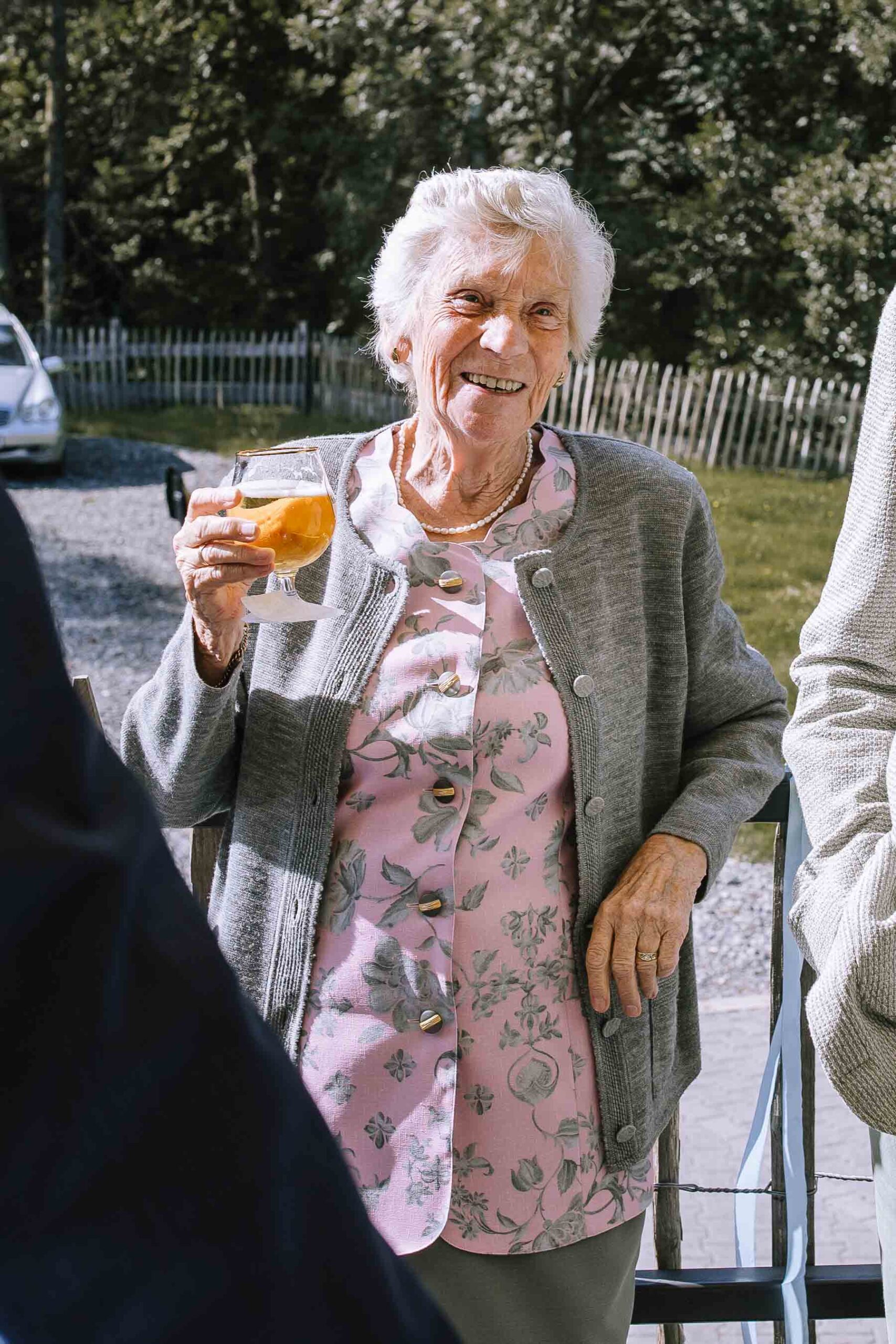 Direkt nach dem First Look ging es weiter zur standesamtlichen Trauung in der gemütlichen Scheune von Gut Ahe. Die Scheune ist ein super schöner Ort für eine Ambientetrauung in NRW, da man auch bei Sauerländer Regenwetter im trockenen sitzt. Sie hat genau das, was eine Trauung braucht: Wärme, Geborgenheit und einen Hauch von rustikalem Charme. Annika und Sven gaben sich dort das Ja-Wort und der Moment war genauso emotional und einzigartig wie der First Look. Nach der Trauung folgte ein Sektempfang, bei dem sich alle Gäste herzlich beglückwünschten und die Stimmung genauso leicht und herzlich war wie der Tag selbst.