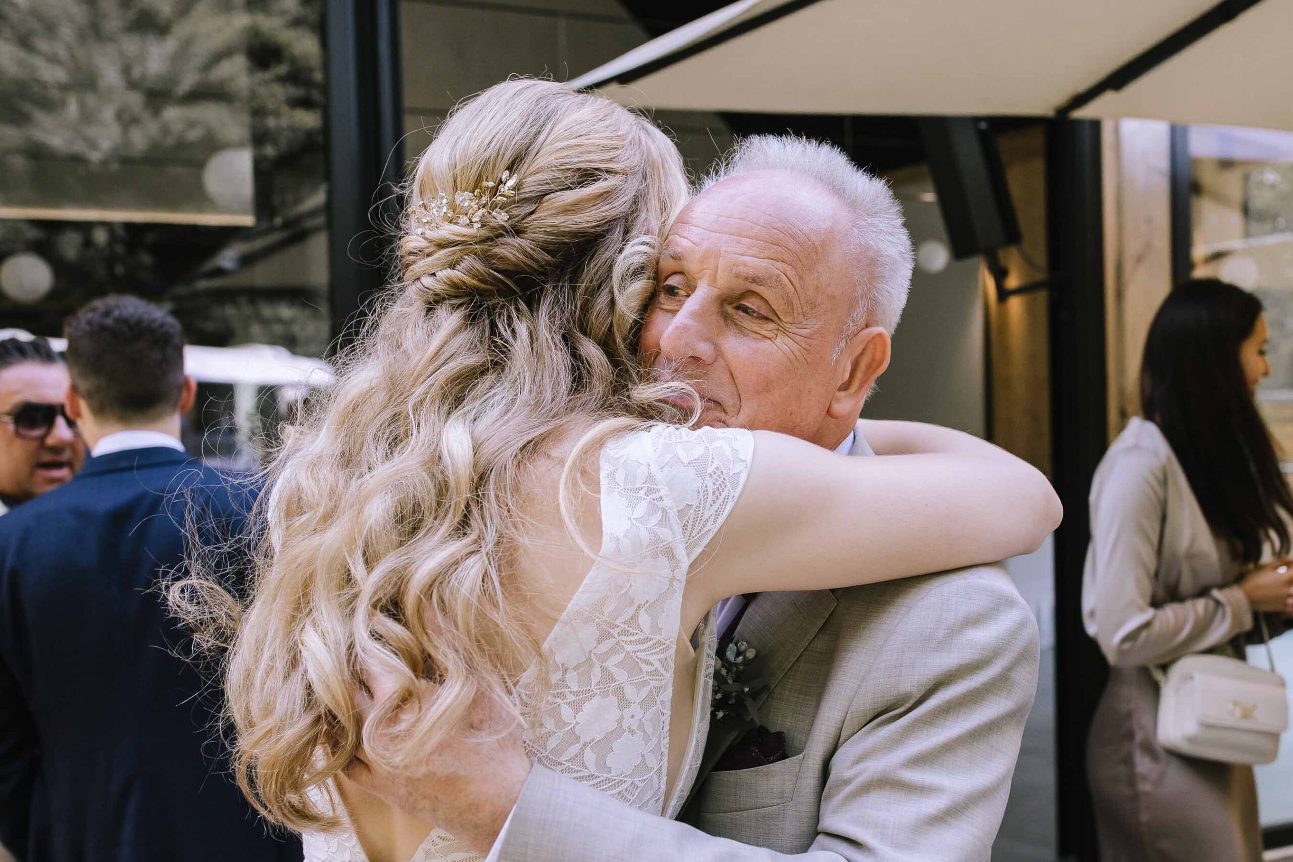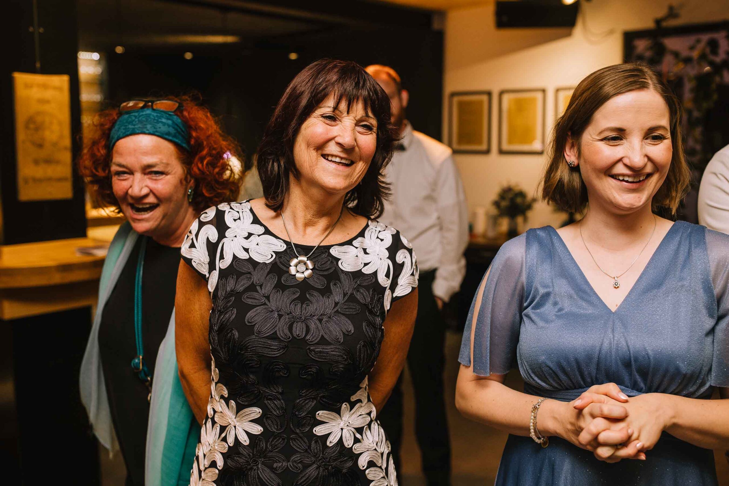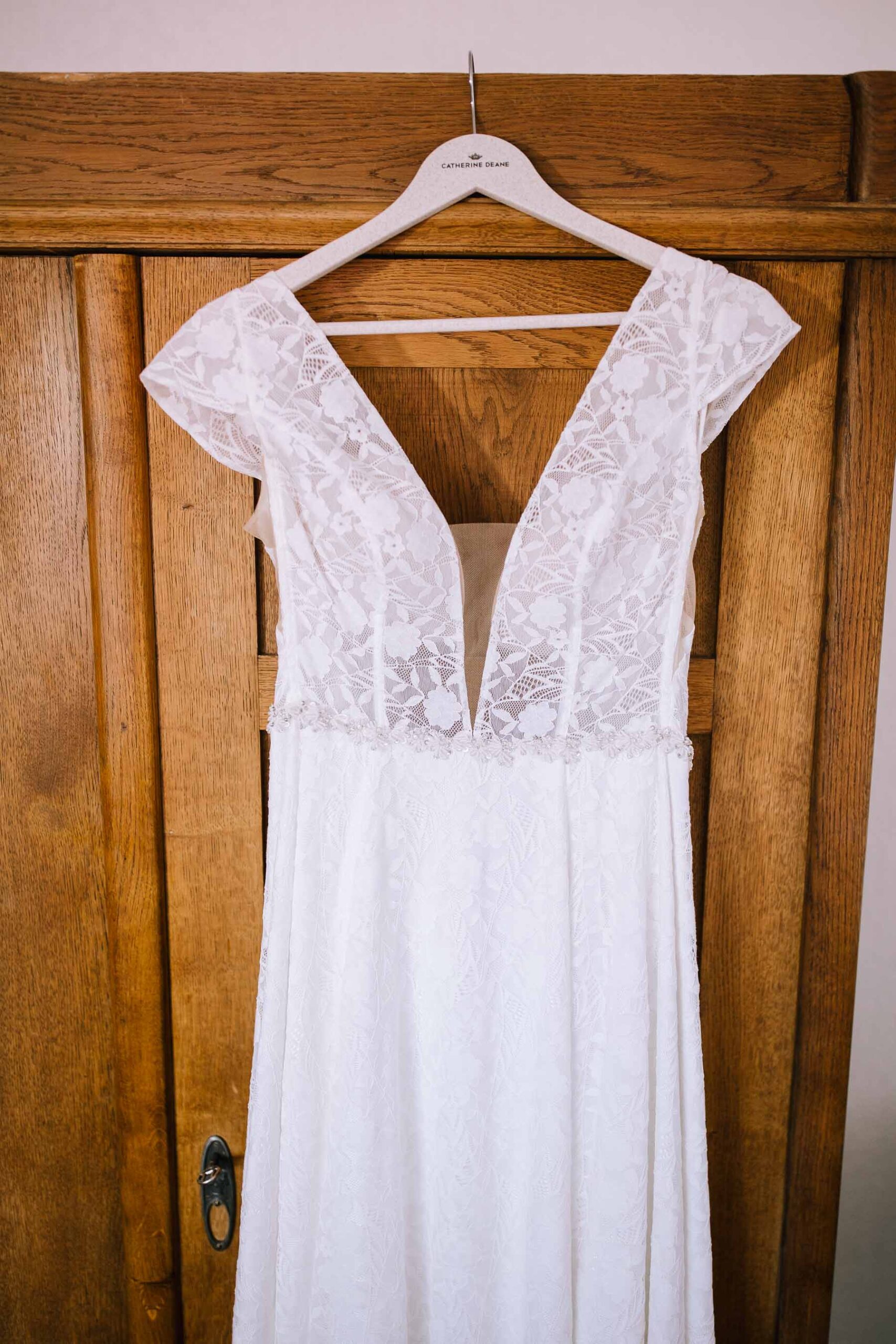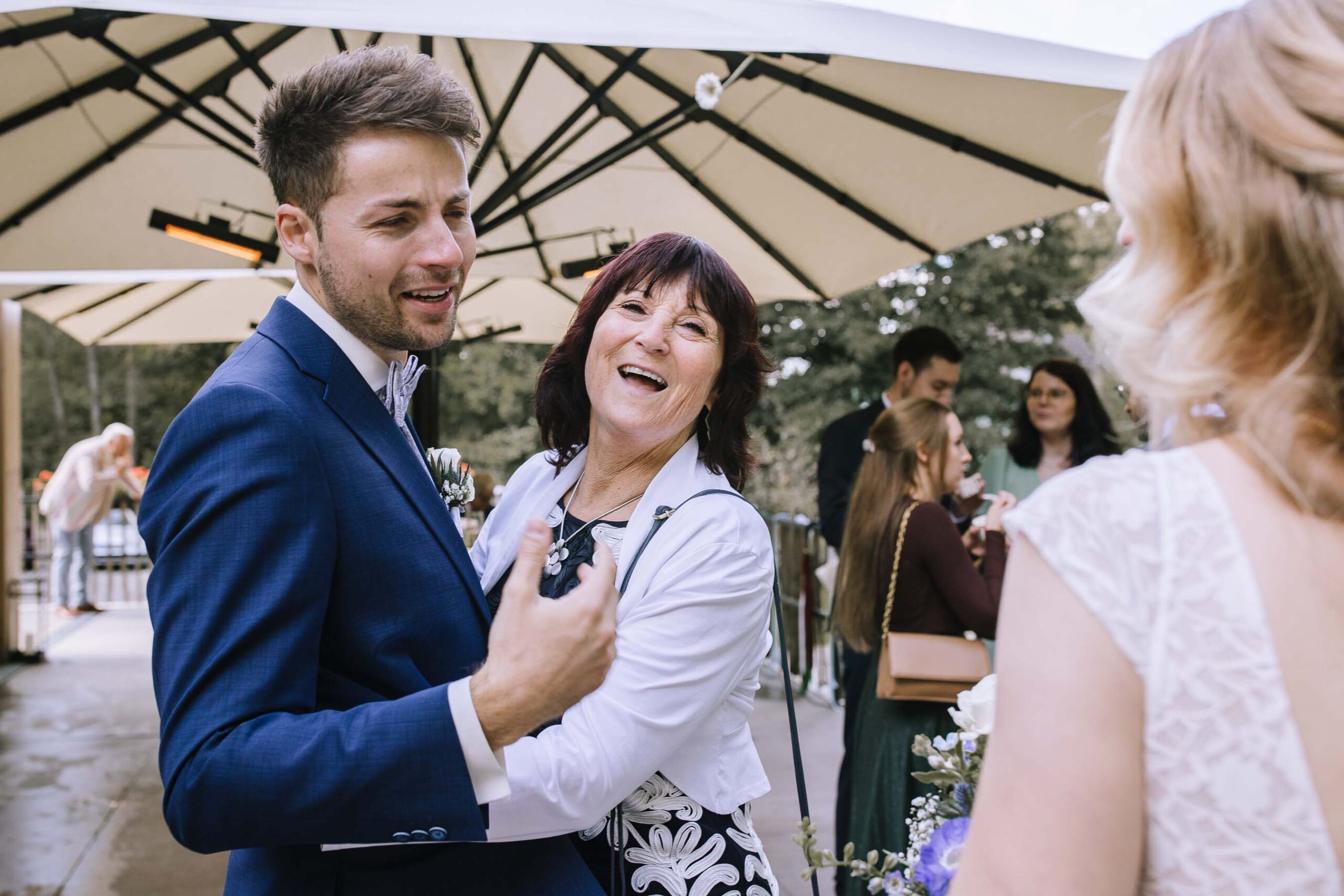 Direkt nach dem First Look ging es weiter zur standesamtlichen Trauung in der gemütlichen Scheune von Gut Ahe. Die Scheune ist ein super schöner Ort für eine Ambientetrauung in NRW, da man auch bei Sauerländer Regenwetter im trockenen sitzt. Sie hat genau das, was eine Trauung braucht: Wärme, Geborgenheit und einen Hauch von rustikalem Charme. Annika und Sven gaben sich dort das Ja-Wort und der Moment war genauso emotional und einzigartig wie der First Look. Nach der Trauung folgte ein Sektempfang, bei dem sich alle Gäste herzlich beglückwünschten und die Stimmung genauso leicht und herzlich war wie der Tag selbst.