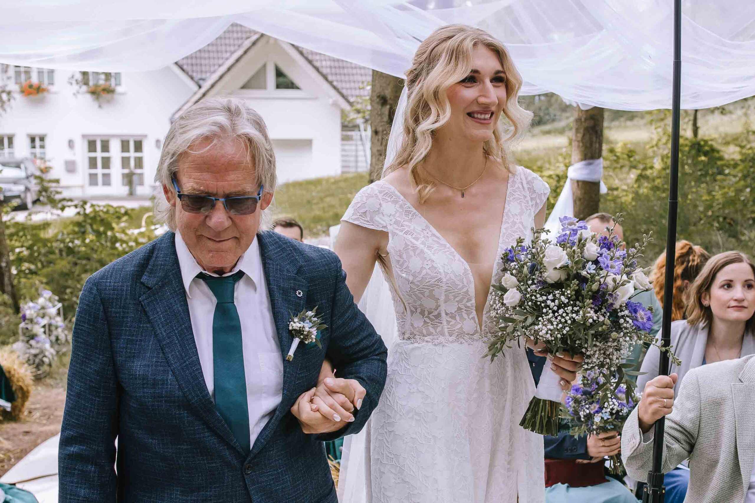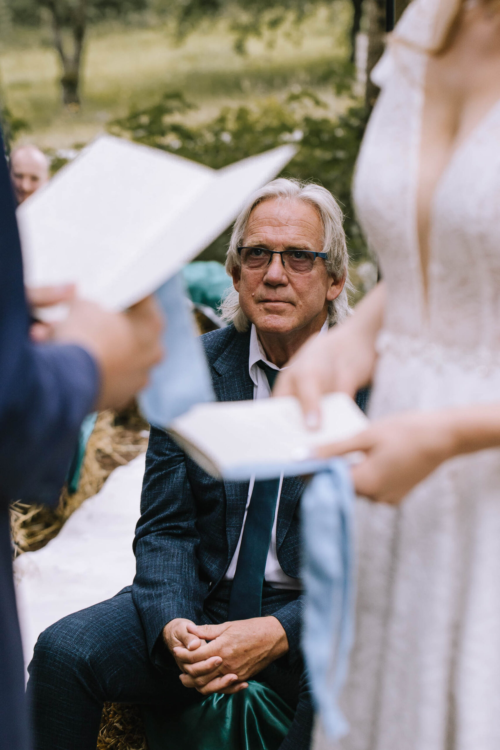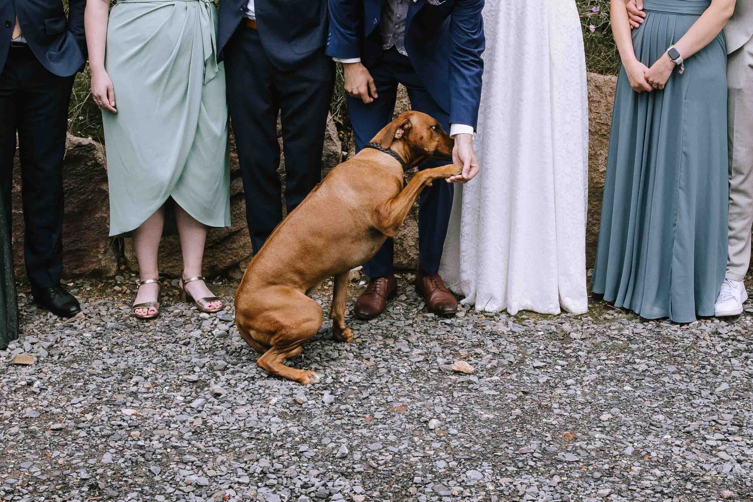 Die Zeremonie selbst, durchgeführt von einem guten Freund des Paares, war sowohl für Annika und Sven als auch für die Gäste sehr emotional. Als dann auch noch der Hund des Paares die Ringe brachte, war das ein weiteres wunderschönes Detail, das die Zeremonie so einzigartig machte.