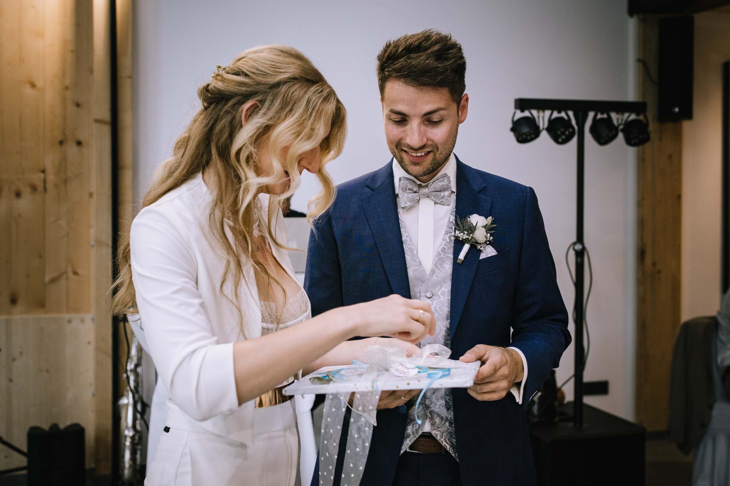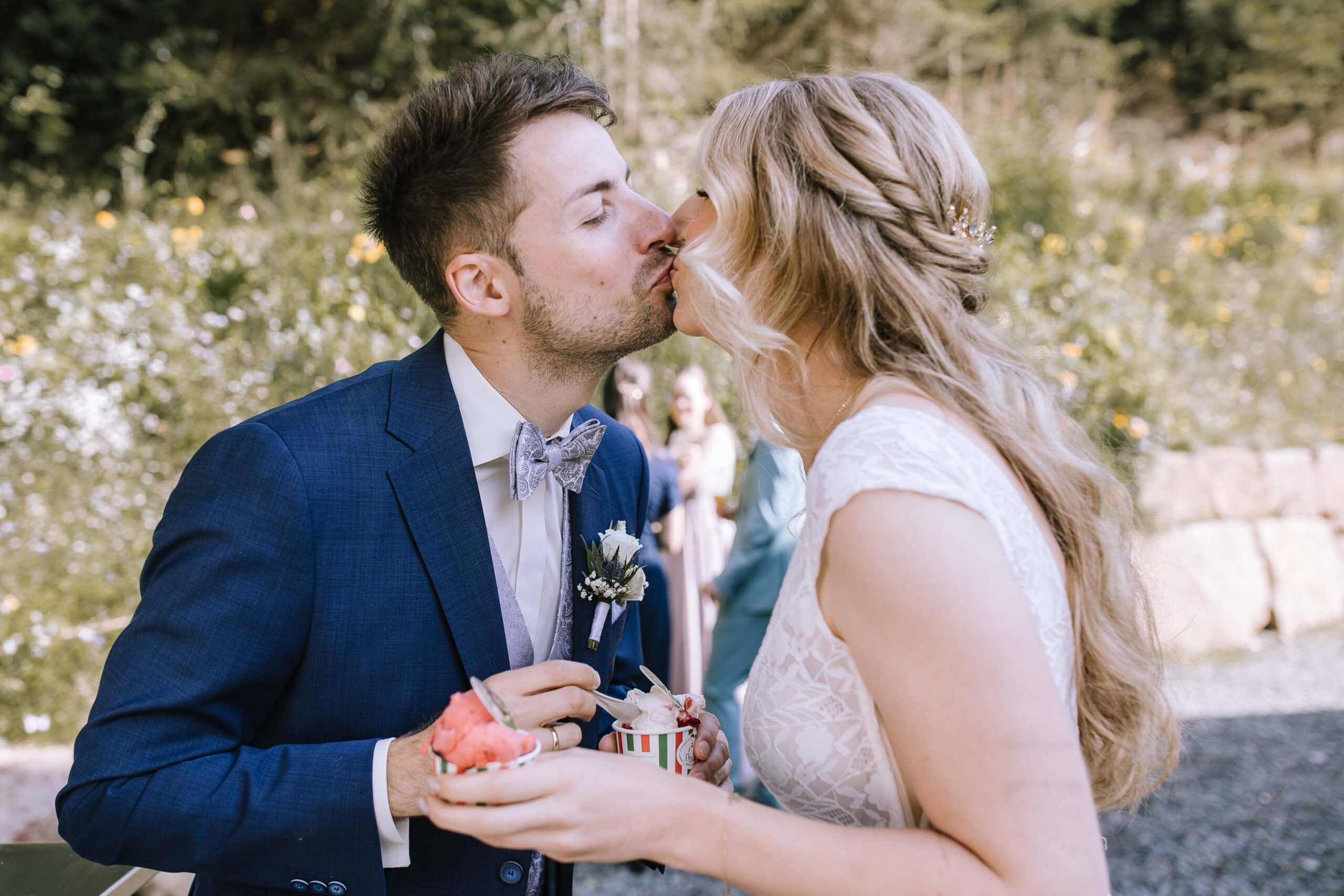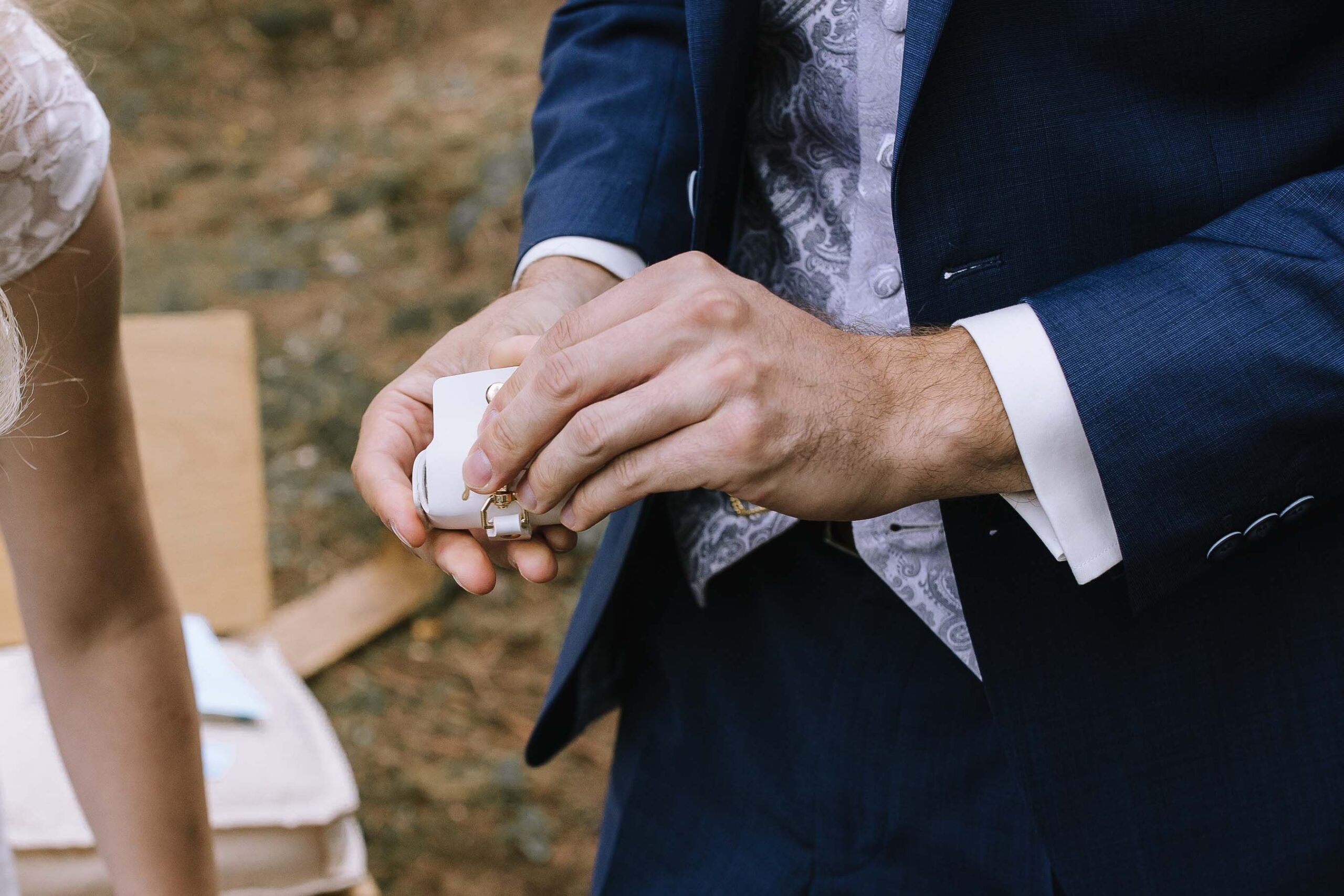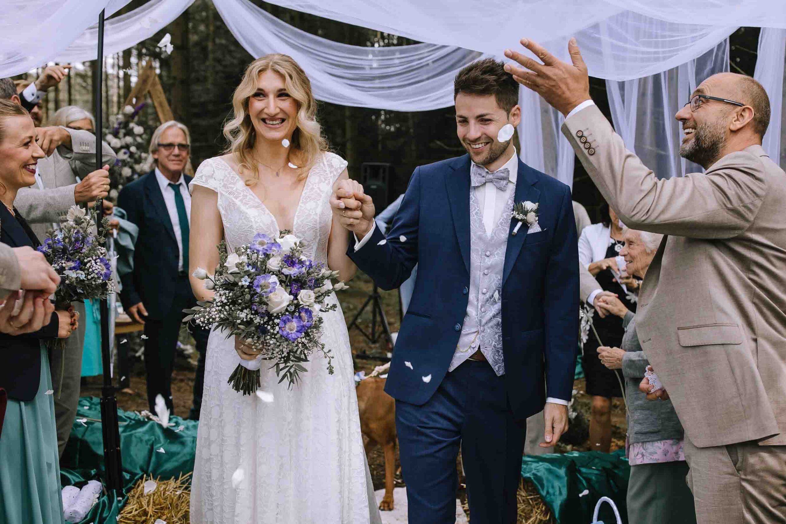 Die Zeremonie selbst, durchgeführt von einem guten Freund des Paares, war sowohl für Annika und Sven als auch für die Gäste sehr emotional. Als dann auch noch der Hund des Paares die Ringe brachte, war das ein weiteres wunderschönes Detail, das die Zeremonie so einzigartig machte.