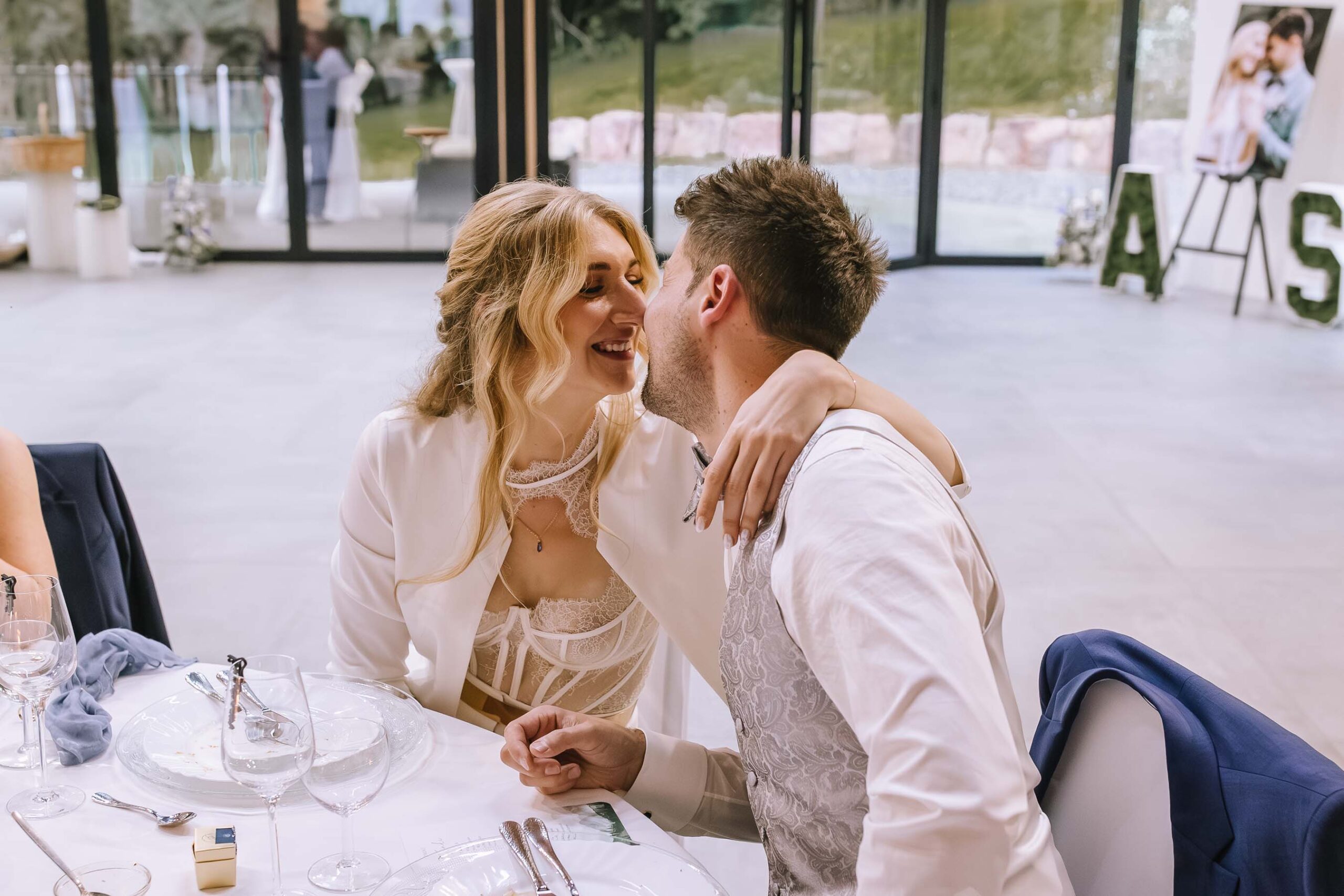 Nachdem die Eheversprechen ausgetauscht wurden, ging es für ein paar wunderschöne Paarfotos zurück zur Scheune, wo wir bereits die standesamtliche Trauung fotografiert hatten. Die Scheune von Gut Ahe war einmal mehr der perfekte Ort für ein paar intime, ungestellte Fotos. Anschließend wartete ein italienischer Eiswagen und ein Sektempfang auf die Gäste – begleitet von Housemusik und einem Live-Saxophonspieler, der die Stimmung noch magischer machte. Es war ein Fest voller persönlicher, durchdachter Details, die den Tag für Annika und Sven so besonders machten. Besonders auffällig war der Sitzplan, den Sven selbst gebaut hatte. Für jedes Gästepaar ging ein Umschlag mit einem persönlichen Brief auf einer Tafel, versehen mit einer Tischnummer und einem Holzanhänger mit dem Namen des Gastes. Diese liebevolle Geste zeigte einmal mehr, wie viel Herzblut in die Planung dieses besonderen Tages gesteckt wurde. Der Hochzeitstanz bildete den perfekten Übergang zum Abend, gefolgt von einem leckeren Abendessen, dem Tortenanschnitt und einer ausgelassenen Feier. Der Tag war ein wahres Meisterwerk an Liebe, Leidenschaft und perfekter Planung – und es war mir eine Freude, Annika und Sven als Hochzeitsfotografin im Sauerland an diesem besonderen Tag zu begleiten. Die Hochzeitslocation Gut Ahe / Friggen bot nicht nur eine atemberaubende Kulisse für die Zeremonien, sondern auch einen unvergleichlichen Charme, der diesen Tag zu etwas ganz Besonderem machte.
