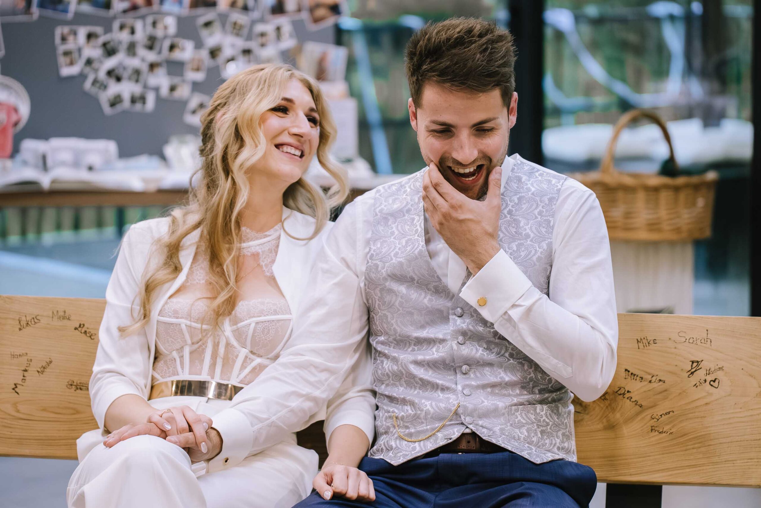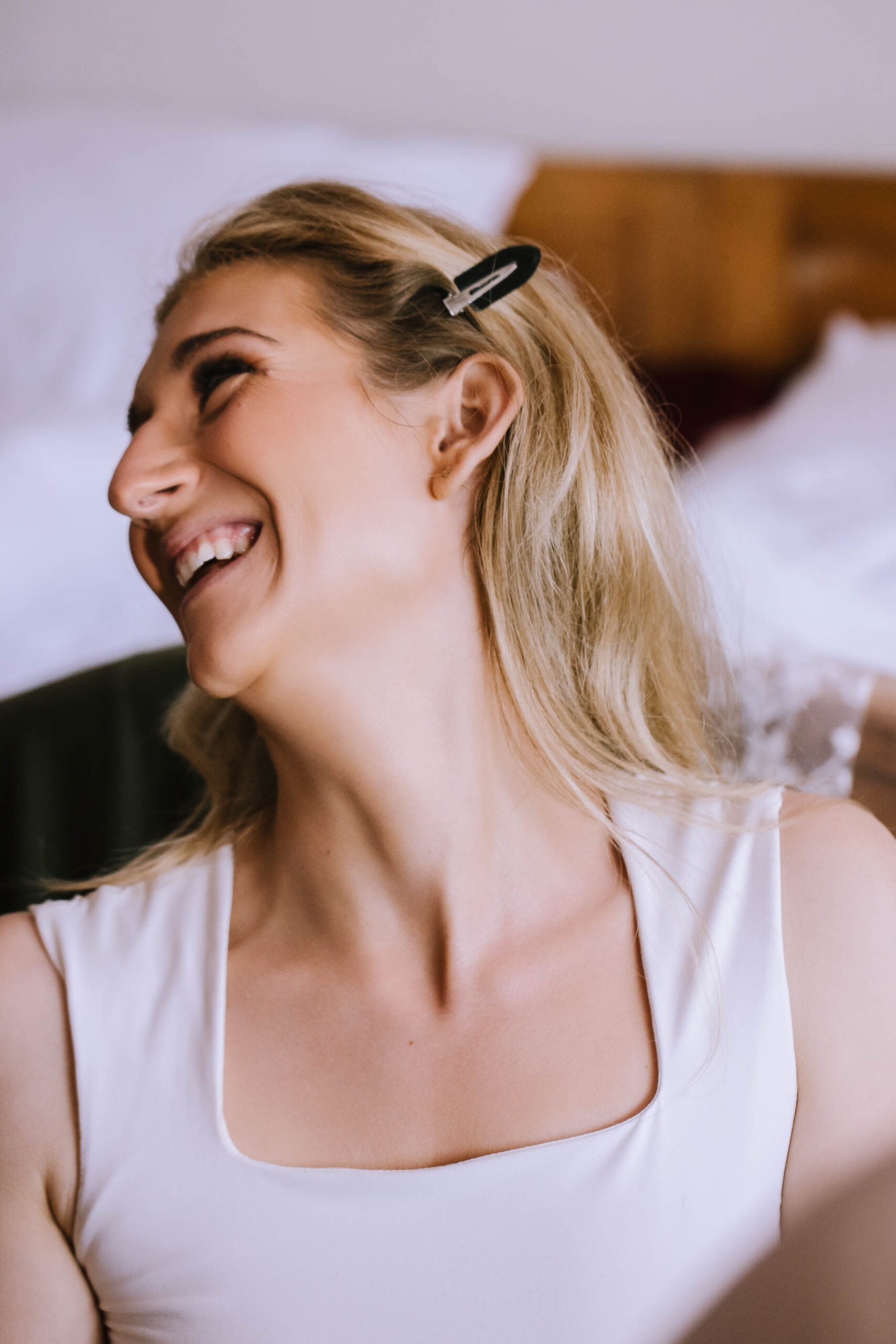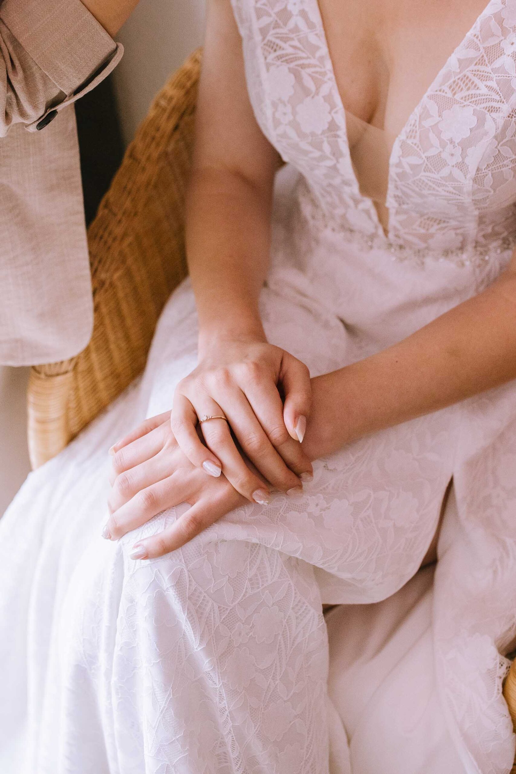 Der Tag begann mit einem ganz besonderen Moment – dem First Look im Wald. Annika und Sven hatten sich ganz bewusst für diese eine erste Begegnung in so einem intimen Moment fernab von allen Gästen entschieden. Es war der perfekte Start in den Tag. Die Aufregung in ihren Augen, das erste zarte Lächeln des anderen – solche Momente kann man mit Worten kaum beschreiben, man muss sie einfach miterleben. Es ist immer wieder ein Geschenk, als Hochzeitsfotografin dabei zu sein und die puren und echten Emotionen einfangen zu dürfen.