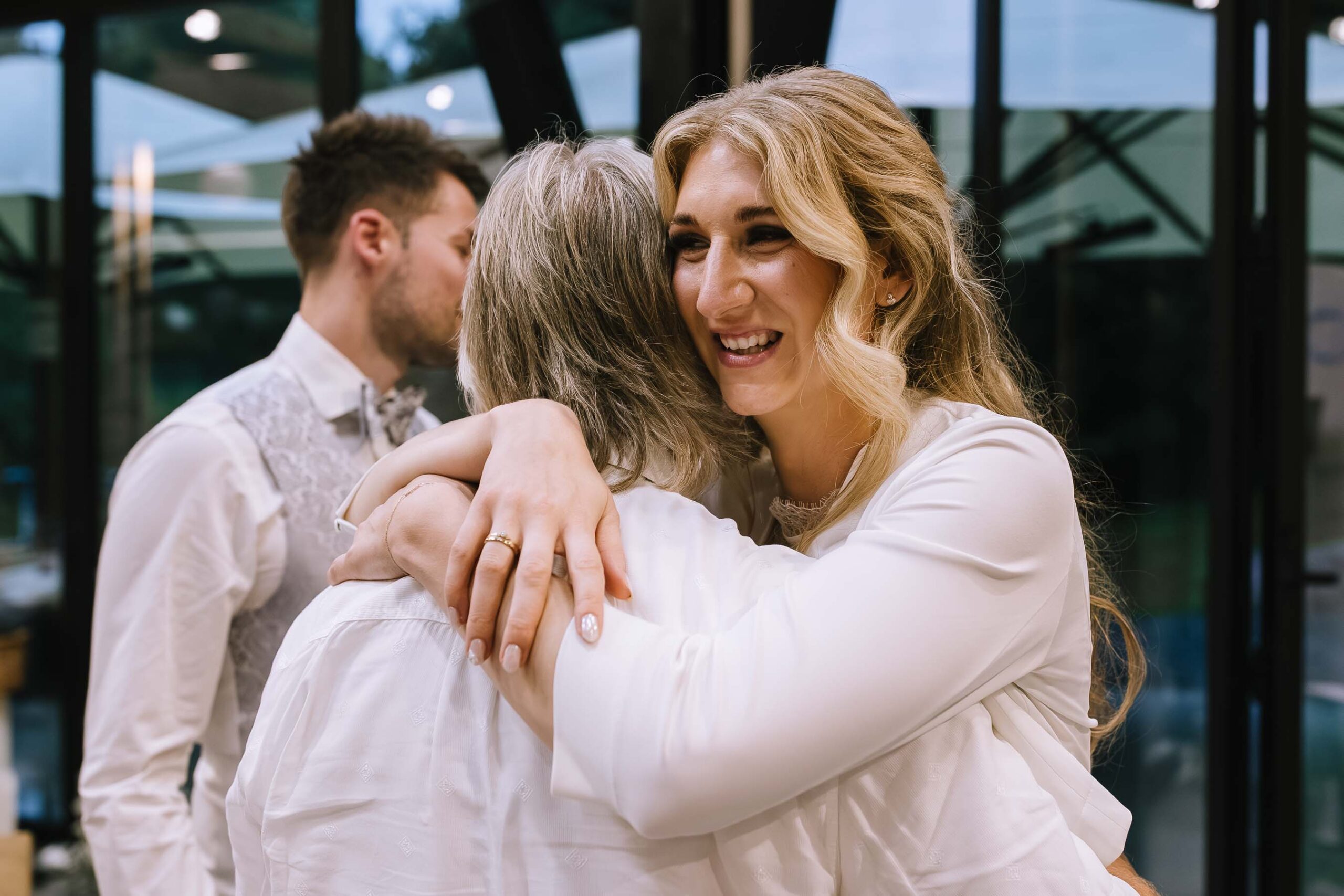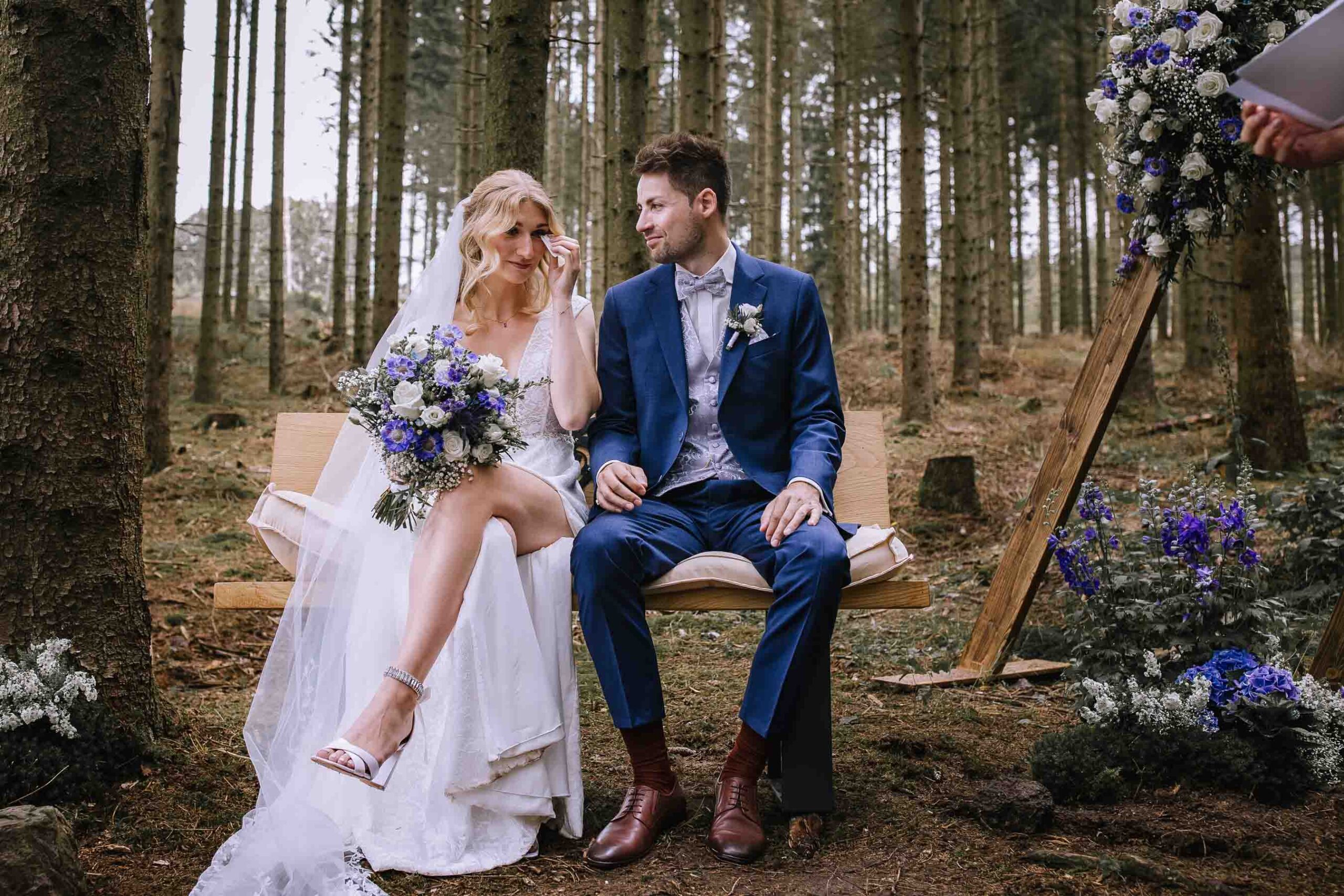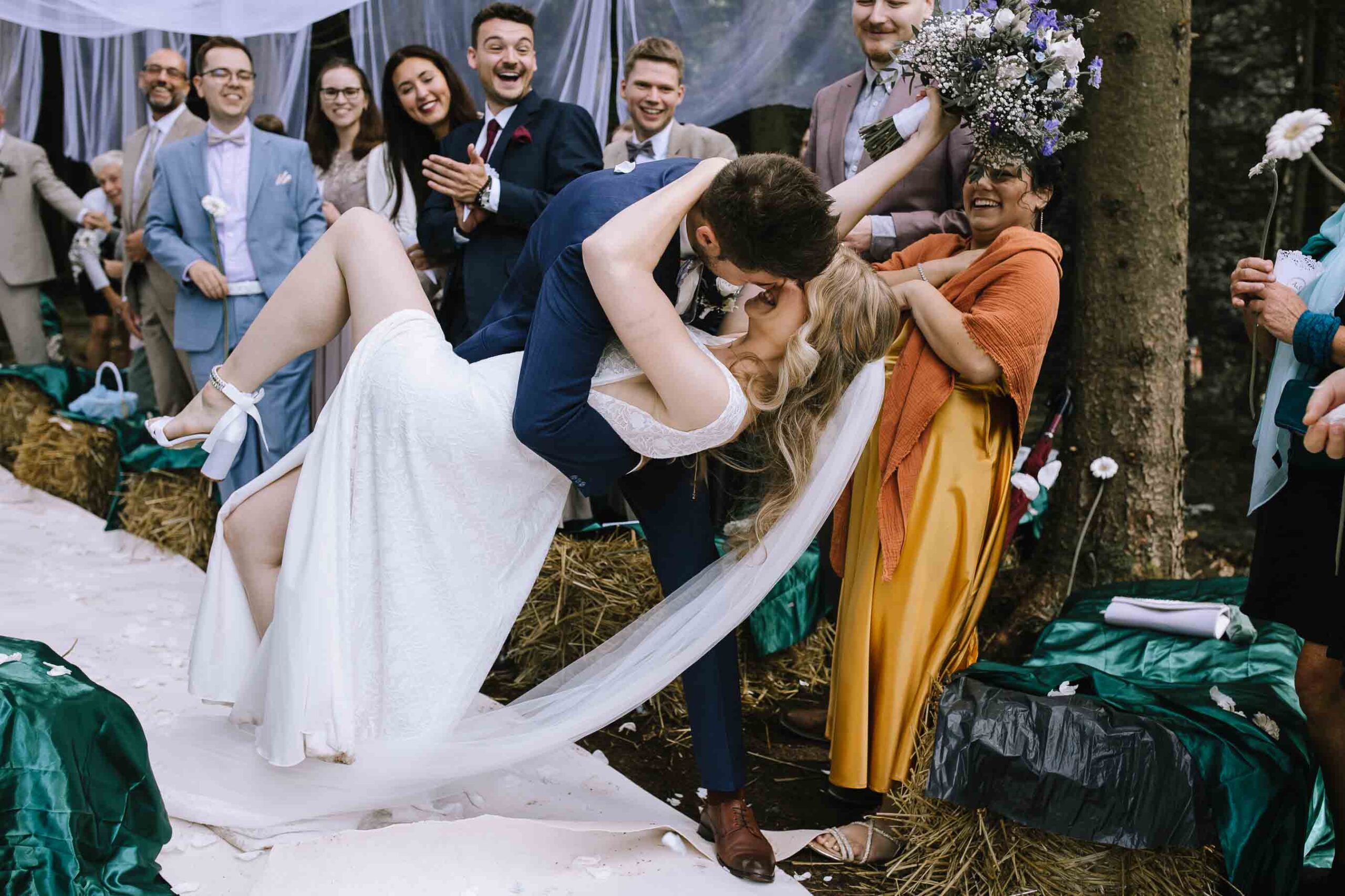 Ein bisschen Zeit für Umarmungen, Lachen und die ersten gemeinsamen Momente als frisch vermähltes Paar. Und auch als Hochzeitsfotografin ist es immer wieder ein Highlight, all die liebevollen Details einzufangen – die Blicke, die Berührungen, die Details. Ein weiterer schöner Moment war das Liebesschloss-Ritual, das Annika und Sven an zwei Metallherzen auf dem Gut Ahe Gelände vollzogen. Ein symbolisches Zeichen ihrer „unzerbrechlichen“ Liebe – und ein toller Fotomoment, den ich natürlich für die Beiden festhalten musste. Solche persönlichen Rituale machen jede Hochzeit einzigartig und auch in dieser besonderen Hochzeitslocation in NRW kommen diese Details perfekt zur Geltung. Der Tag neigte sich dem Ende zu, aber ich konnte kaum aufhören, an die nahende Freie Trauung zu denken. Denn Annika und Sven planten eine freie Trauung im Wald – und das war der Moment, auf den ich mich besonders freute. Die Schönheit des Waldes, das intime Setting und natürlich die beiden als Paar. Schon als die Beiden mir davon erzählten, wusste ich, dass das eine weitere unvergessliche Erinnerung für die Beiden werden würde. Gut Ahe und die Hochzeitslocation Friggen bieten nicht nur eine wunderschönen ORt für eine Hochzeitsfeier im Sauerland, sondern auch einen unglaublichen Service, der diesen Tag unvergesslich gemacht hat – man hat einfach alles an einem Ort. Für mich als Hochzeitsfotografin ist es immer wieder eine Freude, Paare wie Annika und Sven an solch wunderschönen Orten zu begleiten und die Geschichte ihrer Liebe in Bildern festzuhalten.