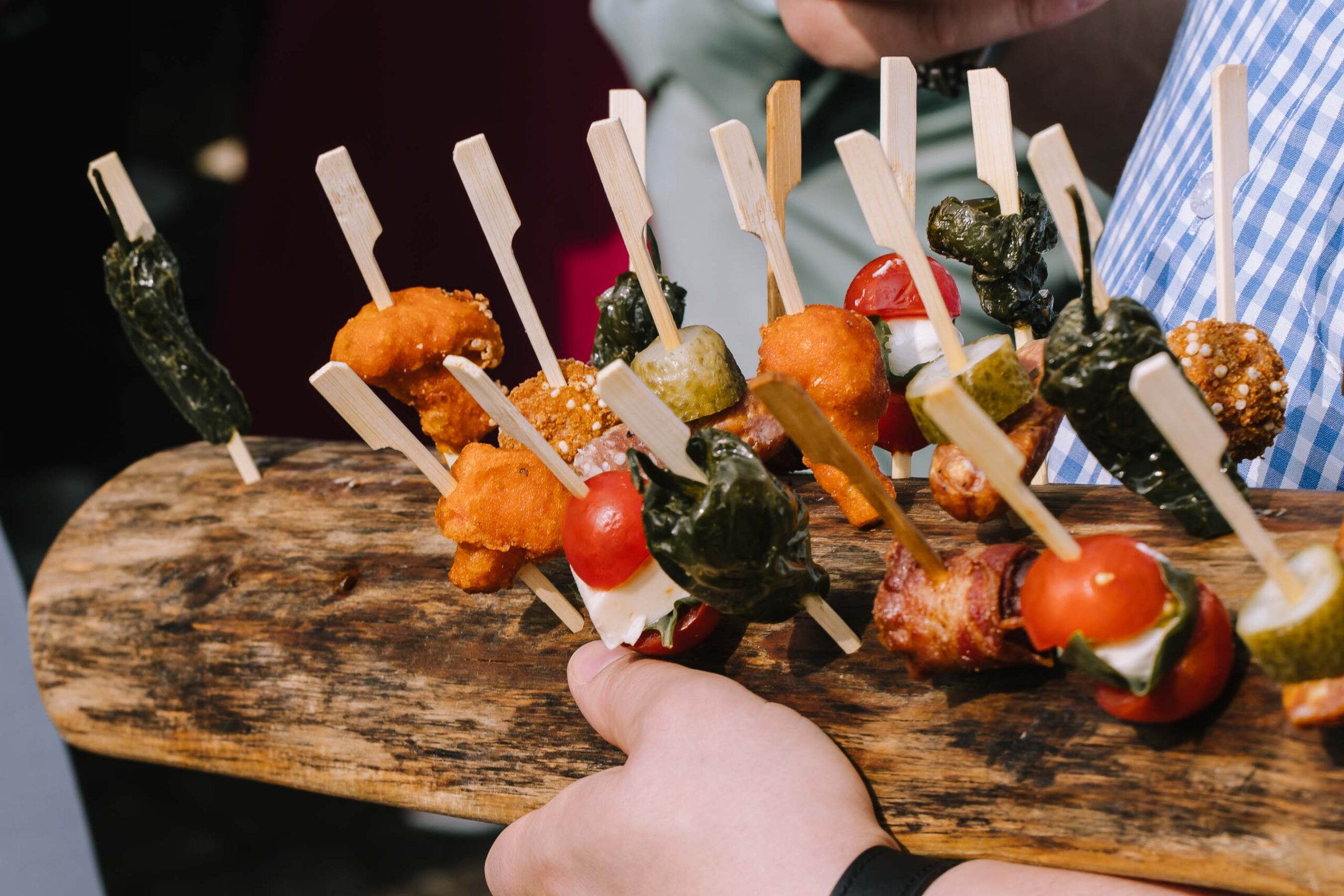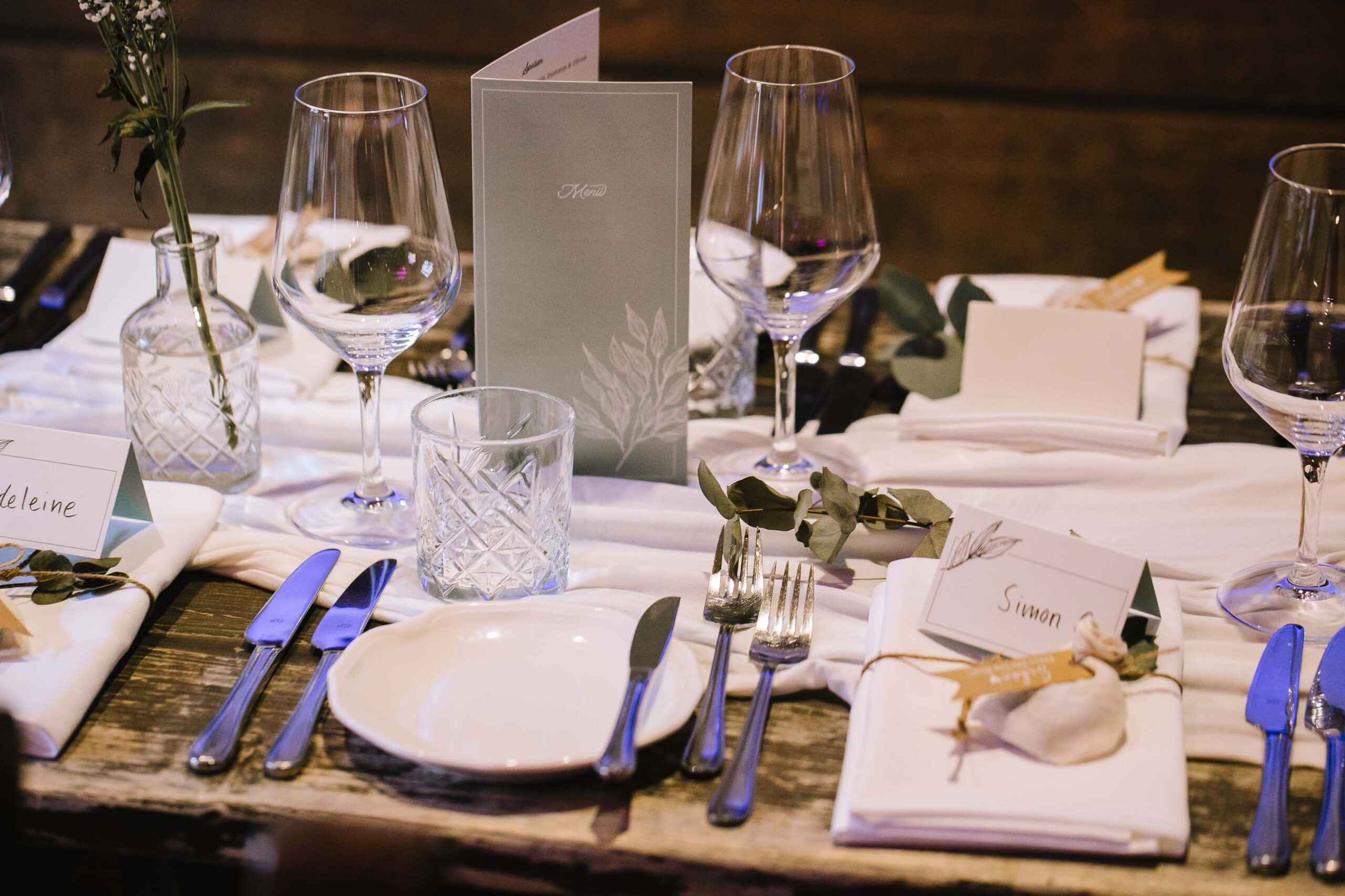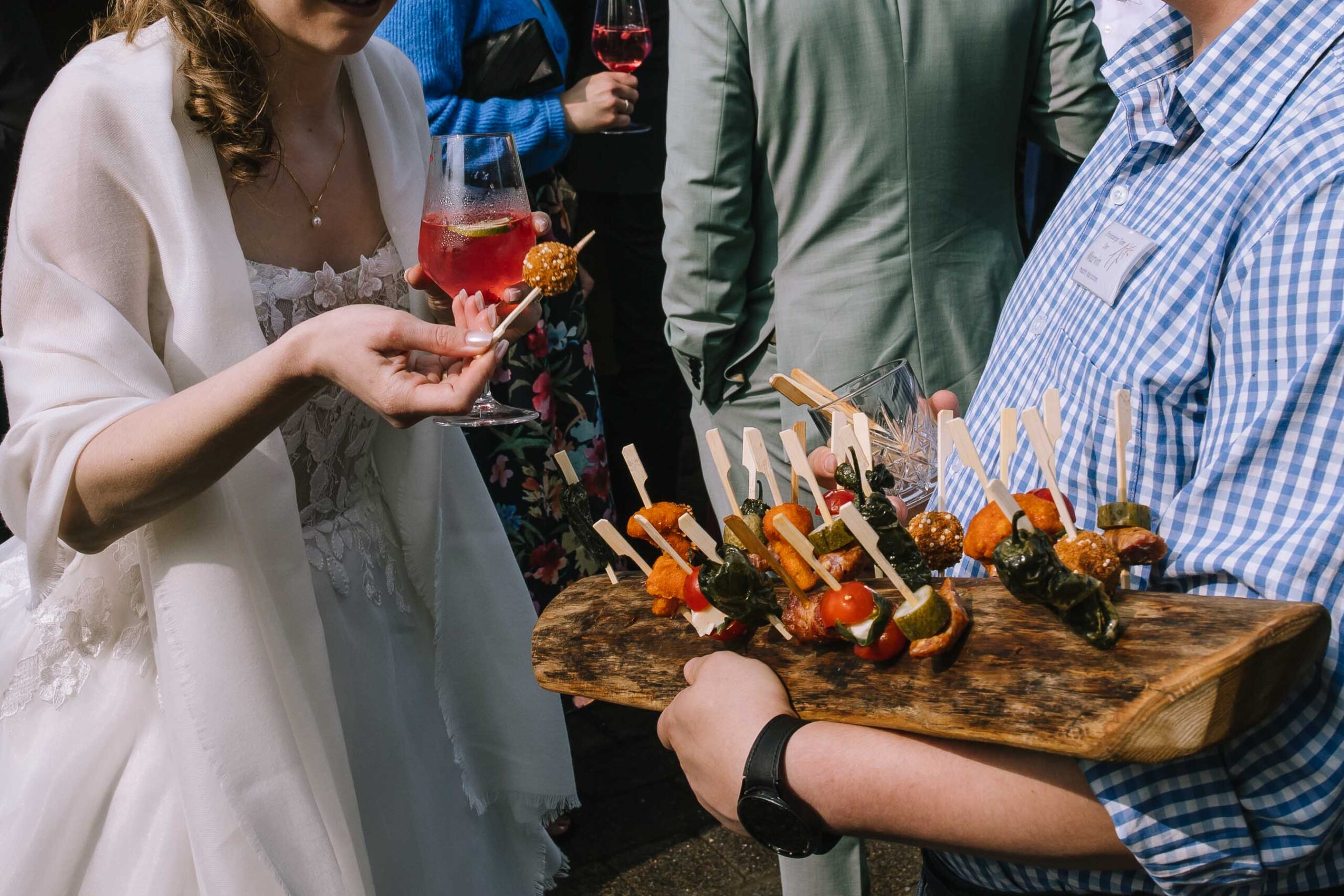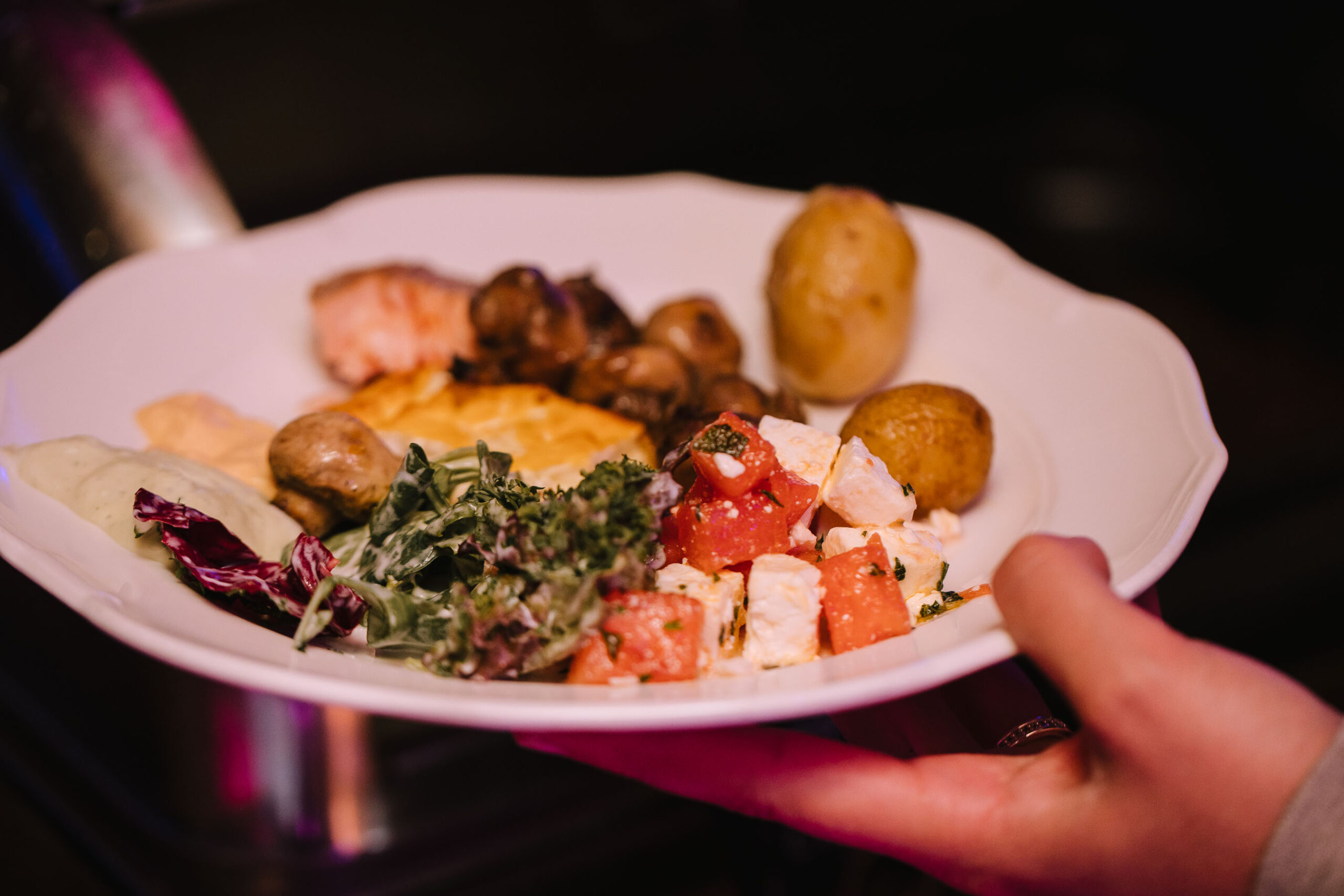Natürlich wollte ich den Tag auch mit einem Brautpaarshooting auf der großen Wiese neben der Steinbergs Alm ausklingen lassen. Der Ausblick war einfach der Wahnsinn! Leider ließ der Regen nicht lange auf sich warten, aber anstatt uns davon ärgern zu lassen, machten wir das Beste draus! Wir nahmen die Schirme, die wir immer dabei hatten, und bauten sie einfach in die Bilder ein. Das brachte eine ganz besondere Stimmung in die Fotos und ich finde, dass der Regen die Bilder mit einer gewissen Romantik und Authentizität bereichert hat. Es war ein tolles Shooting. Nach dem Brautpaarshooting ging es zurück in die Location, wo das Team von Steinbergs Alm ein köstliches Buffet mit einer großen Auswahl an Speisen – auch veganen Speisen – für die Gäste zubereitet hatte. Die Hochzeit von Lara und Chris war ein Fest der Liebe, der Musik und der guten Laune. Es war ein wunderschöner Tag, den ich als Hochzeitsfotografin in vollen Zügen genossen habe. Ich freue mich jetzt schon auf die nächste Hochzeit auf Steinbergs Alm. Vielleicht dann mit etwas mehr Sonne auf der Wiese und einer freien Trauung – wer weiß. 🙂