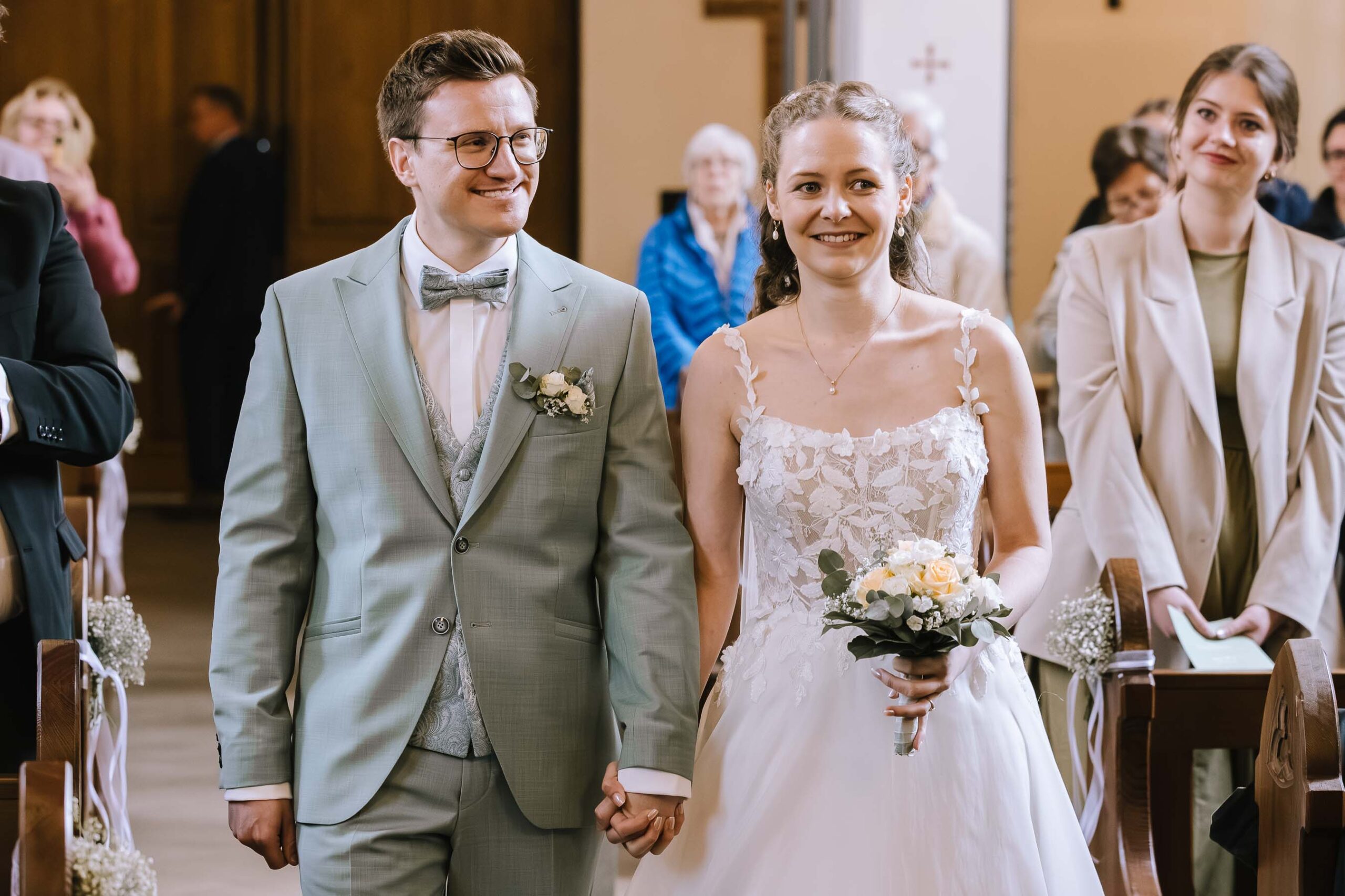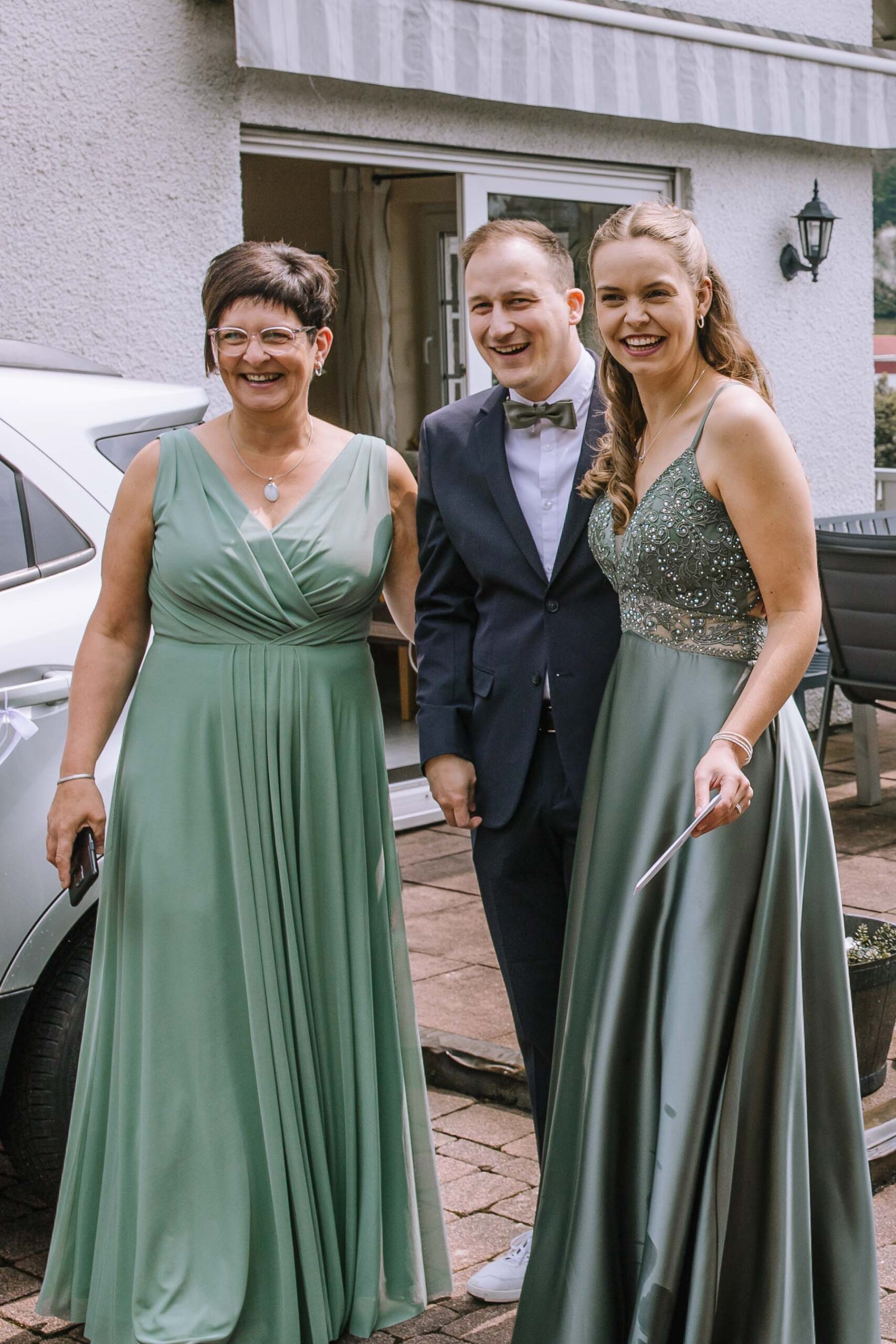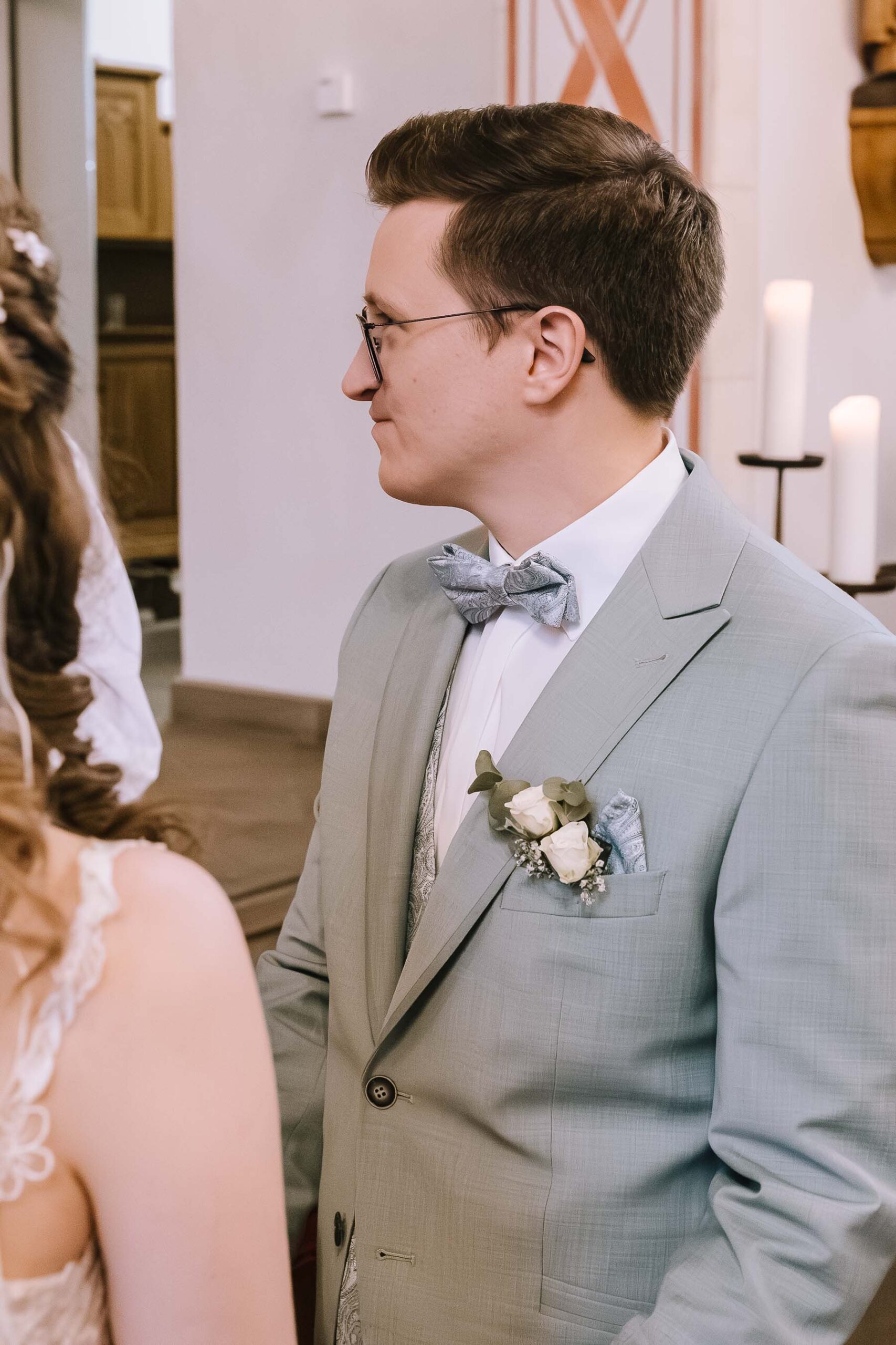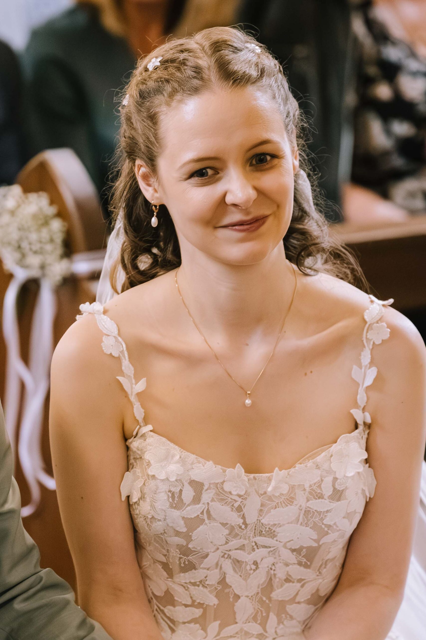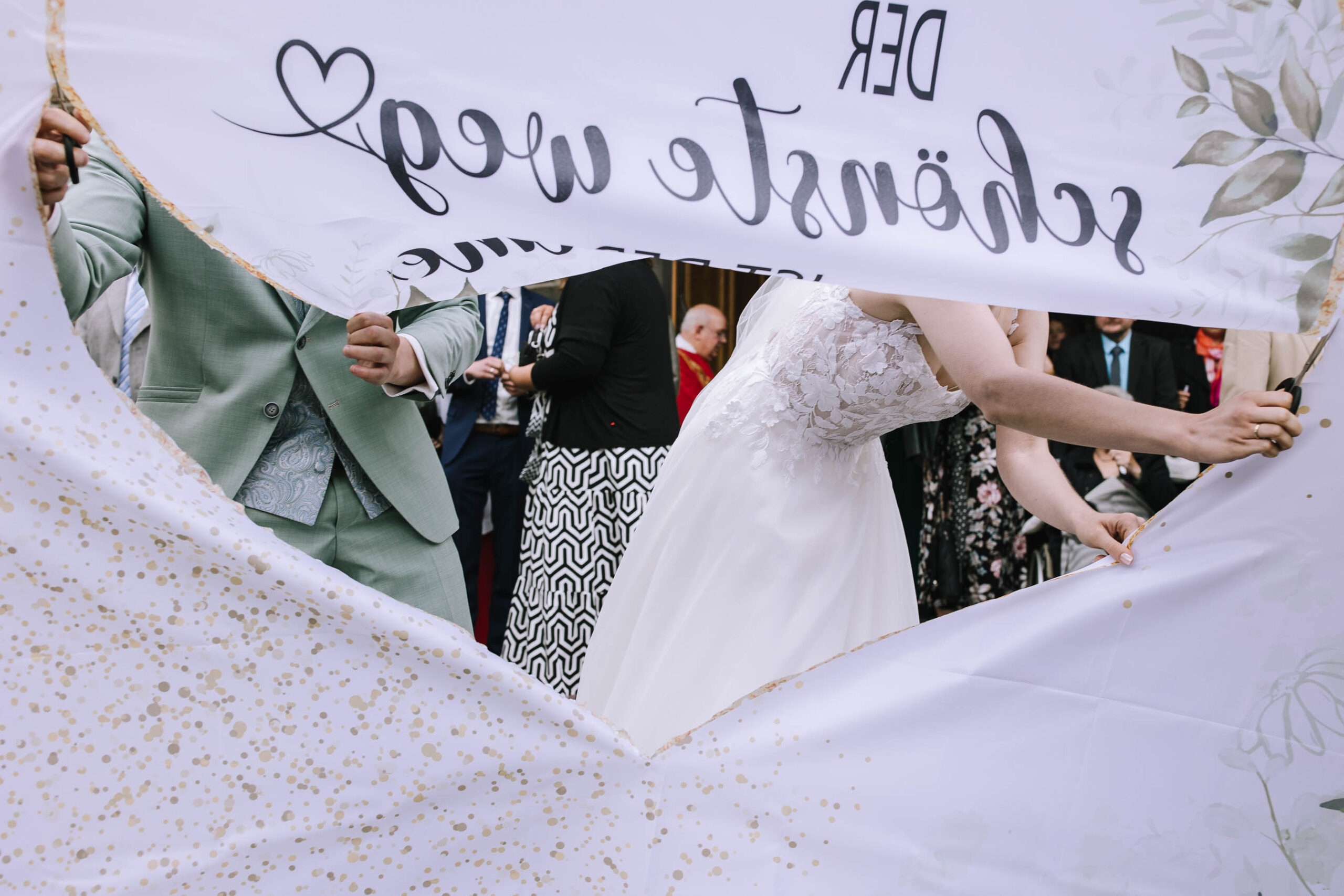 Es gibt Hochzeiten, bei denen die Chemie zwischen Brautpaar und Fotografin sofort stimmt – und die Hochzeit von Lara und Chris war definitiv eine davon. Bei unserem ersten Gespräch, das bei lecker Pizza & Pasta stattfand, hatte ich sofort das Gefühl, dass die beiden die perfekten Kunden für mich sind. Besonders Chris‘ flacher Humor sorgte bereits beim Vorgespräch für zahlreiche Lacher. Lara und Chris entschieden sich dafür, ihren First Look ganz intim im Garten von Laras Eltern stattfinden zu lassen. Der Plan war, sich im Garten zu treffen und diesen besonderen Moment zu genießen, doch der Himmel zog schnell zu, und dunkle Wolken deuteten bereits auf einen Regenschauer hin. Natürlich ließen wir uns davon nicht die Stimmung verderben. Die Trauzeugen und Freunde hatten bereits Schirme parat, und so war der First Look trotzdem wunderschön. Der Regen setzte genau nach diesem Moment ein – mal wieder das perfekte Timing. Die Trauung fand in der Pfarrkirche St. Antonius in Hofolpe statt. Trotz des Wetters war der Moment einfach magisch, vor allem als Lara und Chris nach der Trauung von einem Musikverein, in dem Lara selbst spielte, mit lauter Musik empfangen wurden. Das war ein absolutes Highlight und als Lara sich sogar noch einmal ein Instrument schnappte, um mitzuspielen, war das für alle ein unvergesslicher Moment. Nach der Kirche ging es weiter zur Hochzeitslocation Steinbergs Alm in Wildewiese. Bei einem Sektempfang mit Canapés genossen alle die festliche Stimmung. Einige Gruppenfotos und Portraits durften natürlich nicht fehlen. Das Wetter zeigte sich immer noch unentschlossen, doch bei all den tollen Momenten war der Regen fast nebensächlich. Die Location war einmal mehr ein Traum – mit einer grandiosen Aussicht auf das „Land der 1000 Berge“ und einer Atmosphäre, die nicht zu übertreffen war.