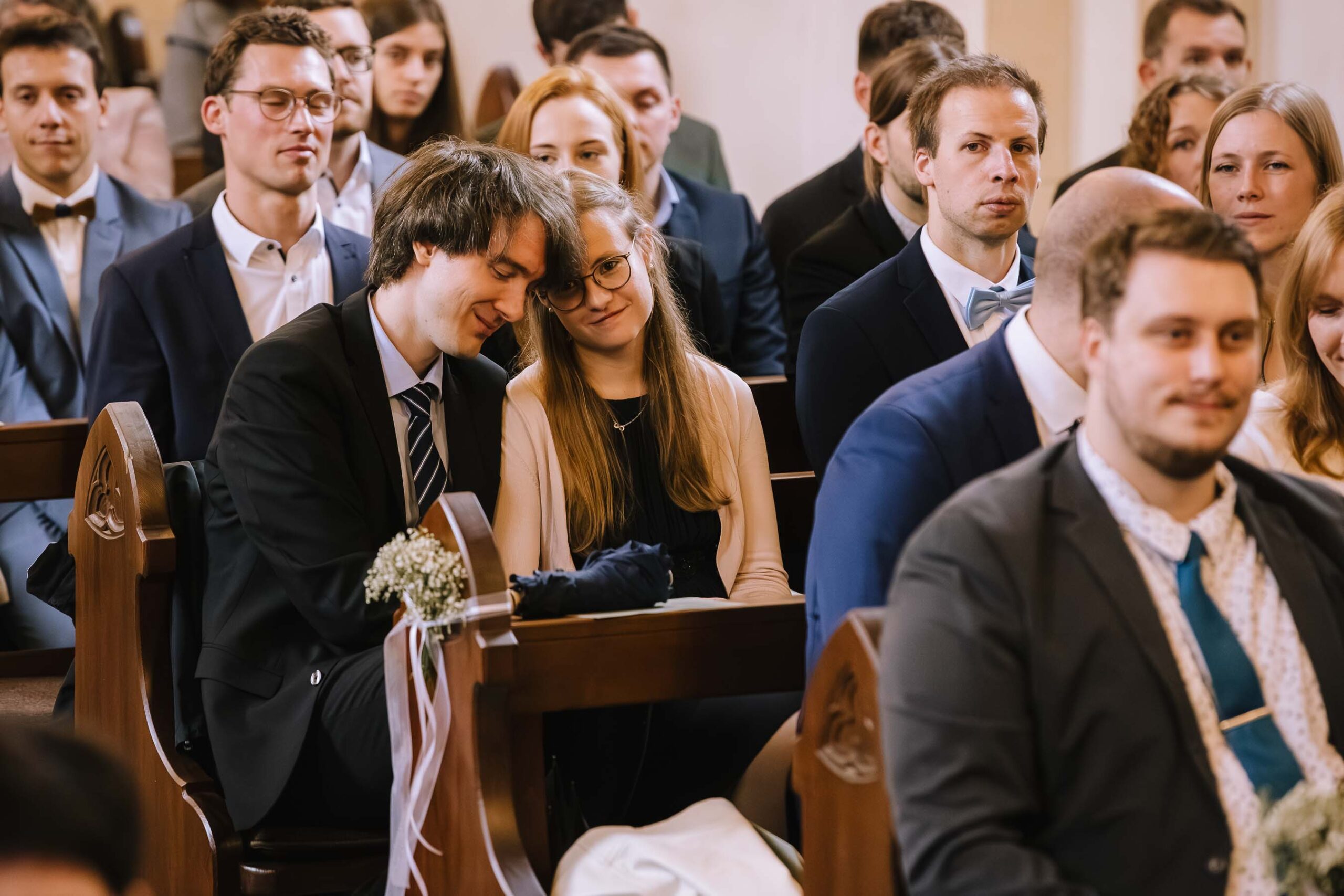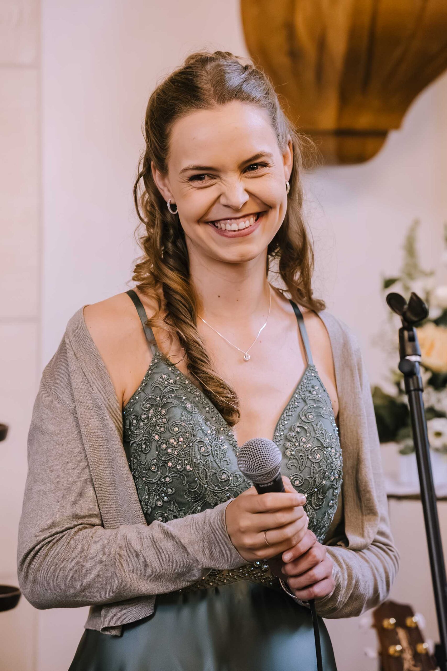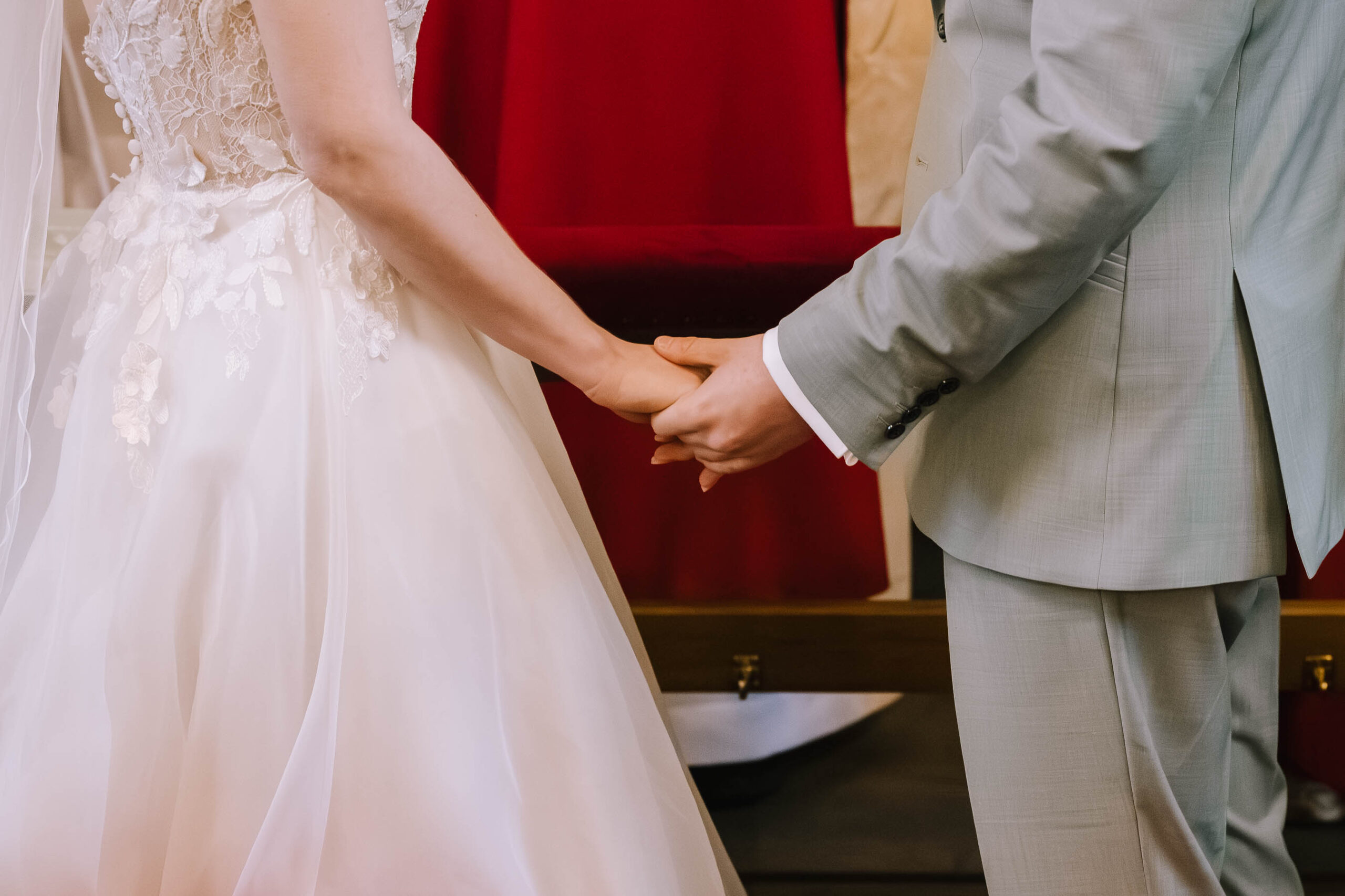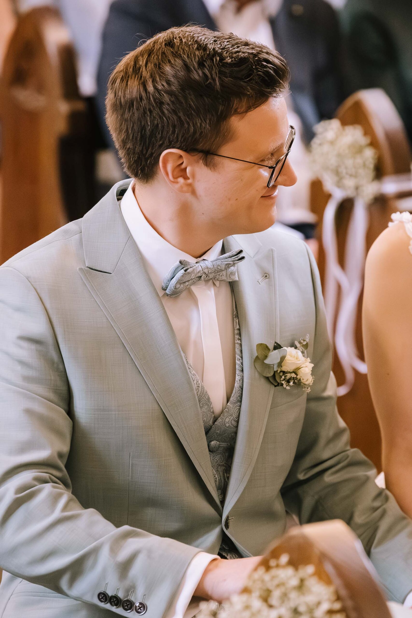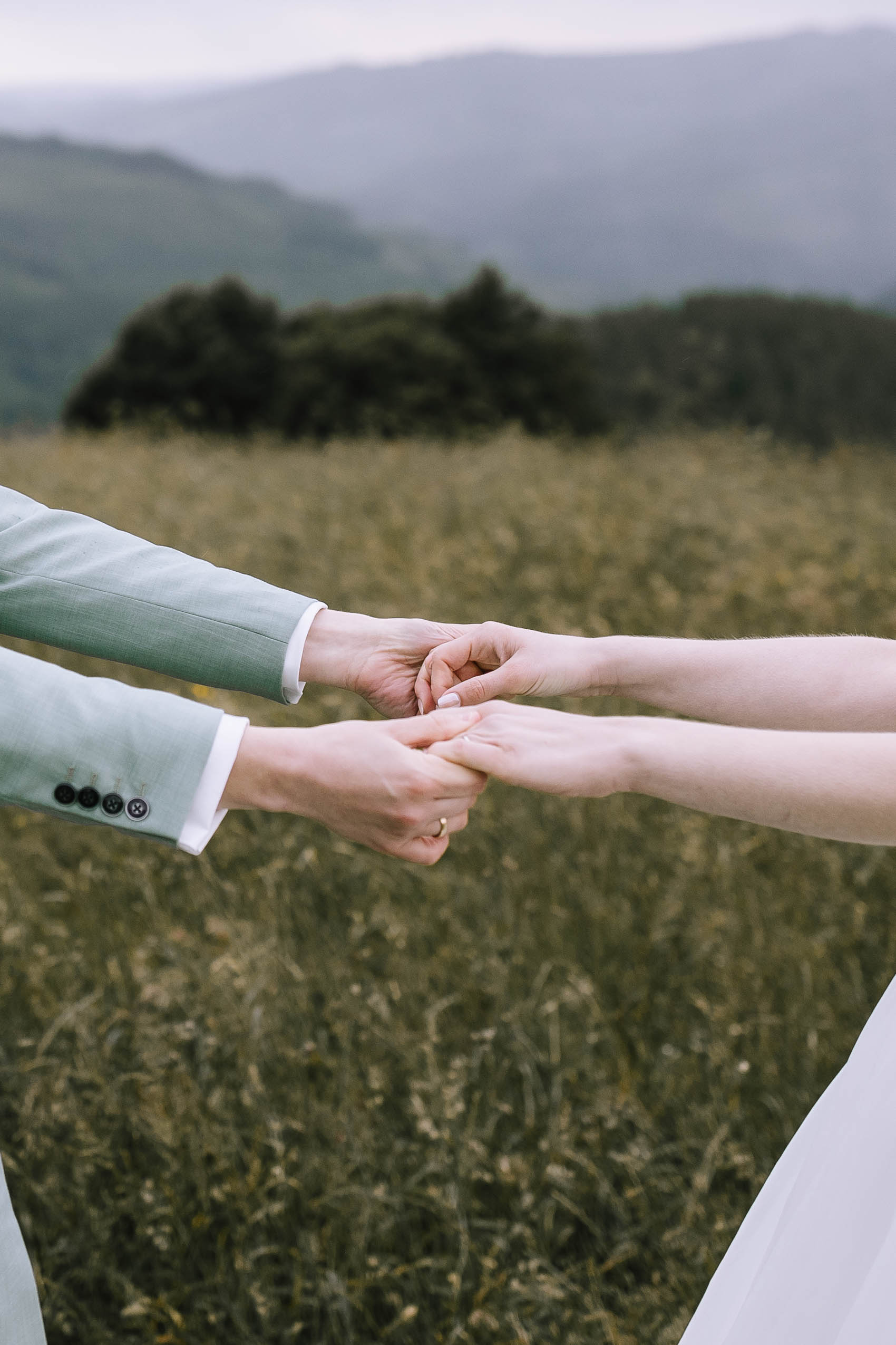 Es gibt Hochzeiten, bei denen die Chemie zwischen Brautpaar und Fotografin sofort stimmt – und die Hochzeit von Lara und Chris war definitiv eine davon. Bei unserem ersten Gespräch, das bei lecker Pizza & Pasta stattfand, hatte ich sofort das Gefühl, dass die beiden die perfekten Kunden für mich sind. Besonders Chris‘ flacher Humor sorgte bereits beim Vorgespräch für zahlreiche Lacher. Lara und Chris entschieden sich dafür, ihren First Look ganz intim im Garten von Laras Eltern stattfinden zu lassen. Der Plan war, sich im Garten zu treffen und diesen besonderen Moment zu genießen, doch der Himmel zog schnell zu, und dunkle Wolken deuteten bereits auf einen Regenschauer hin. Natürlich ließen wir uns davon nicht die Stimmung verderben. Die Trauzeugen und Freunde hatten bereits Schirme parat, und so war der First Look trotzdem wunderschön. Der Regen setzte genau nach diesem Moment ein – mal wieder das perfekte Timing. Die Trauung fand in der Pfarrkirche St. Antonius in Hofolpe statt. Trotz des Wetters war der Moment einfach magisch, vor allem als Lara und Chris nach der Trauung von einem Musikverein, in dem Lara selbst spielte, mit lauter Musik empfangen wurden. Das war ein absolutes Highlight und als Lara sich sogar noch einmal ein Instrument schnappte, um mitzuspielen, war das für alle ein unvergesslicher Moment. Nach der Kirche ging es weiter zur Hochzeitslocation Steinbergs Alm in Wildewiese. Bei einem Sektempfang mit Canapés genossen alle die festliche Stimmung. Einige Gruppenfotos und Portraits durften natürlich nicht fehlen. Das Wetter zeigte sich immer noch unentschlossen, doch bei all den tollen Momenten war der Regen fast nebensächlich. Die Location war einmal mehr ein Traum – mit einer grandiosen Aussicht auf das „Land der 1000 Berge“ und einer Atmosphäre, die nicht zu übertreffen war.