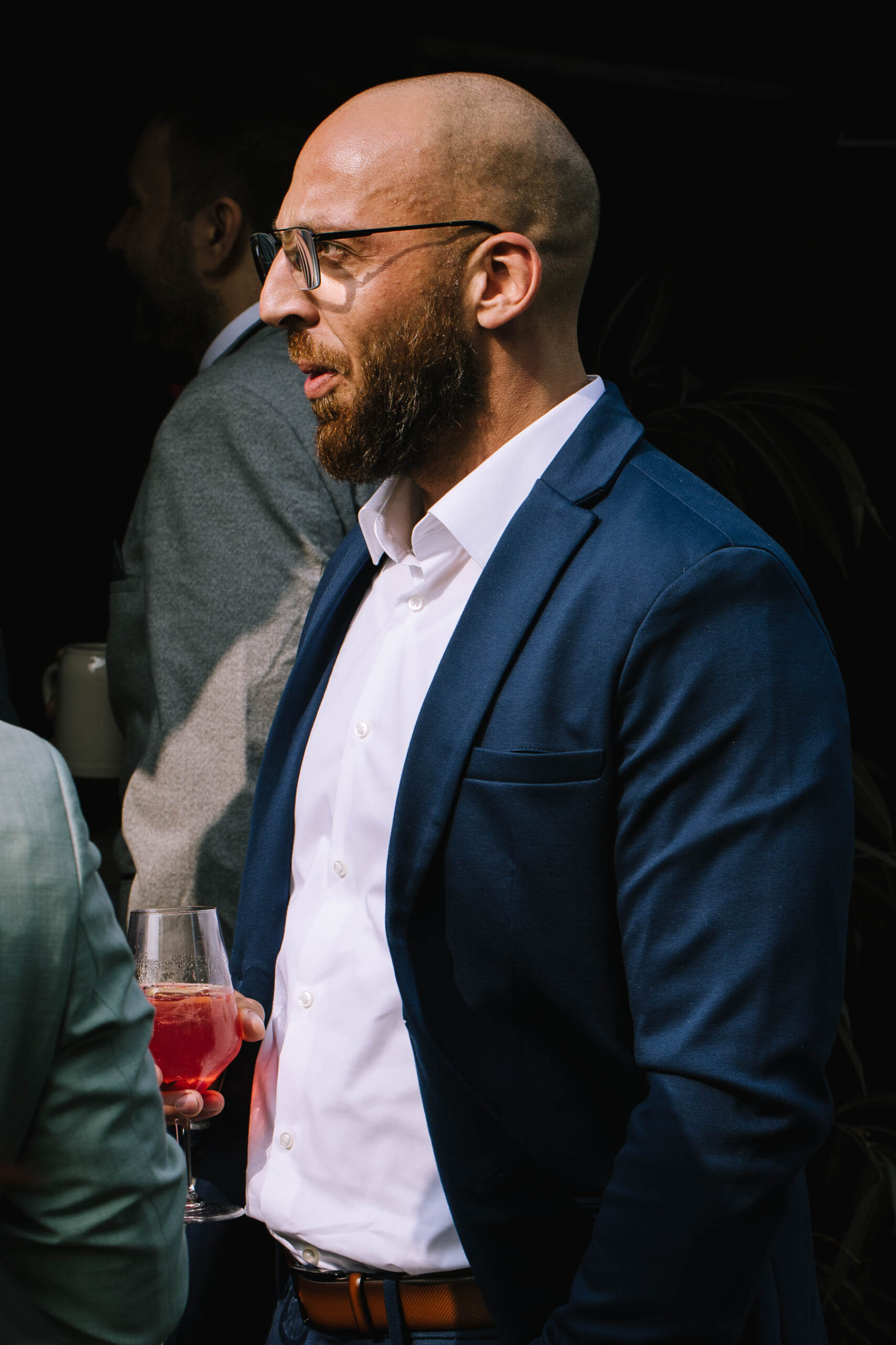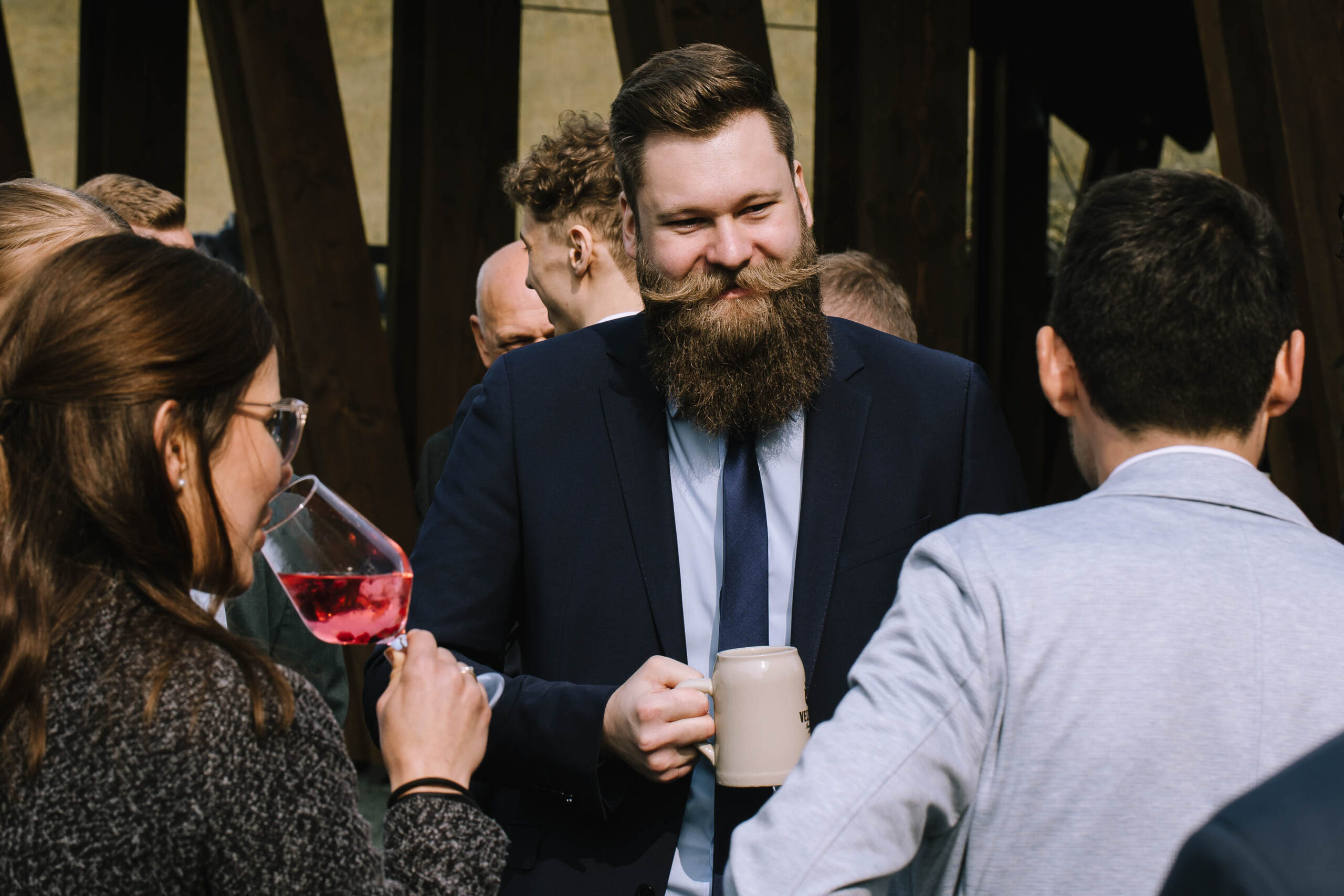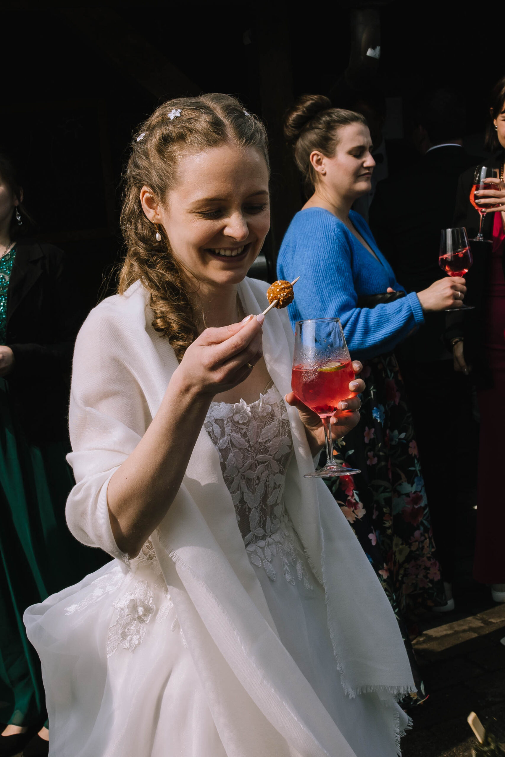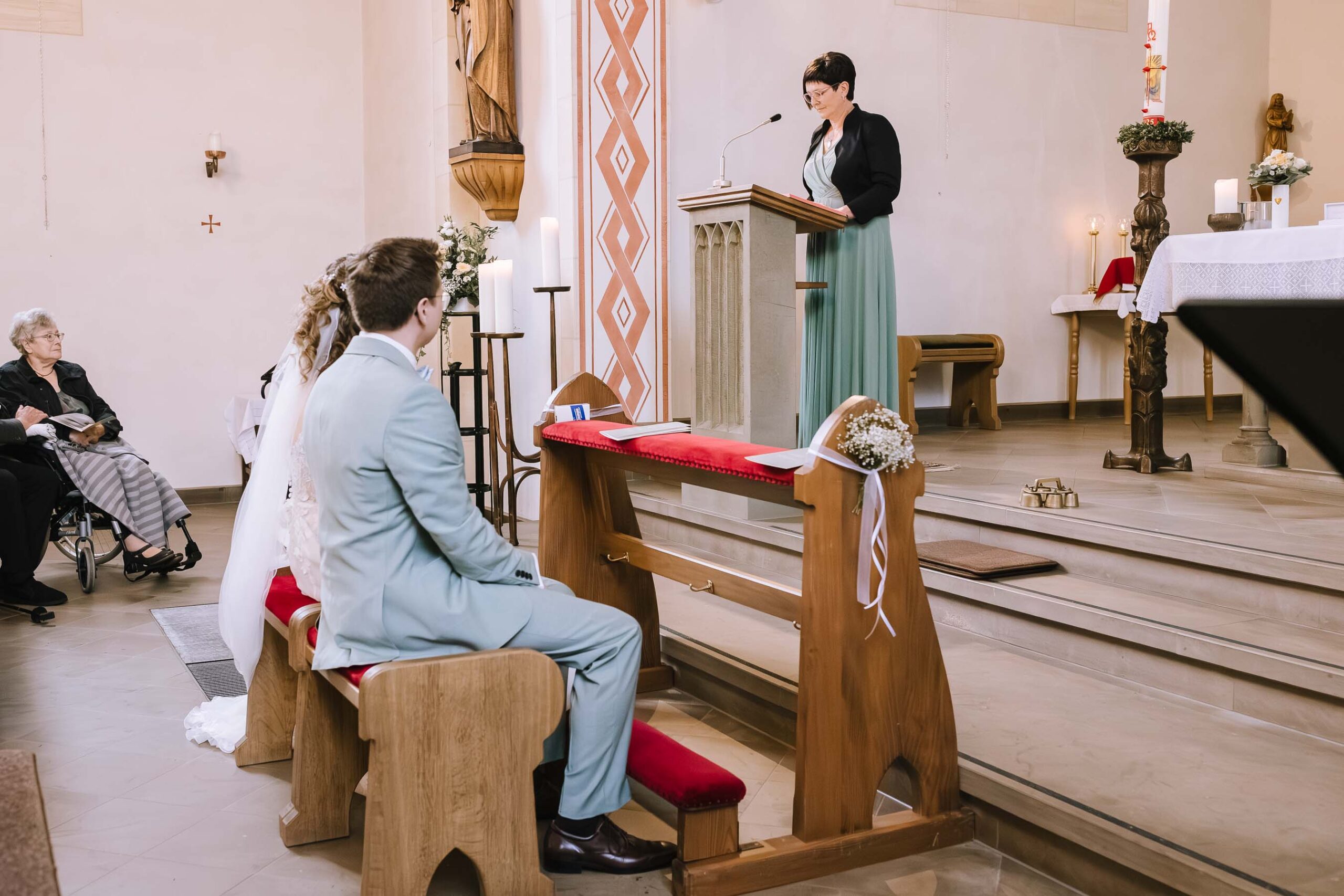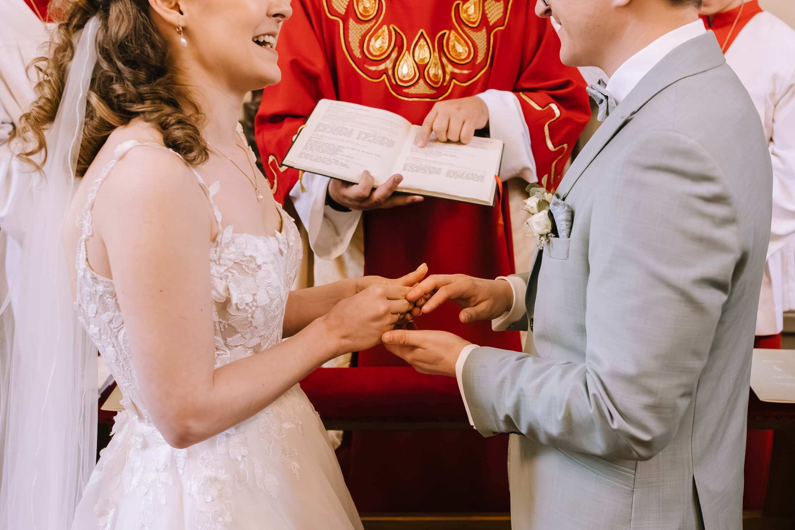 Es gibt Hochzeiten, bei denen die Chemie zwischen Brautpaar und Fotografin sofort stimmt – und die Hochzeit von Lara und Chris war definitiv eine davon. Bei unserem ersten Gespräch, das bei lecker Pizza & Pasta stattfand, hatte ich sofort das Gefühl, dass die beiden die perfekten Kunden für mich sind. Besonders Chris‘ flacher Humor sorgte bereits beim Vorgespräch für zahlreiche Lacher. Lara und Chris entschieden sich dafür, ihren First Look ganz intim im Garten von Laras Eltern stattfinden zu lassen. Der Plan war, sich im Garten zu treffen und diesen besonderen Moment zu genießen, doch der Himmel zog schnell zu, und dunkle Wolken deuteten bereits auf einen Regenschauer hin. Natürlich ließen wir uns davon nicht die Stimmung verderben. Die Trauzeugen und Freunde hatten bereits Schirme parat, und so war der First Look trotzdem wunderschön. Der Regen setzte genau nach diesem Moment ein – mal wieder das perfekte Timing. Die Trauung fand in der Pfarrkirche St. Antonius in Hofolpe statt. Trotz des Wetters war der Moment einfach magisch, vor allem als Lara und Chris nach der Trauung von einem Musikverein, in dem Lara selbst spielte, mit lauter Musik empfangen wurden. Das war ein absolutes Highlight und als Lara sich sogar noch einmal ein Instrument schnappte, um mitzuspielen, war das für alle ein unvergesslicher Moment. Nach der Kirche ging es weiter zur Hochzeitslocation Steinbergs Alm in Wildewiese. Bei einem Sektempfang mit Canapés genossen alle die festliche Stimmung. Einige Gruppenfotos und Portraits durften natürlich nicht fehlen. Das Wetter zeigte sich immer noch unentschlossen, doch bei all den tollen Momenten war der Regen fast nebensächlich. Die Location war einmal mehr ein Traum – mit einer grandiosen Aussicht auf das „Land der 1000 Berge“ und einer Atmosphäre, die nicht zu übertreffen war.