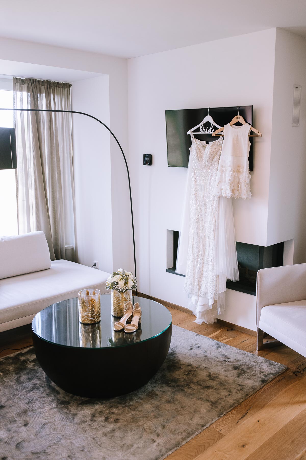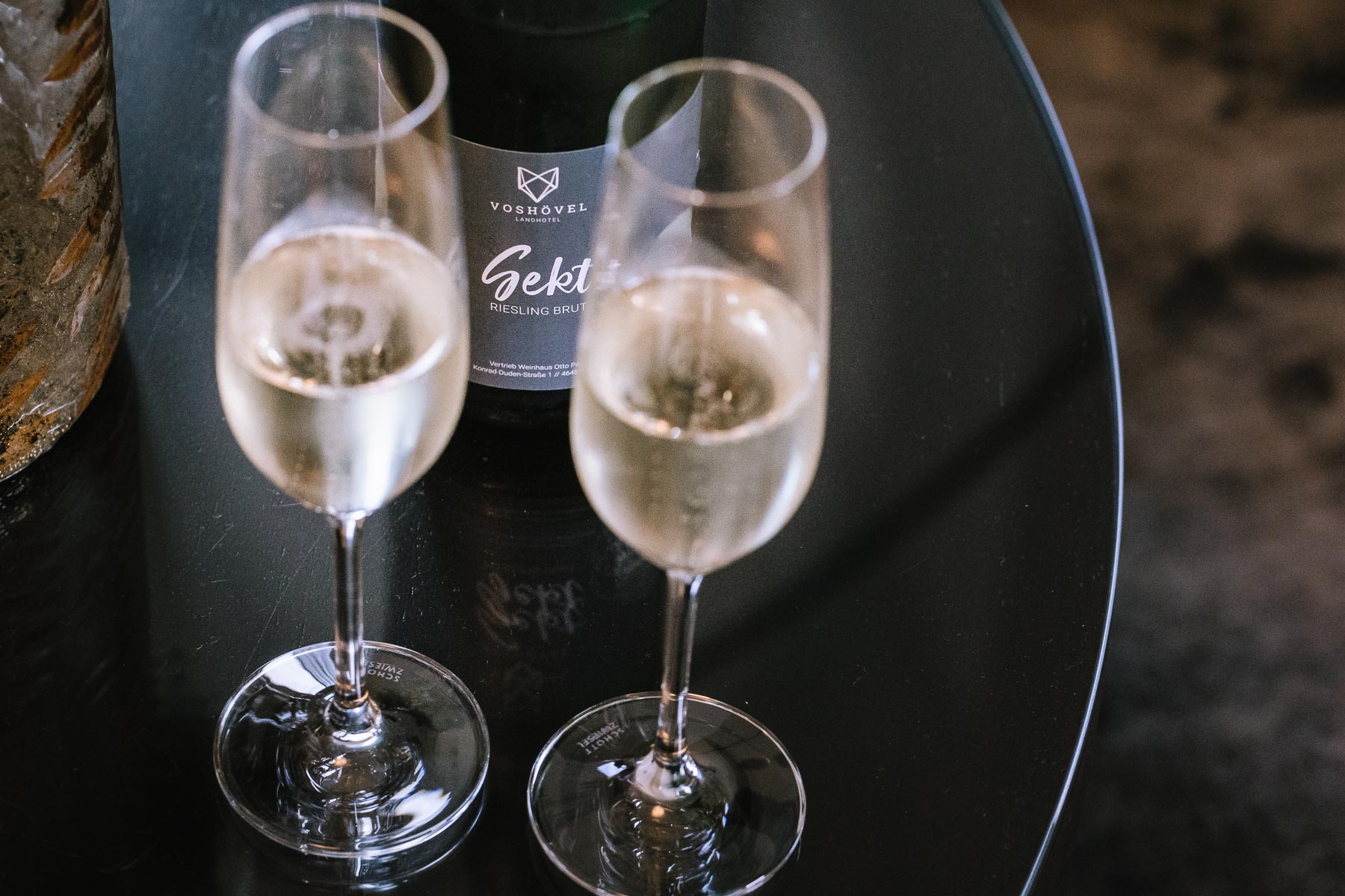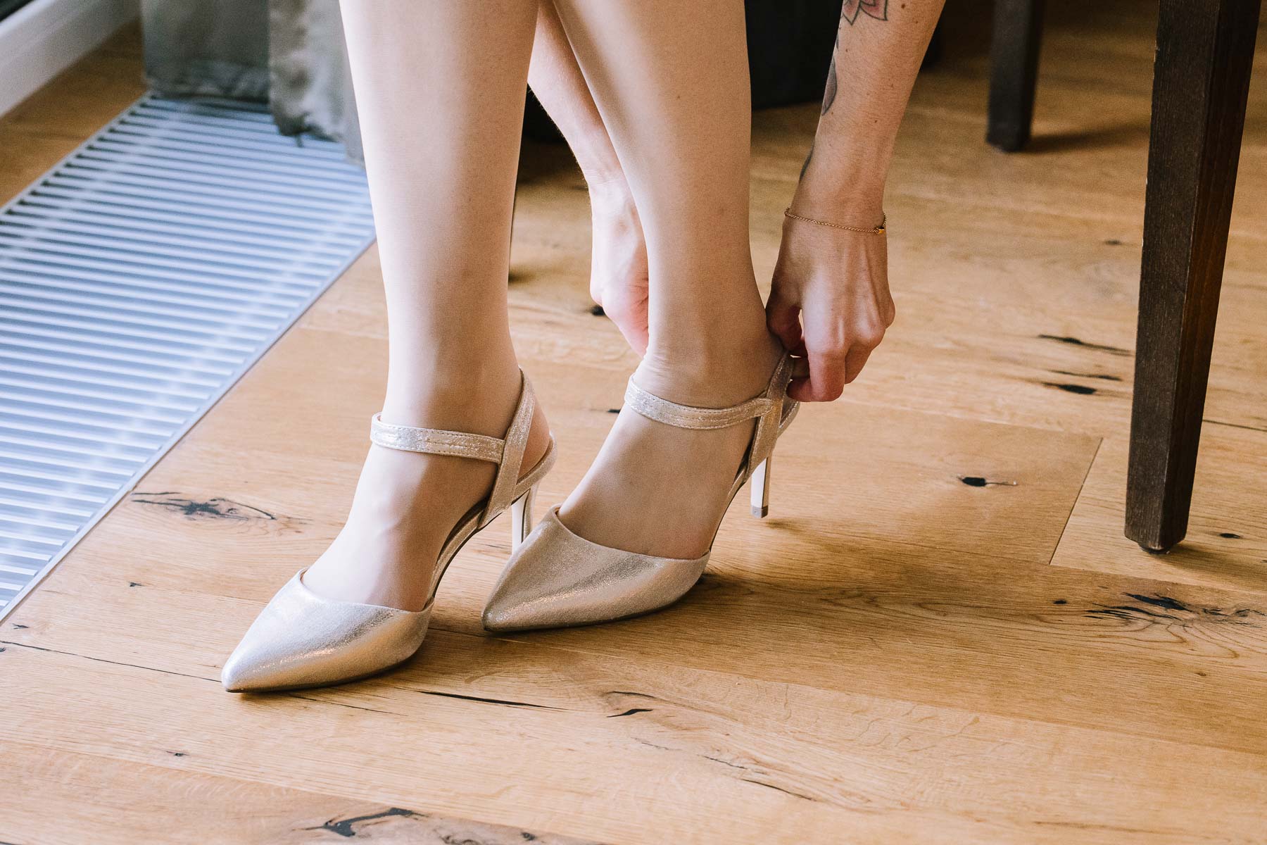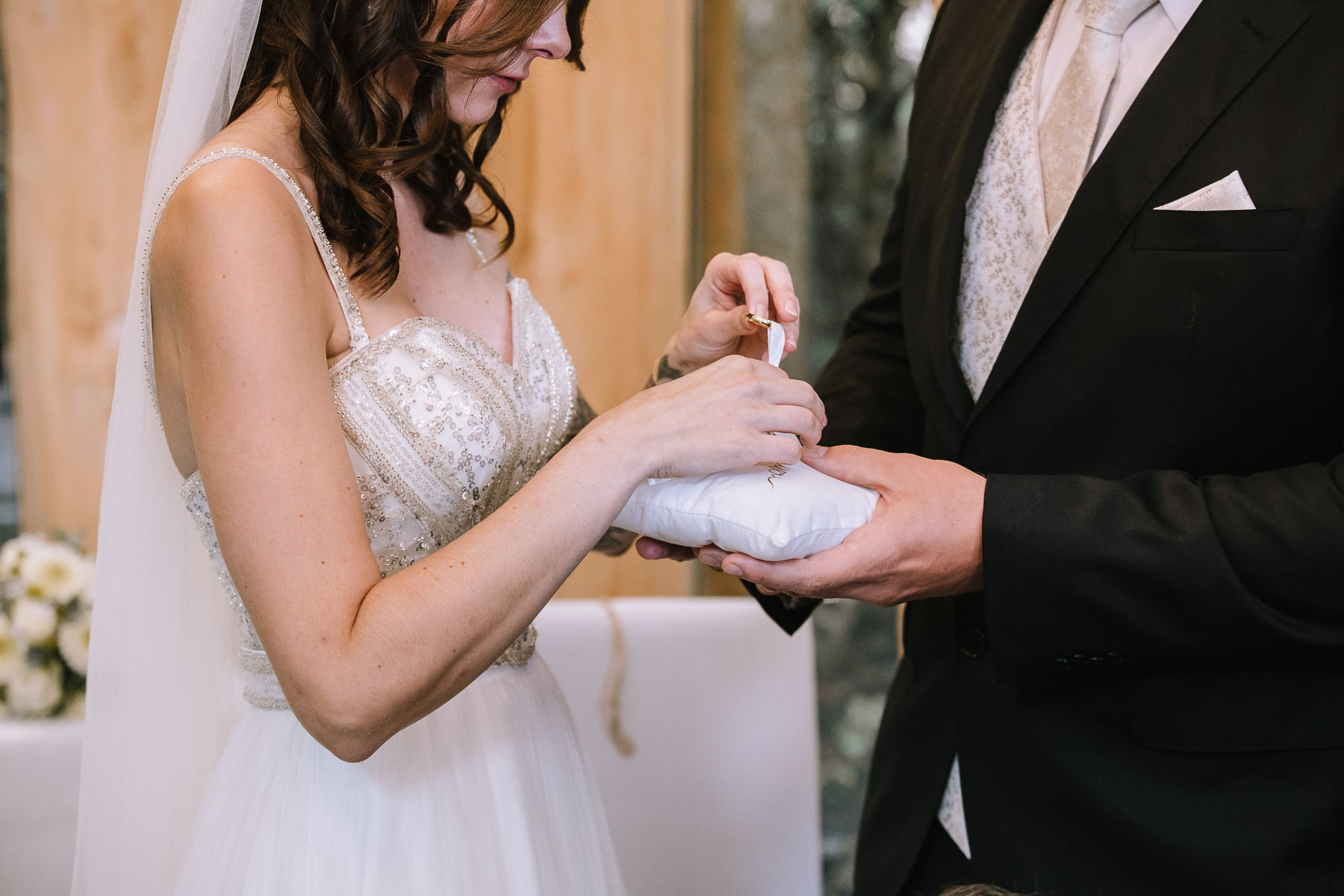Im Frühjahr hatte ich eine Mail aus der Schweiz im Postfach – sie war von Mirjam und Ben, die sich dazu entschlossen hatten, mit ihren Lieblingsmenschen eine Destination Wedding in Deutschland zu feiern. Als Location hatten sie sich dazu das Landhotel Voshövel in Schermbeck am Niederrhein ausgesucht. Mirjam erzählte mir, dass es ihnen wichtig gewesen sei, eine Location zu haben, wo ihre Gäste sich wohlfühlten und wo sie sich vor allem auch direkt vor Ort trauen lassen können. Hierfür ist das Landhotel Voshövel mit dem Confideum, den tollen Suiten und Spabereich einfach perfekt. Neben der Champagner-Suite, die standardmäßig von Brautpaaren reserviert wird, gibt es auch noch die Füchschensuite, die Persiensuite, die Kristallsuite und die Tiffany- und Fuchsteufelswild-Suite. Hier könnt ihr euch die anderen Suites anschauen. Mirjams Getting Ready fand -wie bei meinen letzten Hochzeiten auch- in der Champagnersuite statt. Der gemütlich eingerichtete Raum mit Holz- und Goldtönen passt perfekt zu einer Herbst- und Winterhochzeit. Nachdem ich alle Details fotografiert hatte, ging ich direkt nach nebenan, wo sich Ben fertigmachte. Nach wenigen Minuten waren wir schon fertig, sodass ich mich ganz auf die Braut und die anderen anwesenden konzentrieren konnte. Mirjam hatte für alle Gäste leckere Herzkekse aus der Schweiz mitgebracht