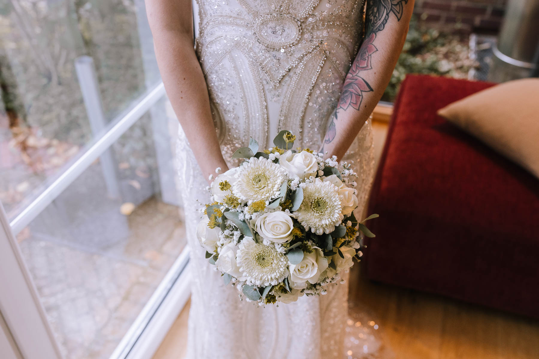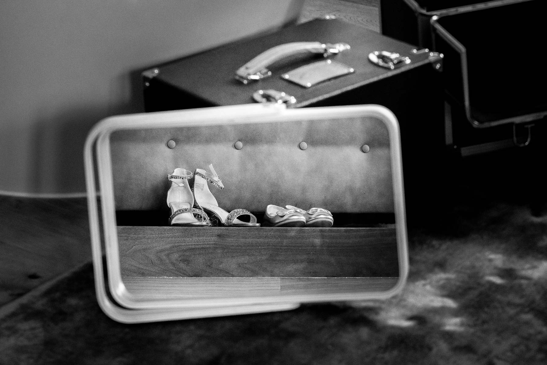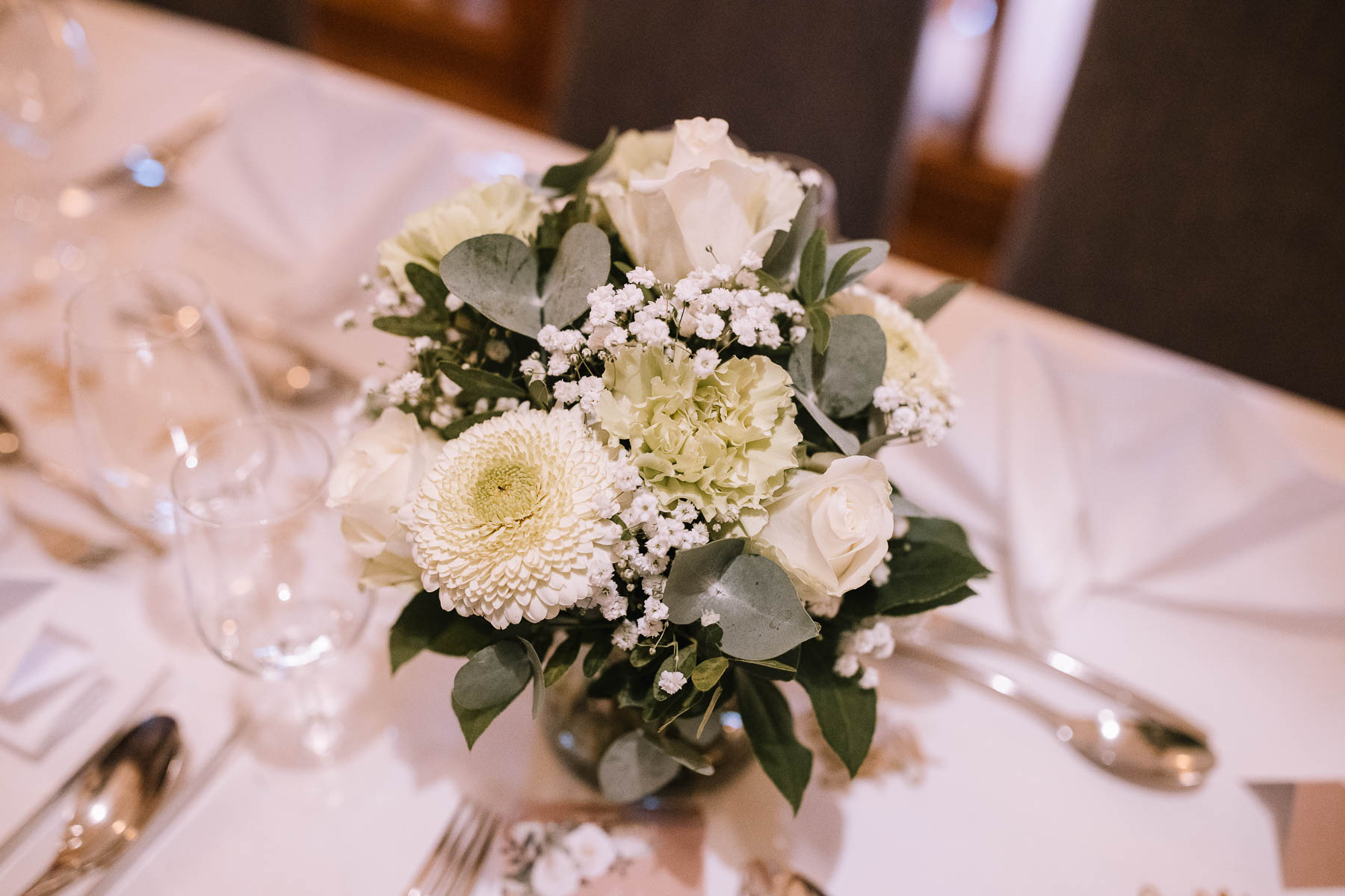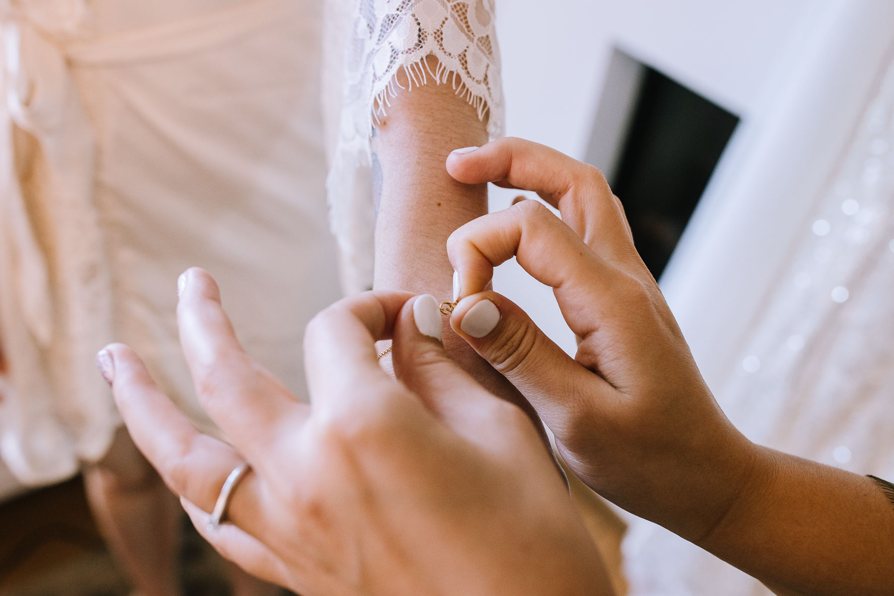 Im Frühjahr hatte ich eine Mail aus der Schweiz im Postfach – sie war von Mirjam und Ben, die sich dazu entschlossen hatten, mit ihren Lieblingsmenschen eine Destination Wedding in Deutschland zu feiern. Als Location hatten sie sich dazu das Landhotel Voshövel in Schermbeck am Niederrhein ausgesucht. Mirjam erzählte mir, dass es ihnen wichtig gewesen sei, eine Location zu haben, wo ihre Gäste sich wohlfühlten und wo sie sich vor allem auch direkt vor Ort trauen lassen können. Hierfür ist das Landhotel Voshövel mit dem Confideum, den tollen Suiten und Spabereich einfach perfekt. Neben der Champagner-Suite, die standardmäßig von Brautpaaren reserviert wird, gibt es auch noch die Füchschensuite, die Persiensuite, die Kristallsuite und die Tiffany- und Fuchsteufelswild-Suite. Hier könnt ihr euch die anderen Suites anschauen. Mirjams Getting Ready fand -wie bei meinen letzten Hochzeiten auch- in der Champagnersuite statt. Der gemütlich eingerichtete Raum mit Holz- und Goldtönen passt perfekt zu einer Herbst- und Winterhochzeit. Nachdem ich alle Details fotografiert hatte, ging ich direkt nach nebenan, wo sich Ben fertigmachte. Nach wenigen Minuten waren wir schon fertig, sodass ich mich ganz auf die Braut und die anderen anwesenden konzentrieren konnte. Mirjam hatte für alle Gäste leckere Herzkekse aus der Schweiz mitgebracht