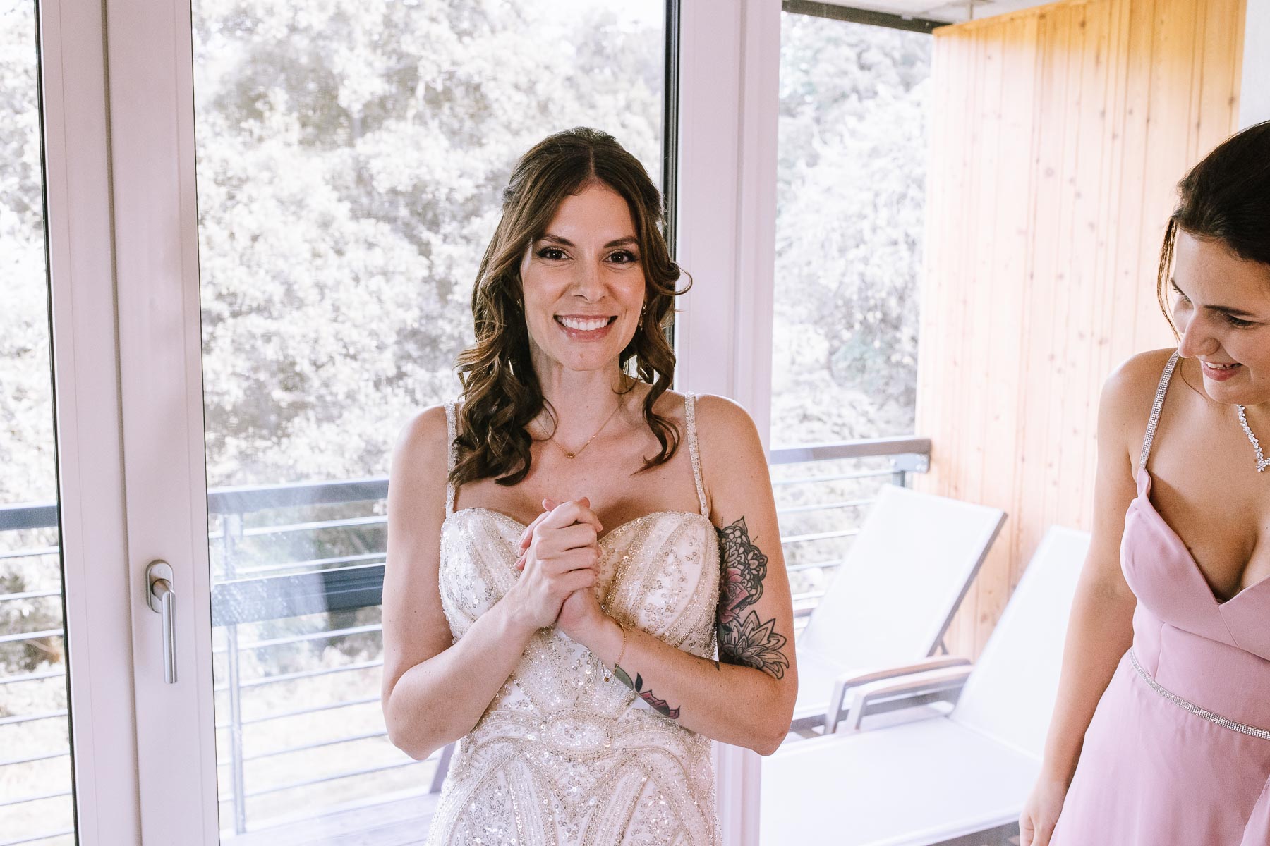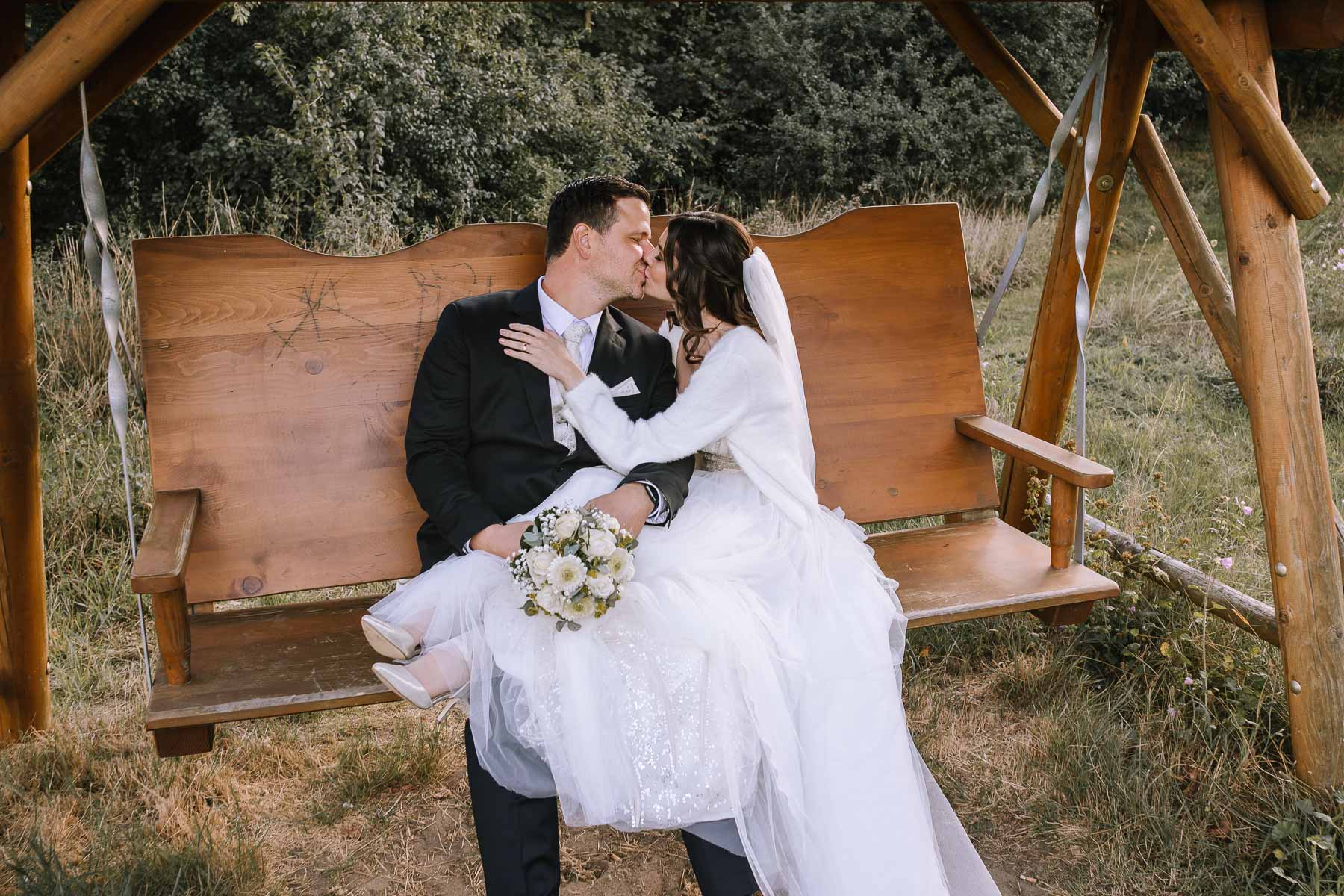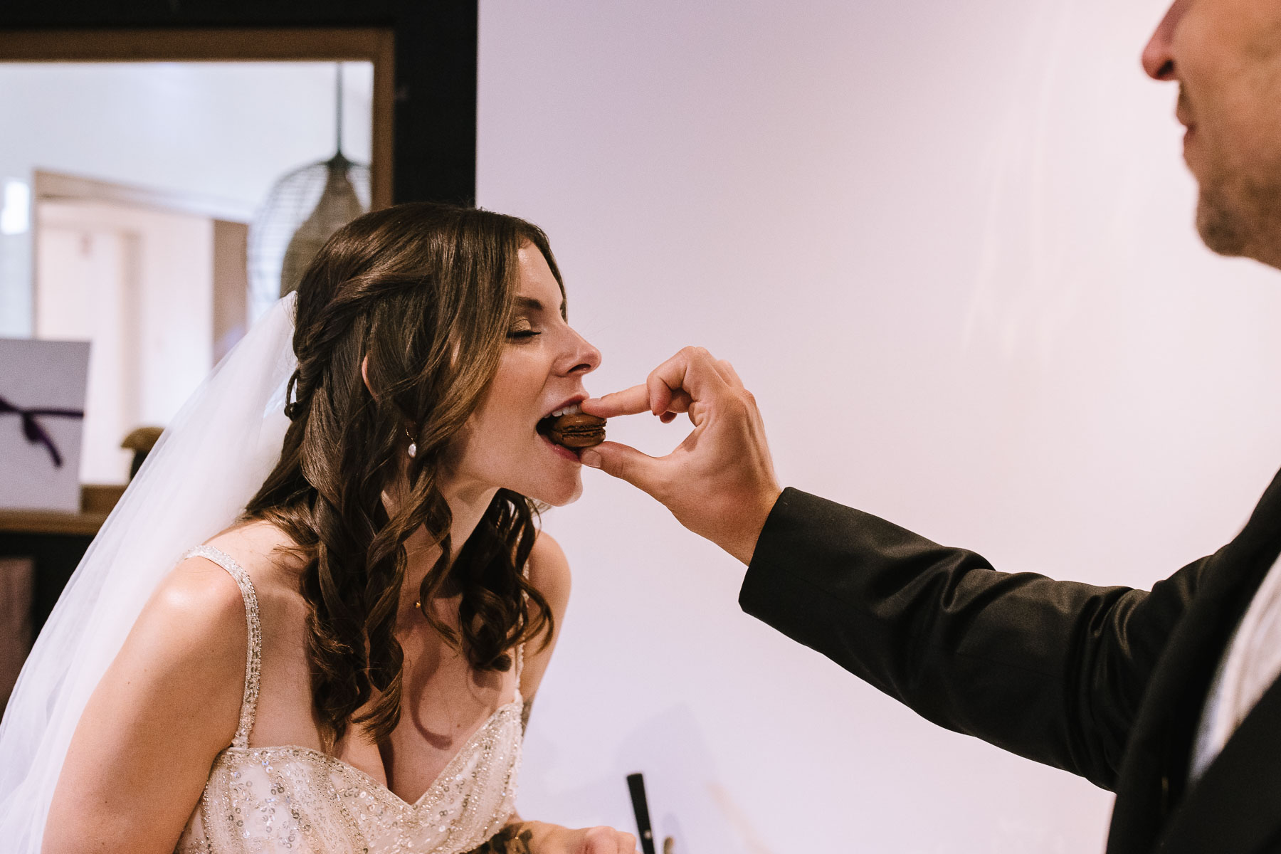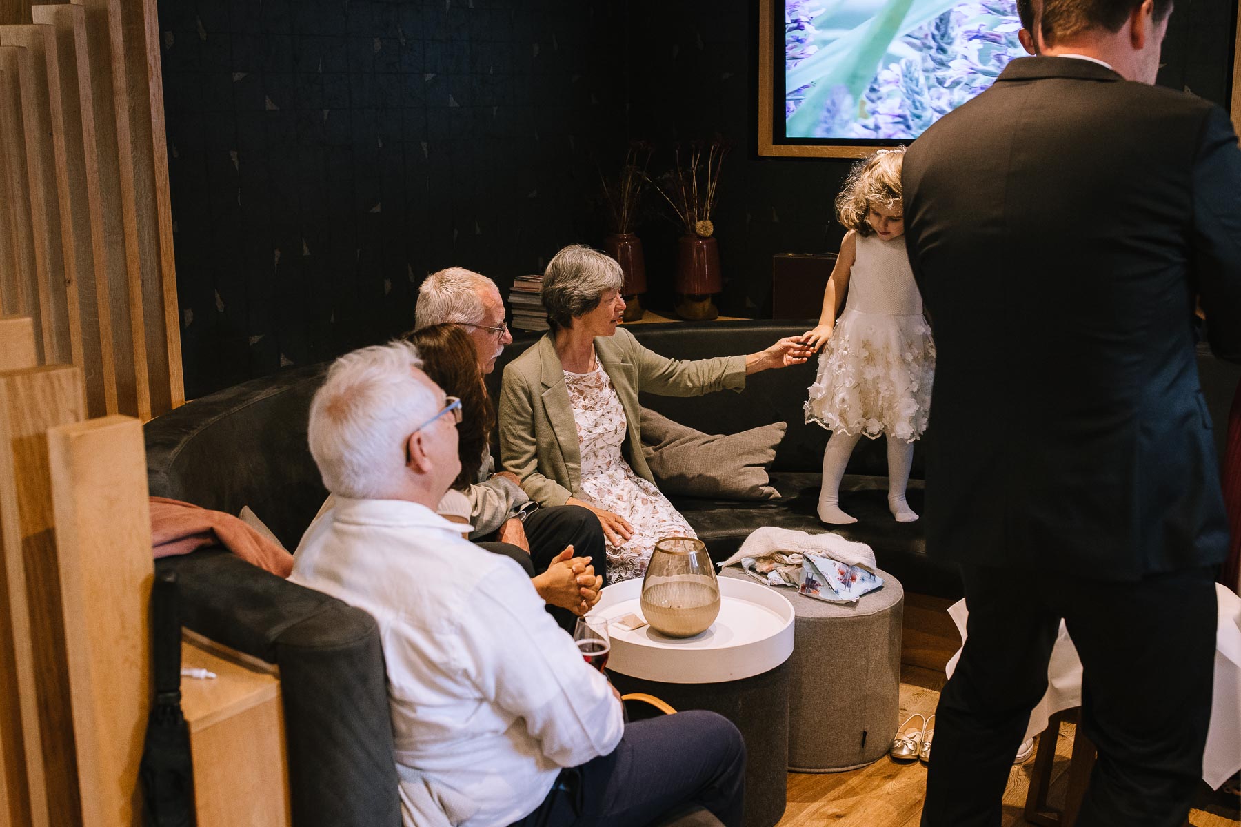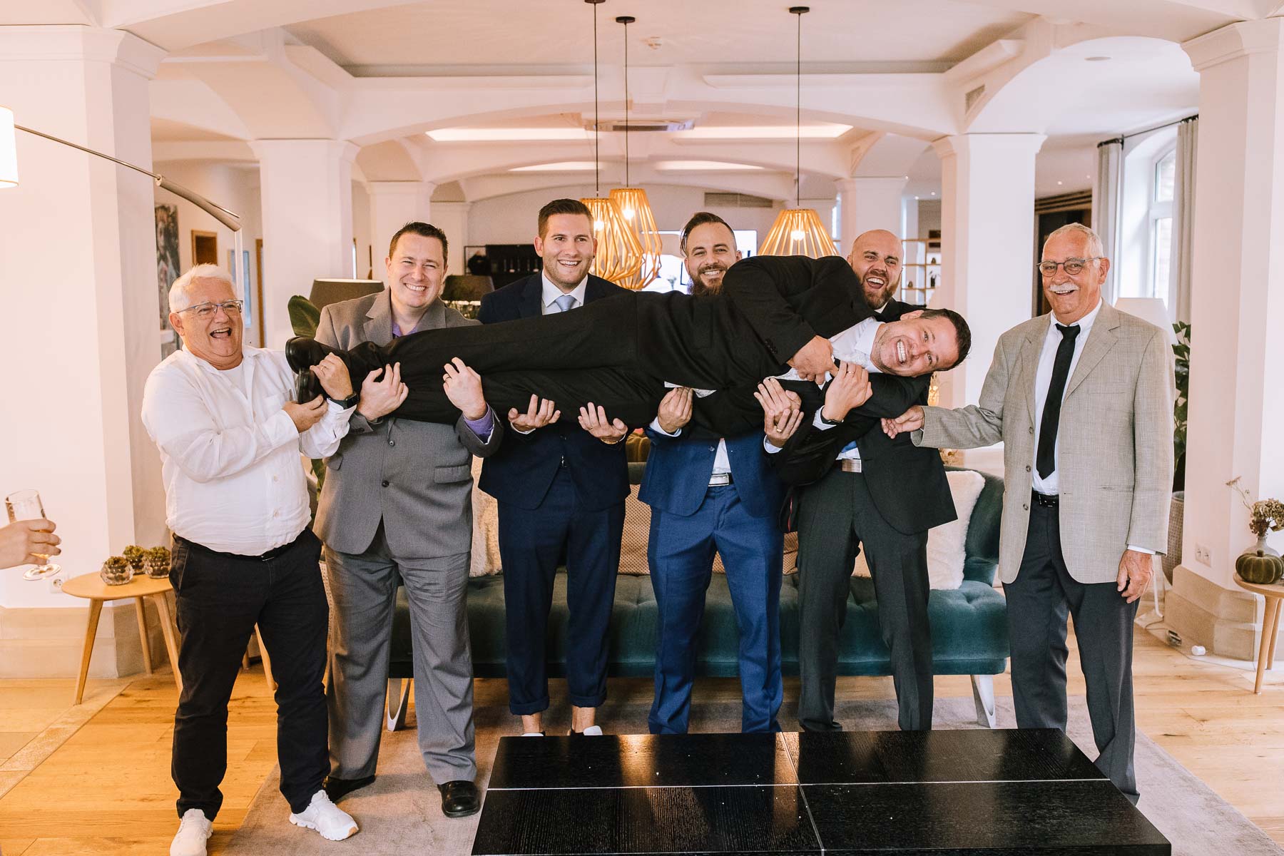 und dabei auch an die Stylistinnen und mich gedacht (mit Süßkram kann man mich ja immer locken, hehe). Nachdem auch die süße Tochter der Beiden angezogen war, machte ich mich auf den Weg zum Confideum, wo die standesamtliche Trauung stattfinden sollte. Die Traurednerin und die Gäste warteten schon und auch Mirjams Papa stand vor dem Confideum, um sie dort zu empfangen und gemeinsam mit ihr nach in die Kapelle zu gehen. Die Traurednerin berührte alle mit ihrer Rede, sodass das eine oder andere Tränchen verdrückt wurde. Für Unterhaltung sorgte aber auch die kleine Tochter, die herzlich lachte, fröhlich herumtobte und unheimlich viel Spaß dabei hatte, Papas Schuhe aufzumachen. Nach der Trauung gab es in der Lounge die Hochzeitstorte mit leckeren Macarrons, die traditionsgemäß angeschnitten wurde. Anschließend machten wir uns auf den Weg nach draußen, um dort ein kleines Brautpaarshooting zu machen. Als wir wieder zurück im Hotel waren, machten wir in der Lobby und an der Bar noch ein paar Fotos mit den Gästen. Für mich war es mal wieder ein wunderschöner angenehmer Tag im Landhotel mit super lieben Herzmenschen. Danke, dass ich euch begleiten durfte!