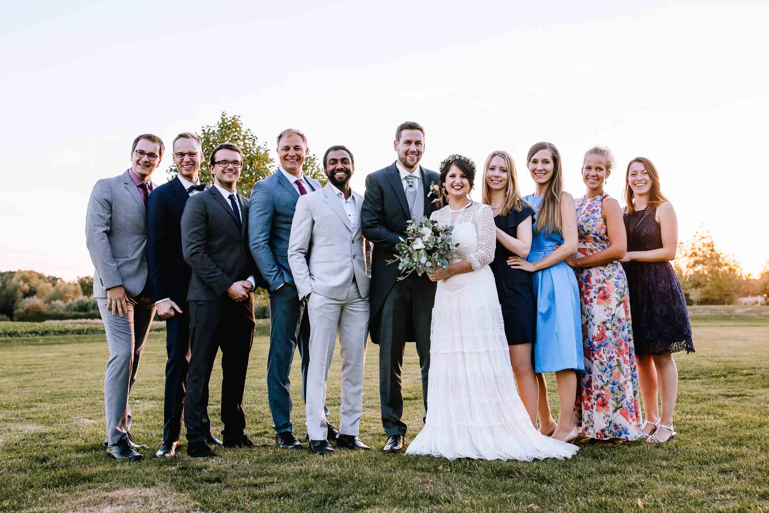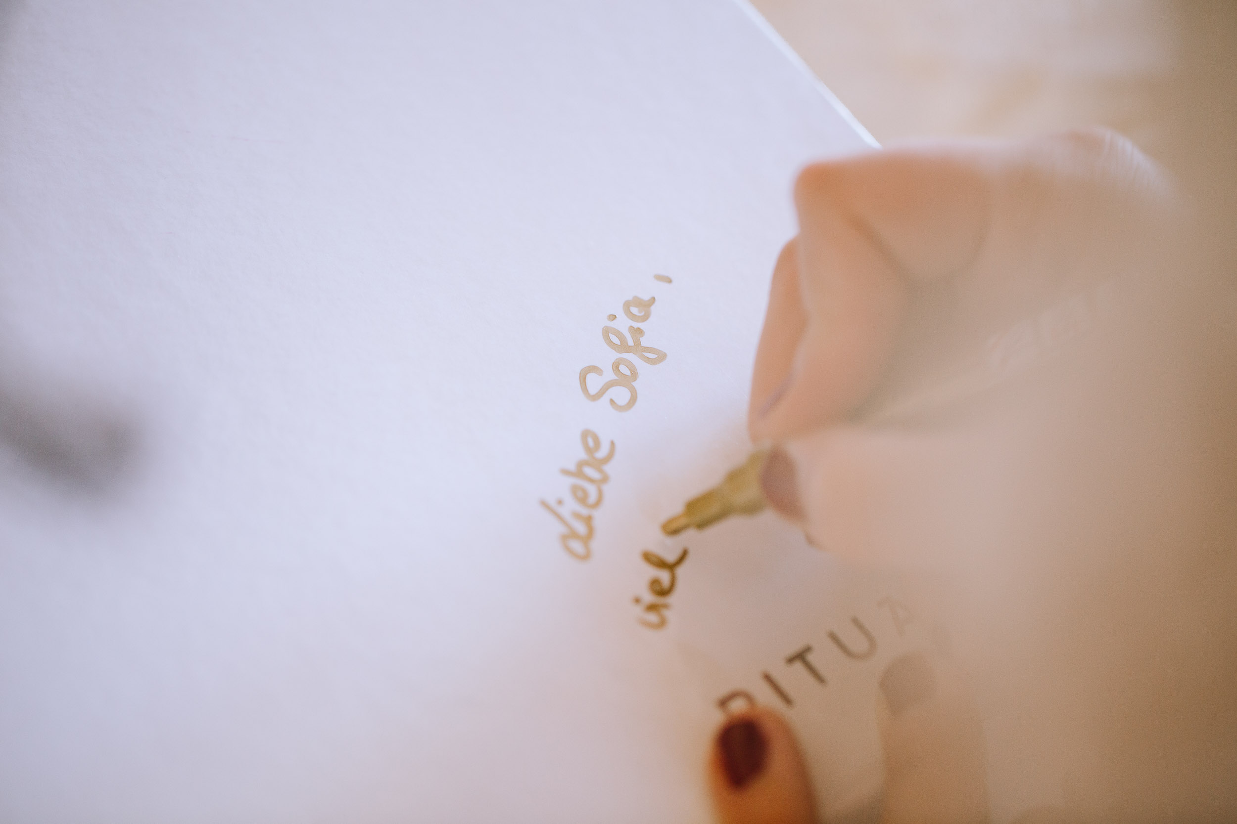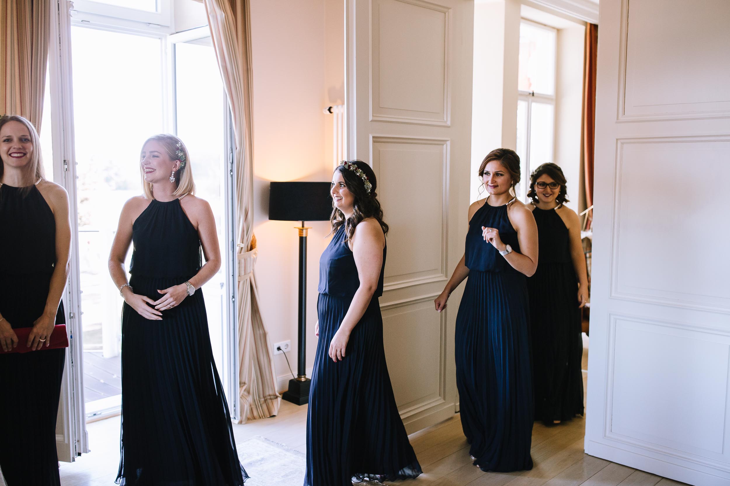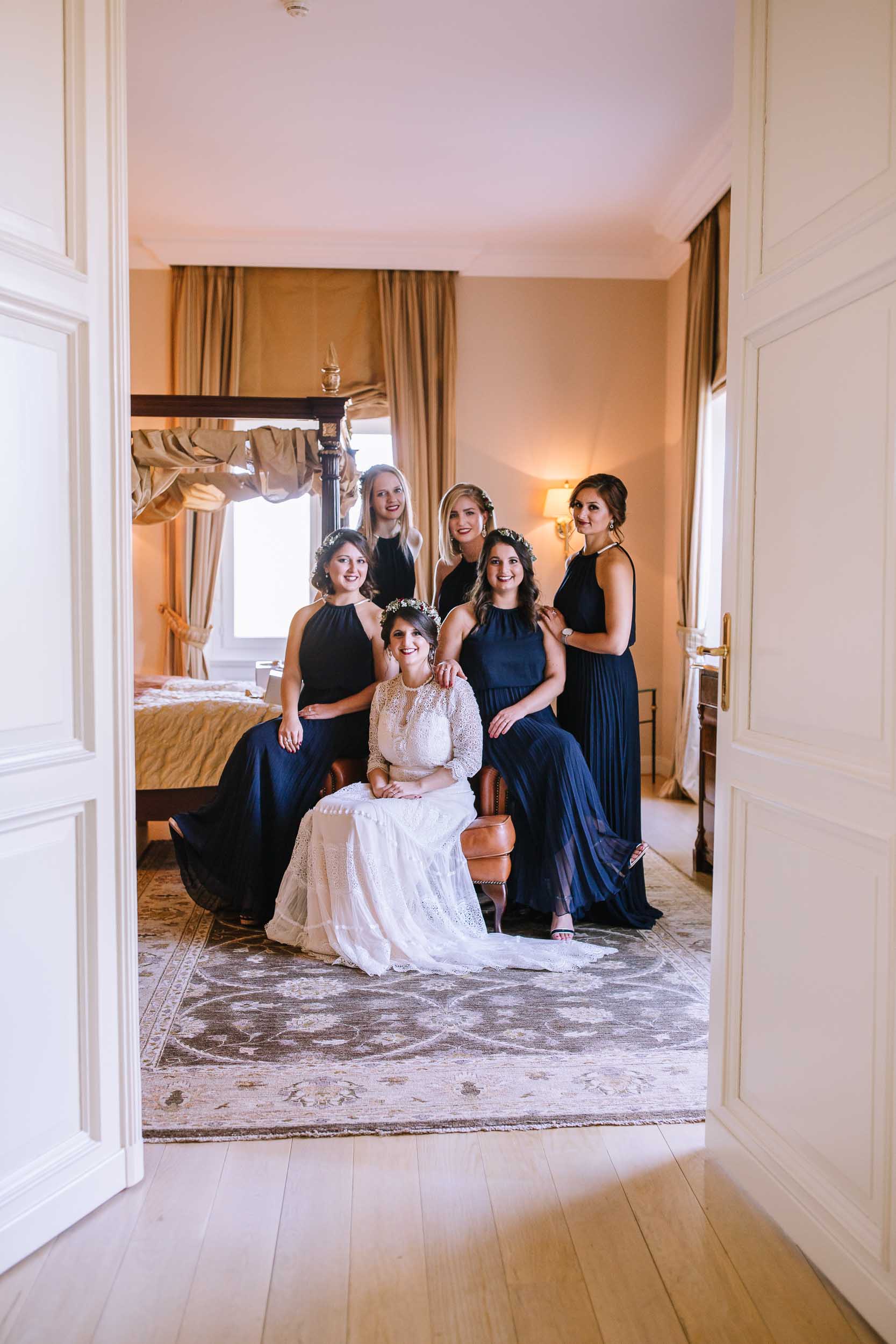 Während alle anderen sich bereits auf den Weg zum Ort der freien Trauung gemacht hatten, ging Sonja nochmal in ihre Suite, um ihren Brautjungfern ihre hĂĽbsch verpackten Geschenke zu ĂĽberreichen. Danach ging es auch schon los. Sonja kam – begleitet von ihrem Vater- und ihren Brautjungfern, die alle in wunderschönen, edlen dunkelblauen Kleidern gekleidet waren, den Weg entlang in Richtung Traubogen, wo ihr Mann Lars schon auf sie wartete. Die Trauung selbst war sehr emotional und wirklich schön! Nach der Gratulation gingen wir dann mit den engsten Verwandten und Freunden hinter das Herrenhaus, um die obligatorischen Gruppenfotos zu machen. Nachdem auch dieser Punkt abgehakt war, haben wir noch ein schönes Sunset-Shooting gemacht und sind anschlieĂźend zu den Gästen in die Festscheune gegangen, in der bis in die Nacht hinein ausgiebig gefeiert, gegessen und getanzt wurde. Diese Hochzeit habe ich ĂĽbrigens fĂĽr die liebe Imke von Pennie + Cam begleitet. Vielen Dank, dass ich dabei sein durfte!
