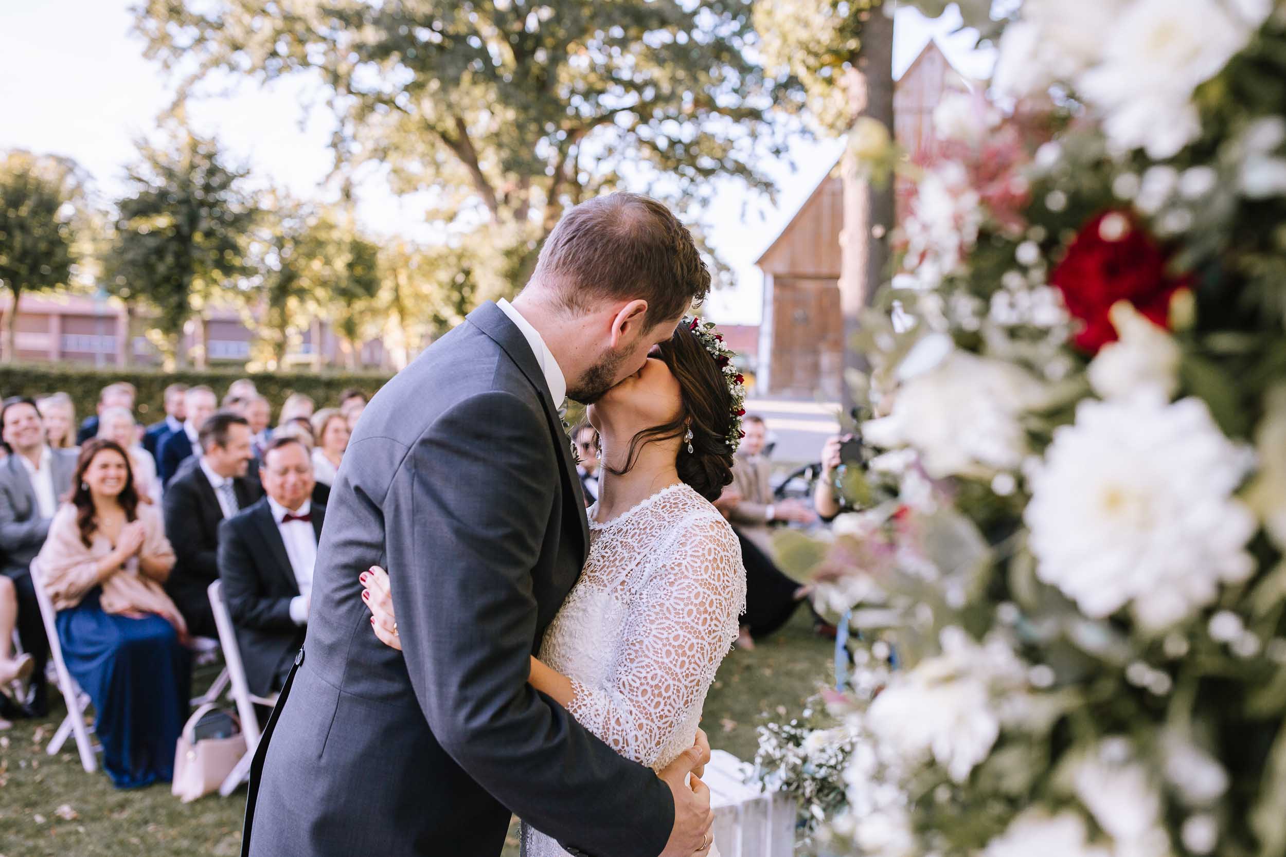 Im Herbst war ich als Hochzeitsfotografin auf Gut Kump in Hamm, um den zweiten Teil der deutsch-afghanischen Hochzeit von Sonja und Lars fotografisch zu begleiten. Die Beiden hatten nämlich zuvor nach traditionell afghanischer Tradition in Essen gefeiert, sodass heute die traditionell deutsche Hochzeit mit freier Trauung im Garten des Gut Kumps stattfand.