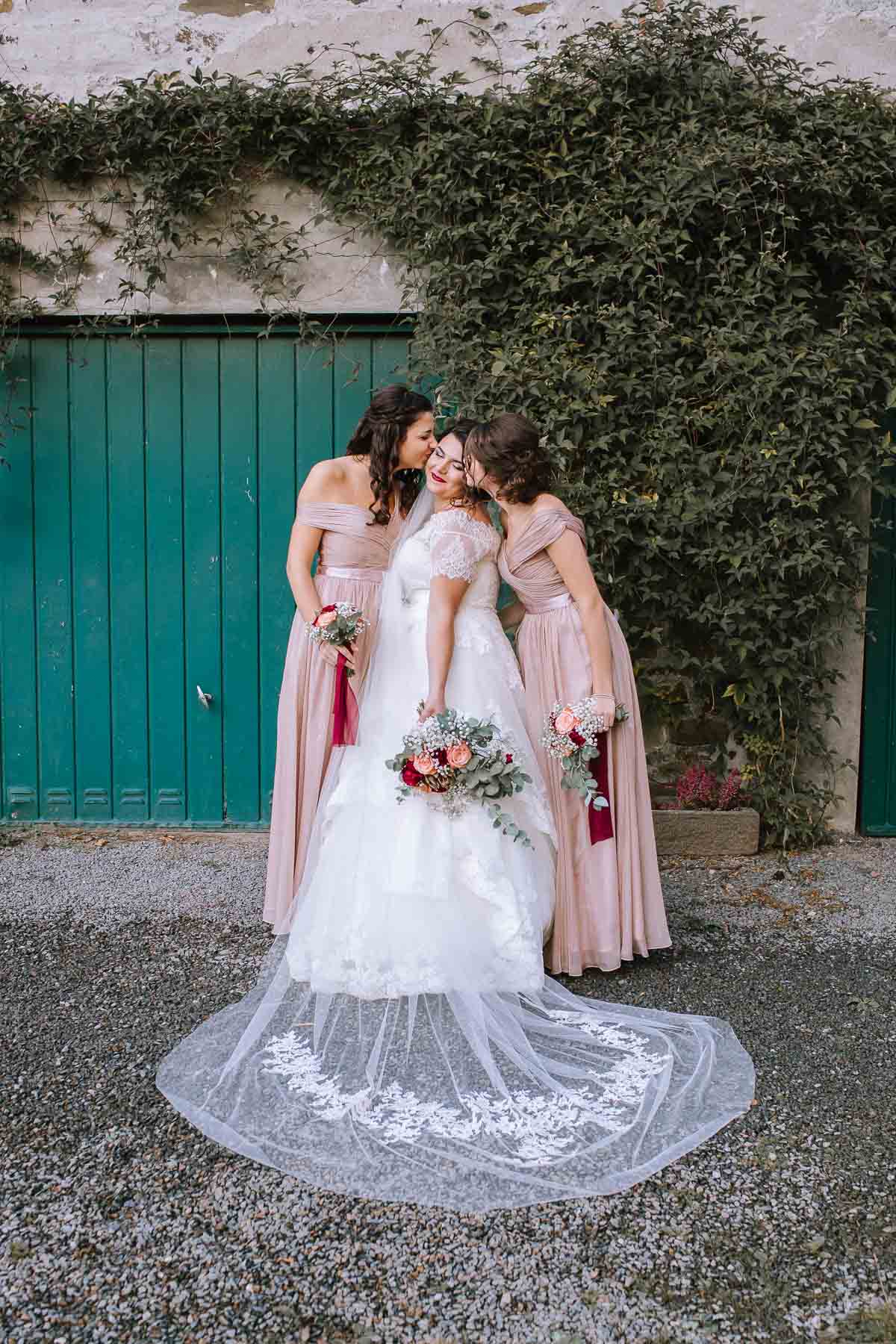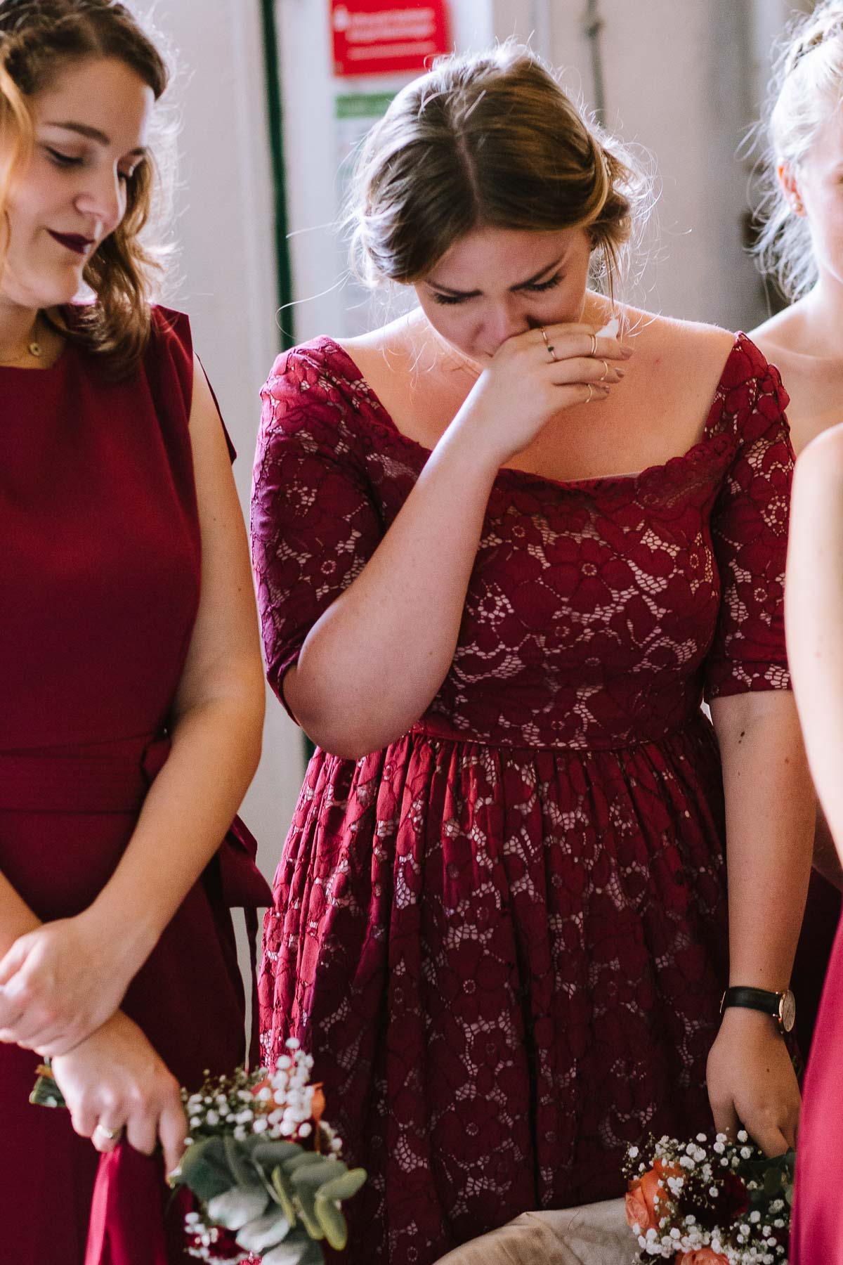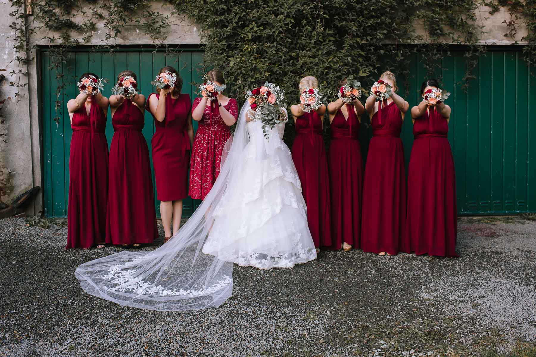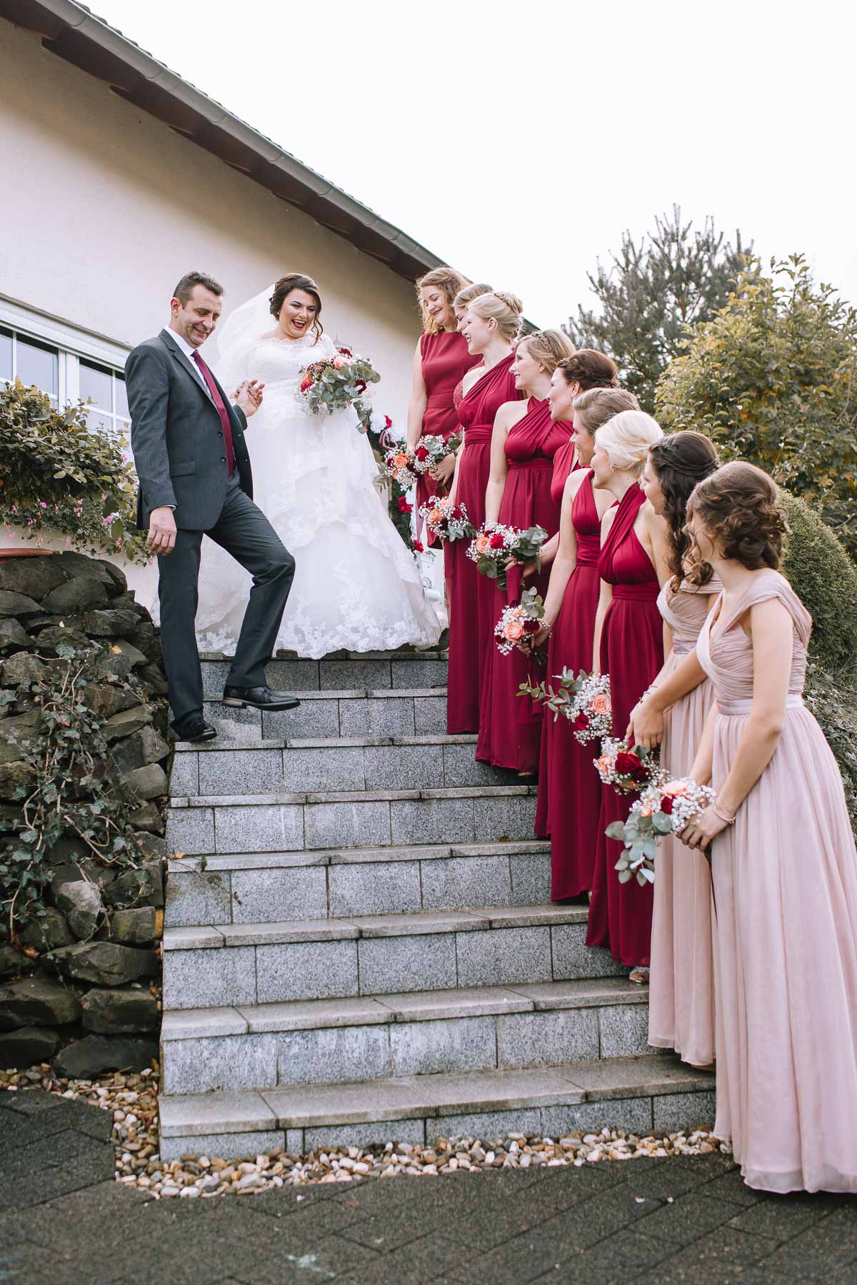 Wie in Annas Freundeskreis üblich – die Mädels kennen sich größten Teils schon seit der Grundschulzeit- trugen auch alle Brautjungfern dieselben Kleiner, was wunderschön aussah. Natürlich ließen sie es sich nicht nehmen, Anna beim Getting Ready in ihrem Elternhaus zur Seite zu stehen. Es war ein ganz schönes Gewusel, aber alle waren gut gelaunt und sorgten dafür, dass eine herzliche und emotionale Stimmung herrschte.
