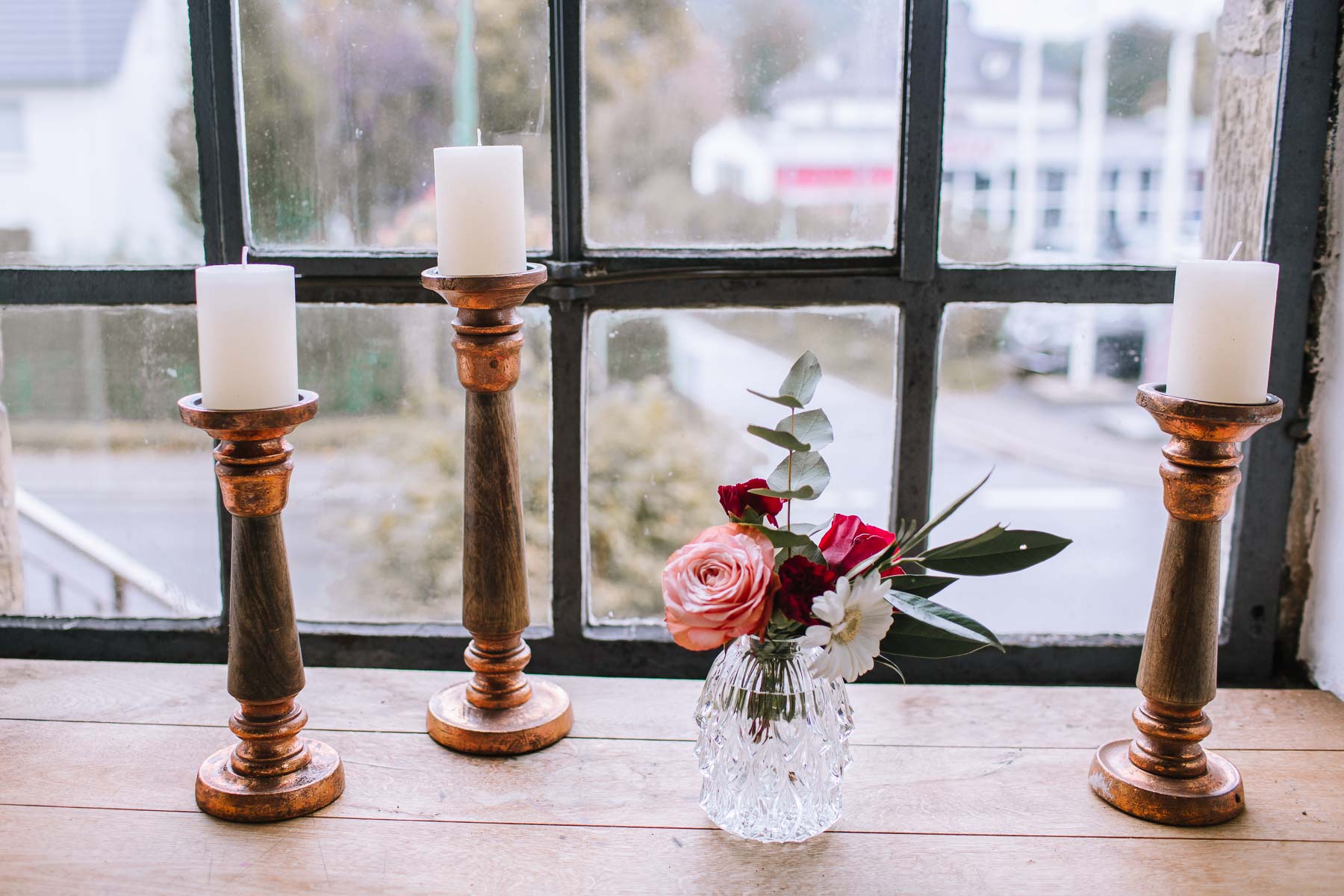 Anna kenne ich noch aus meiner Schulzeit. Während ich mich damals als Fotografin selbstständig gemacht habe, hat sie dasselbe getan. Aber nicht als Fotografin, sondern als Floristin und Dekorateurin. Hin und wieder haben wir uns natürlich auch über unsere Hochzeiten unterhalten und ausgetauscht, bis sie mir eines Tages sagte, dass sie nun selbst an der Reihe wäre. Ich habe mich einfach riesig gefreut, dass sie mir so vertraut hat und mich als Hochzeitsfotografin in der historischen Brennerei Rönsahl, die direkt neben der Hochzeitslocation Kochbar ist, ausgewählt hat.
