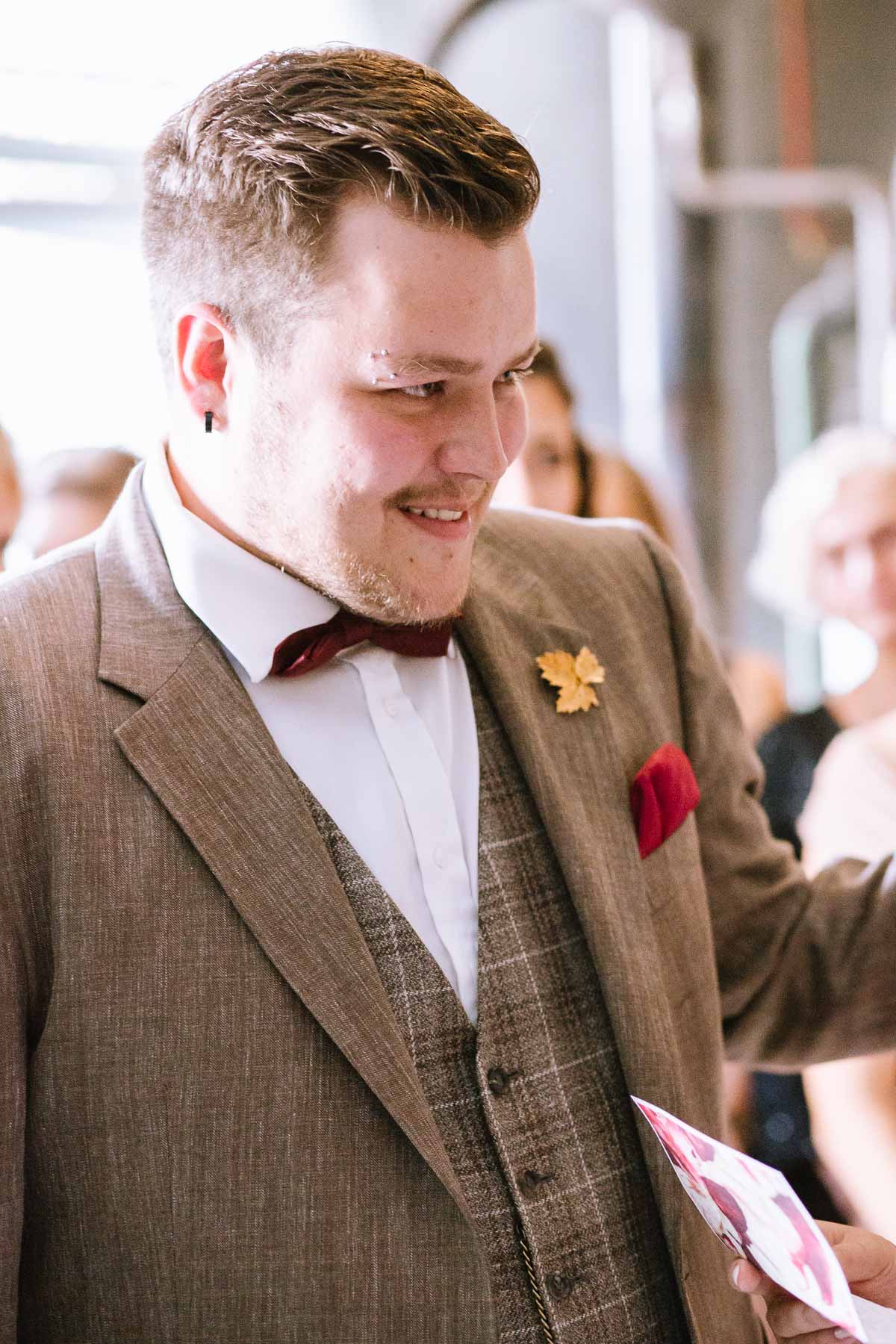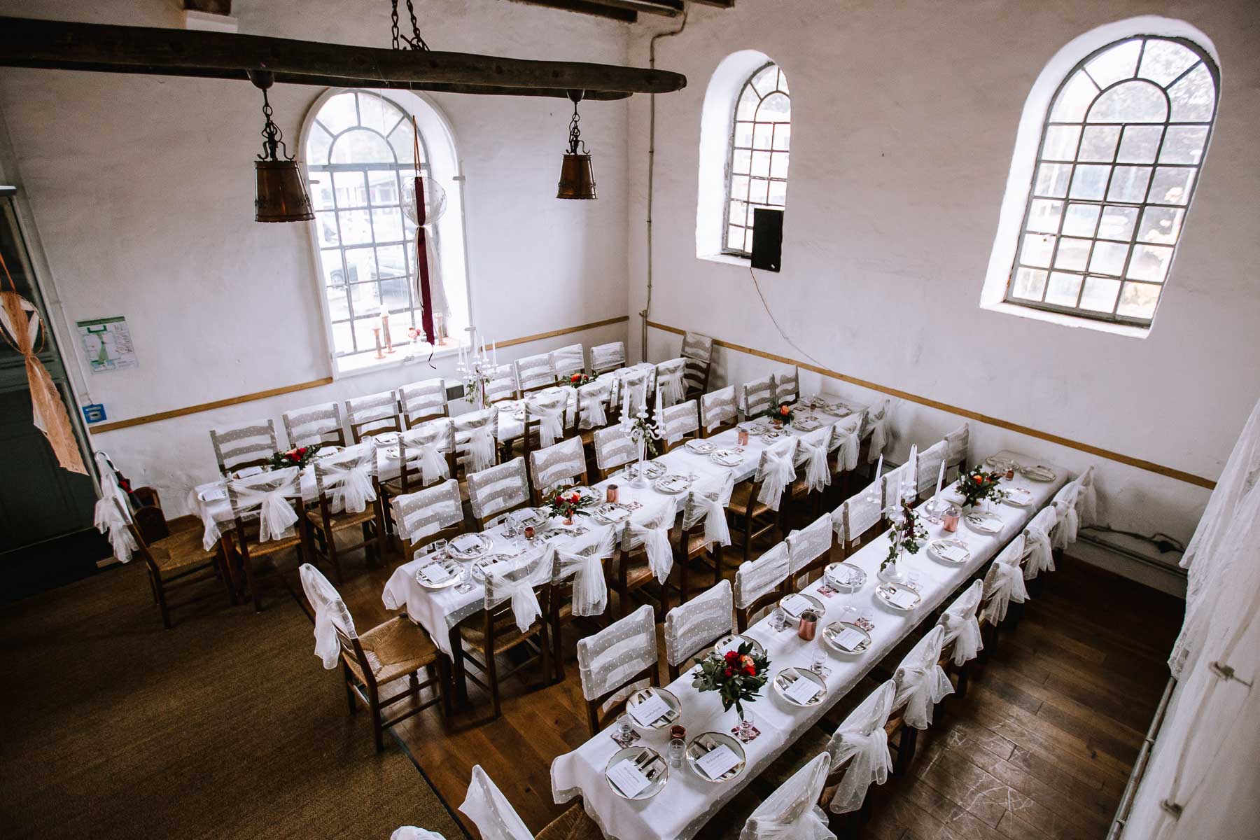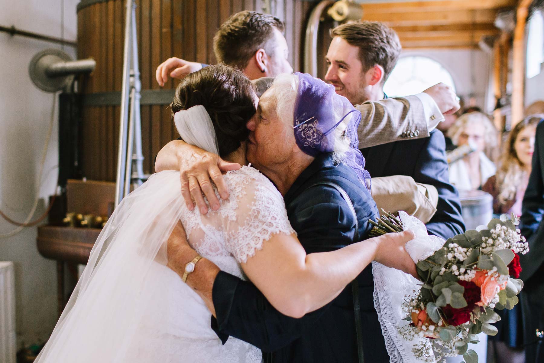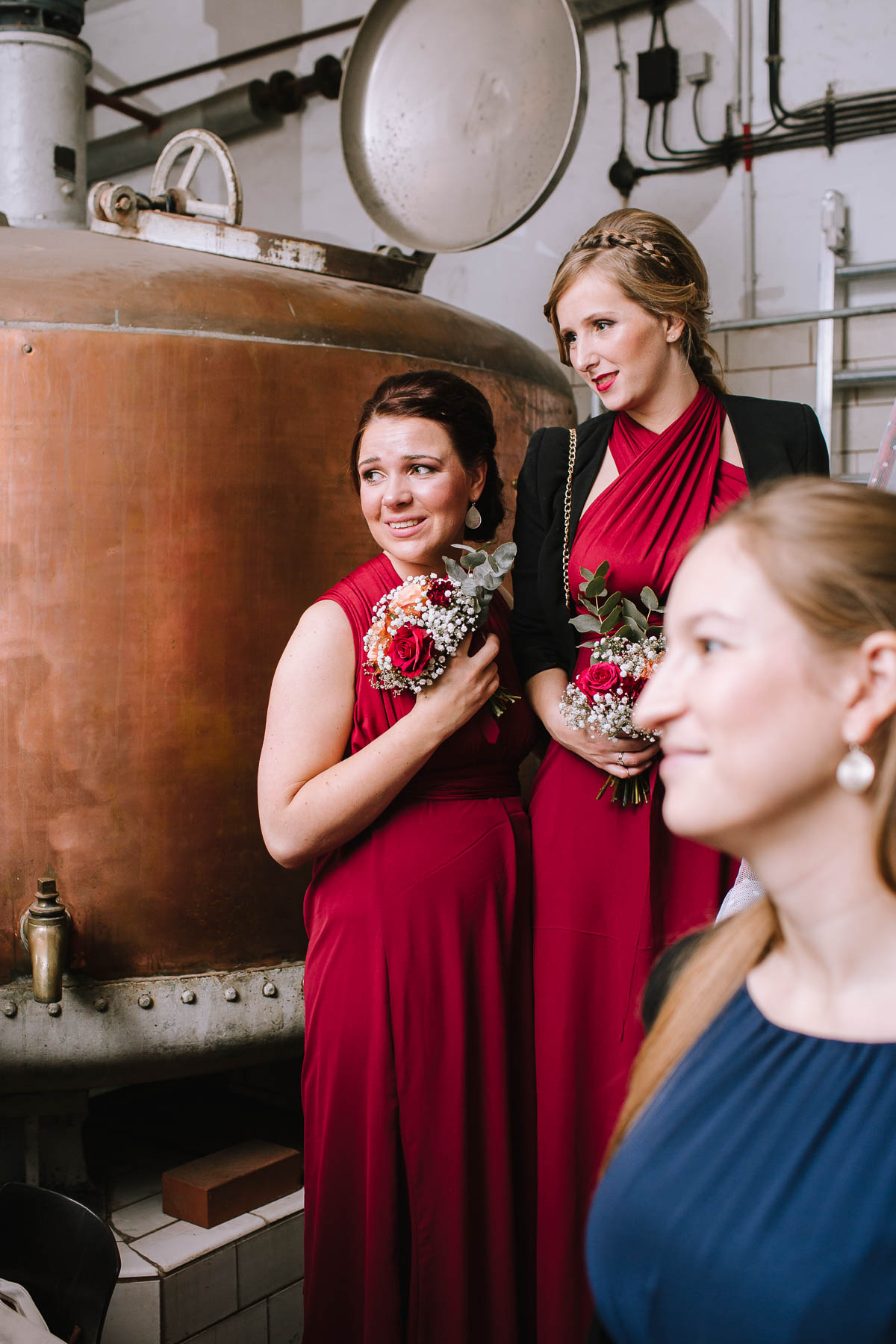 Schon damals wusste ich, dass das ein großartiger Tag werden würde und schon bevor es losging, begleitete ich die Vorbereitungen und half sogar an der einen oder anderen Stelle mit. Sie machte die gesamte Deko selber und ihr könnt mir glauben, dass es fast kein Teil der Hochzeitsdekoration so zu kaufen gab, wie es dann letzten Endes am Hochzeitstag in der historischen Brennerei zu sehen war. Denn bei der Hochzeitsdeko war ganz viel DIY angesagt und so viele Freundinnen haben Anna dabei unterstützt.