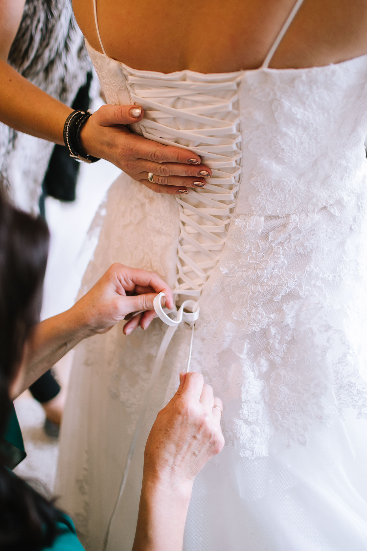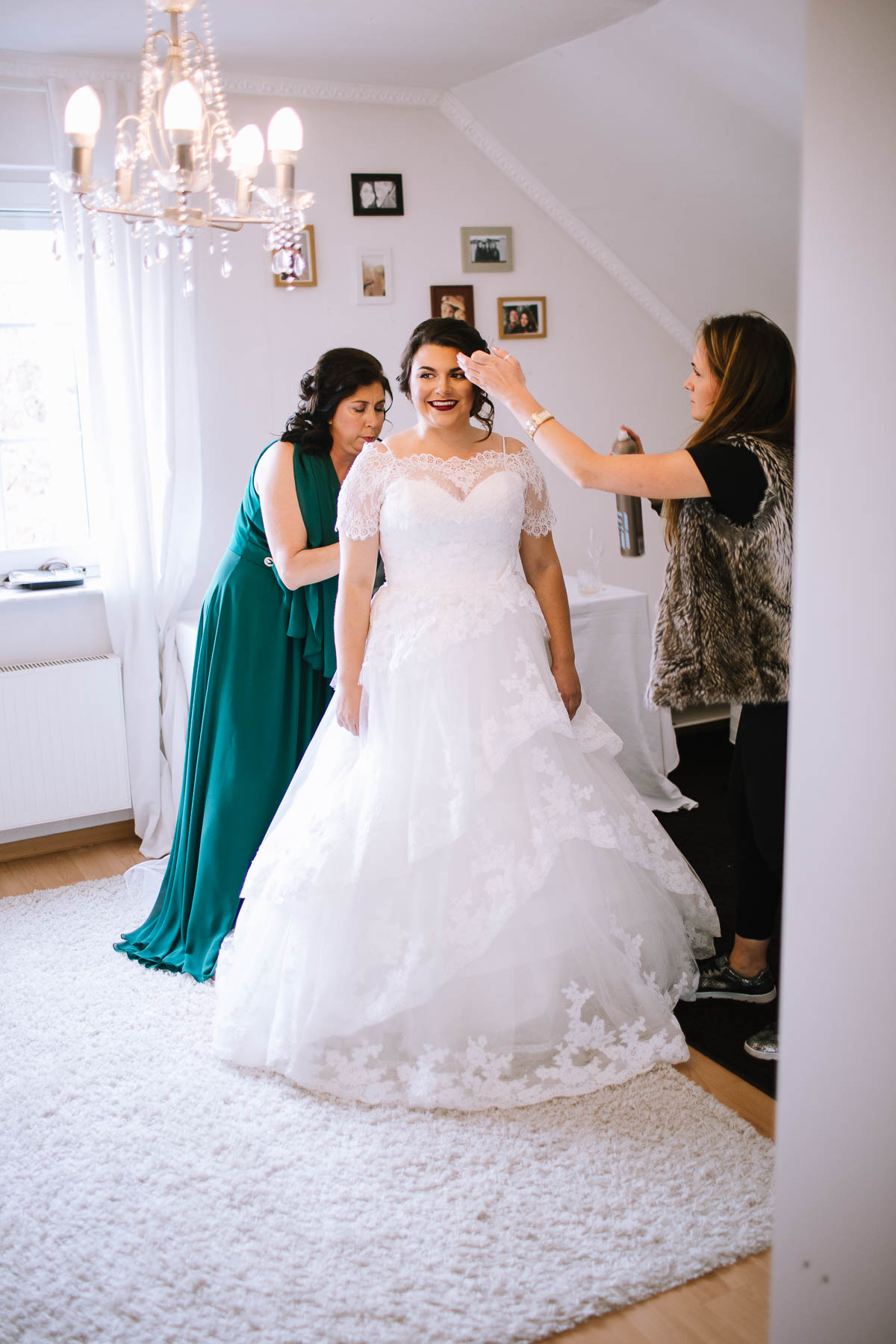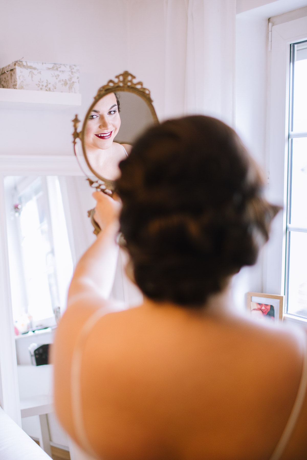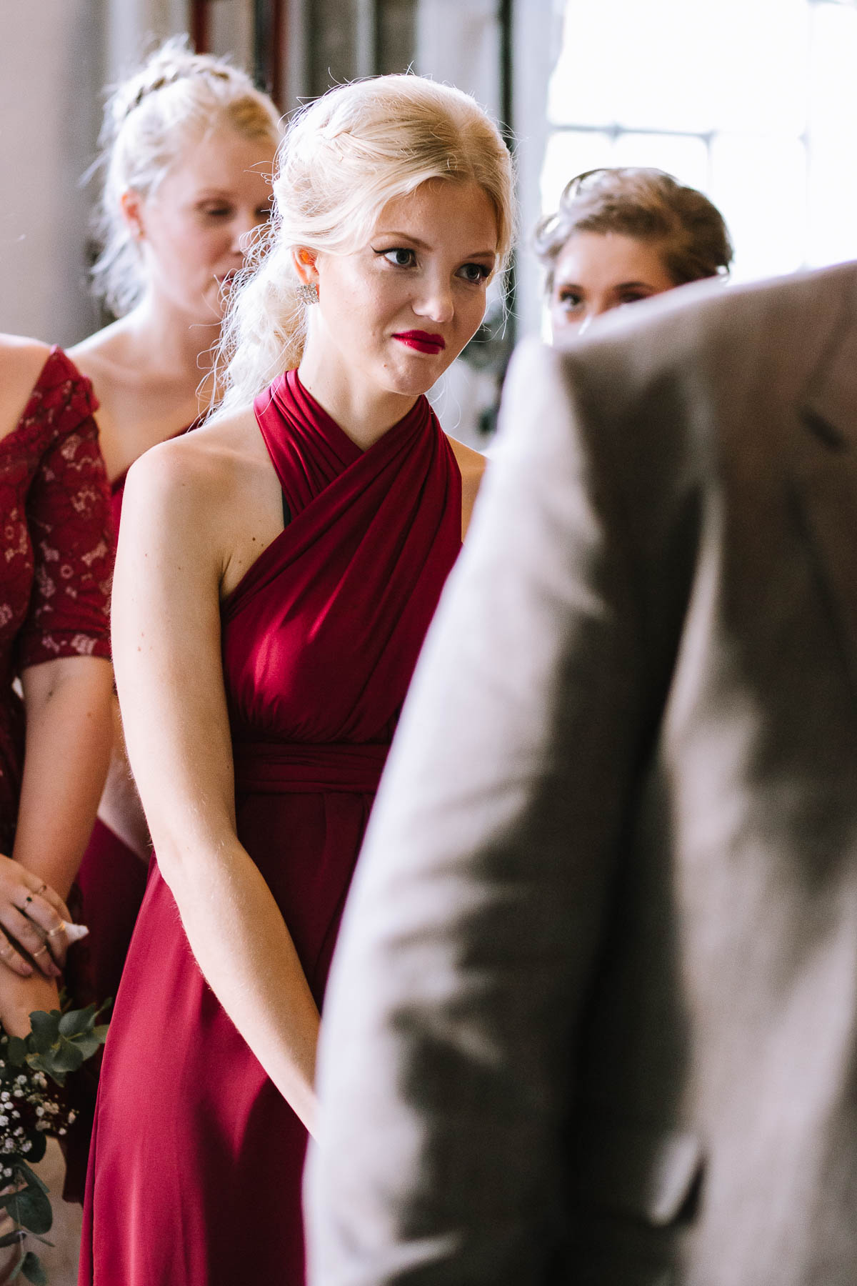 Wie in Annas Freundeskreis üblich, trugen auch alle Brautjungfern dieselben Kleiner, was wunderschön aussah. Natürlich ließen sie es sich nicht nehmen, Anna beim Getting Ready in ihrem Elternhaus zur Seite zu stehen. Es war ein ziemliches Gewusel, aber alle waren gut gelaunt und sorgten für eine herzliche, freudige Stimmung.