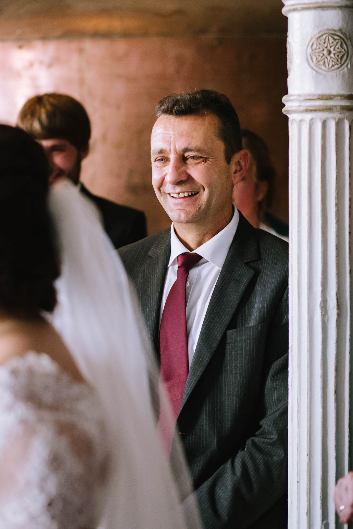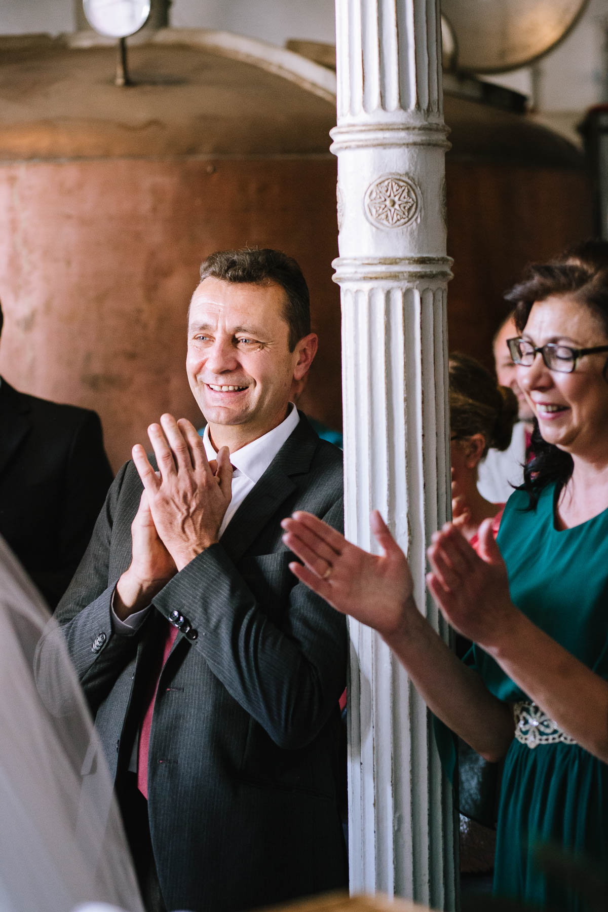 Emotional wurde es dann auch bei der freien Trauung, die Claudia von Facts and Feelings übernahm. Lukas, der schon im Braukeller mit den Gästen wartete, war super aufgeregt. Und dann kam Anna. Sie wurde ganz traditionell von ihrem Vater nach vorne geführt. Die freie Trauung war wunderschön und der ganze Tag ein voller Erfolg. Ebenso schön war das Brautpaarshooting, welches wir direkt an der Hochzeitslocation machen konnten.