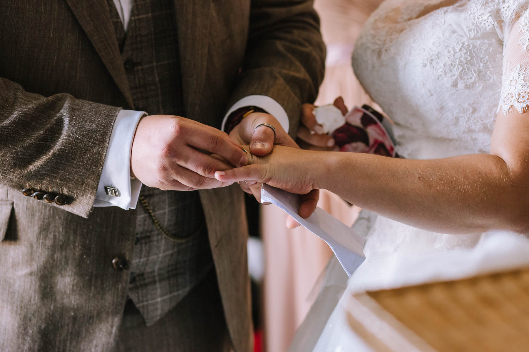 Emotional wurde es dann auch bei der freien Trauung, die Claudia von Facts and Feelings übernahm. Lukas, der schon im Braukeller mit den Gästen wartete, war super aufgeregt, als Anna ganz traditionell von ihrem Vater nach vorne zu ihm geführt wurde. Die freie Trauung war wunderschön und der ganze Tag ein voller Erfolg. Ebenso schön war das Brautpaarshooting, welches wir direkt an der Hochzeitslocation machen konnten.
