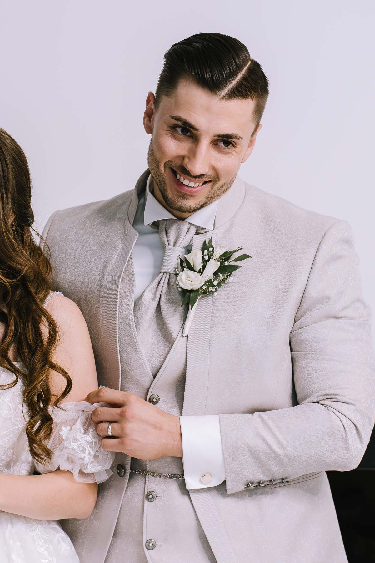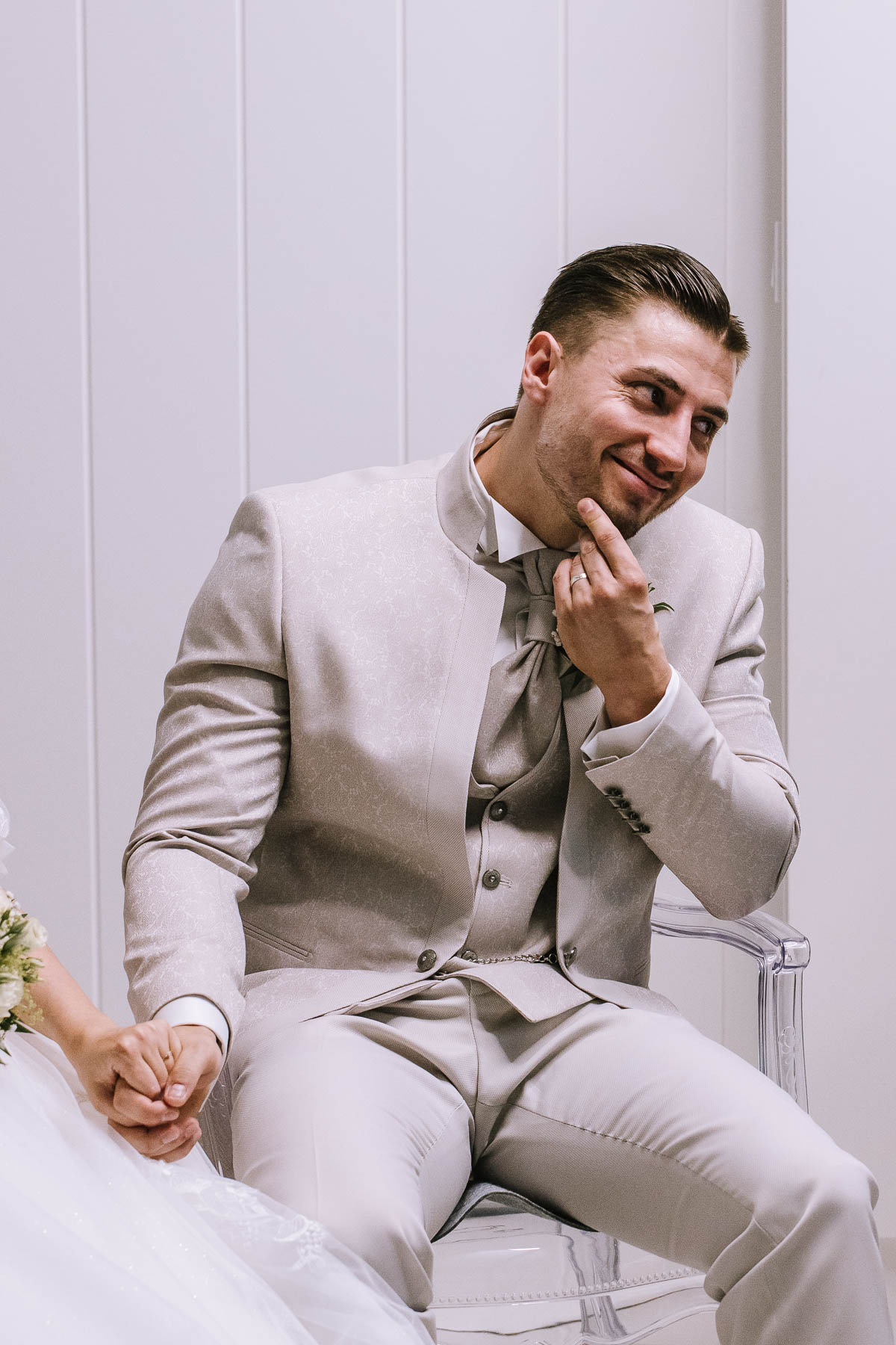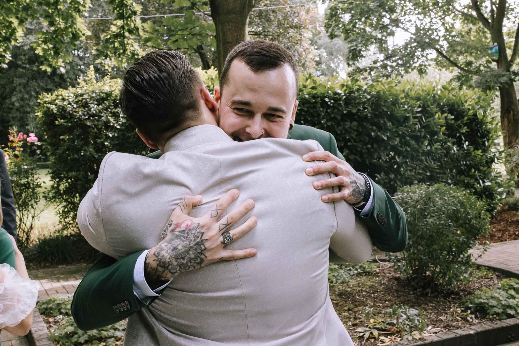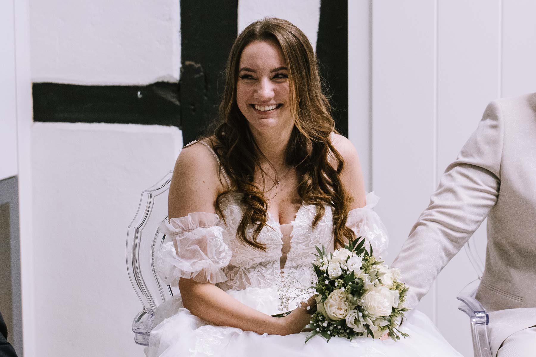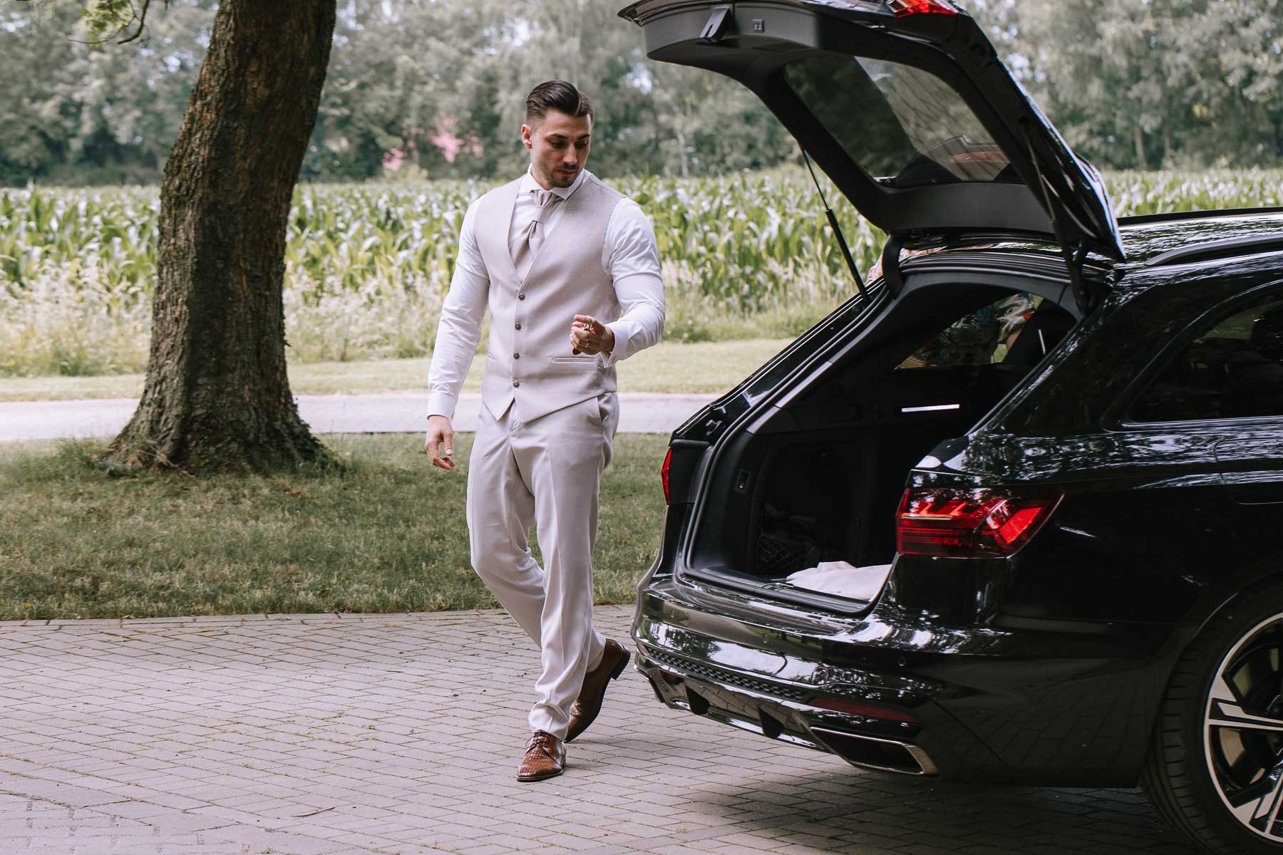 Es gibt Hochzeiten, die einfach besonders sind – und die von Julia und Henning gehört definitiv dazu. Ich hatte das große Vergnügen, die beiden an ihrem großen Tag zu begleiten, und ich kann euch gar nicht sagen, wie viel Liebe, Emotionen und persönliche Details in diesem Tag steckten. Wenn ich an die Freie Trauung auf dem Hof Middendorf in Bergkamen zurückdenke, wird mir immer noch ganz warm ums Herz. Was mich immer wieder begeistert, ist der First-Look-Moment. Dieser Augenblick, wenn sich das Brautpaar das erste Mal sieht – ganz privat, ohne Zuschauer, nur sie zwei. Normalerweise ist der Bräutigam eher der entspannte Part, aber bei Henning war es etwas anderes. Ich hatte ihn vorher als richtig gelassenen Typen kennengelernt, der total entspannt wirkte. Doch als Julia die Ecke betrat, konnte er seine Emotionen nicht mehr zurückhalten. Es war so ein schöner Moment, weil man gesehen hat, wie tief die beiden miteinander verbunden sind. Julia, die in ihrem atemberaubenden Kleid auf ihn zukam, und Henning, der plötzlich ganz der gefühlvolle Mann war, der hinter der „coolen“ Fassade steckt.