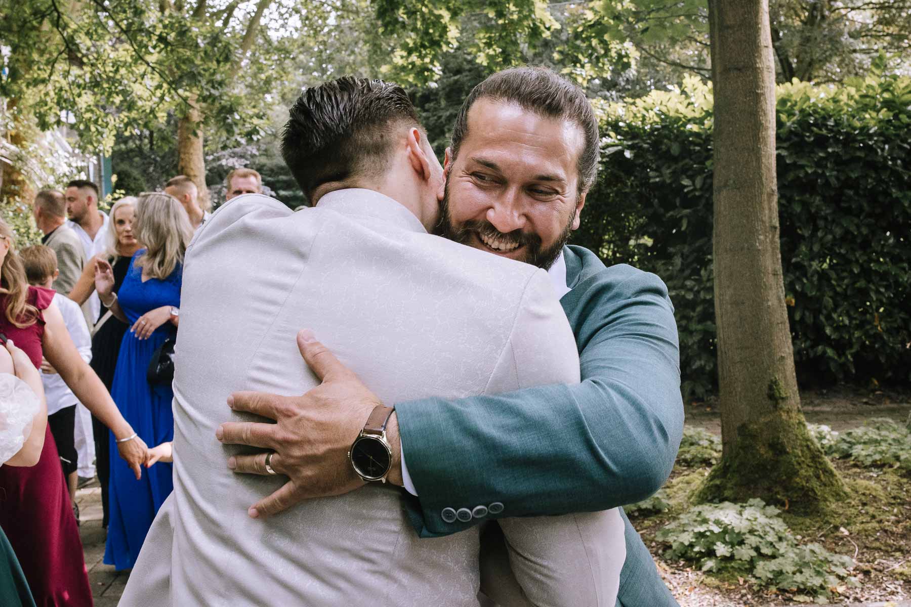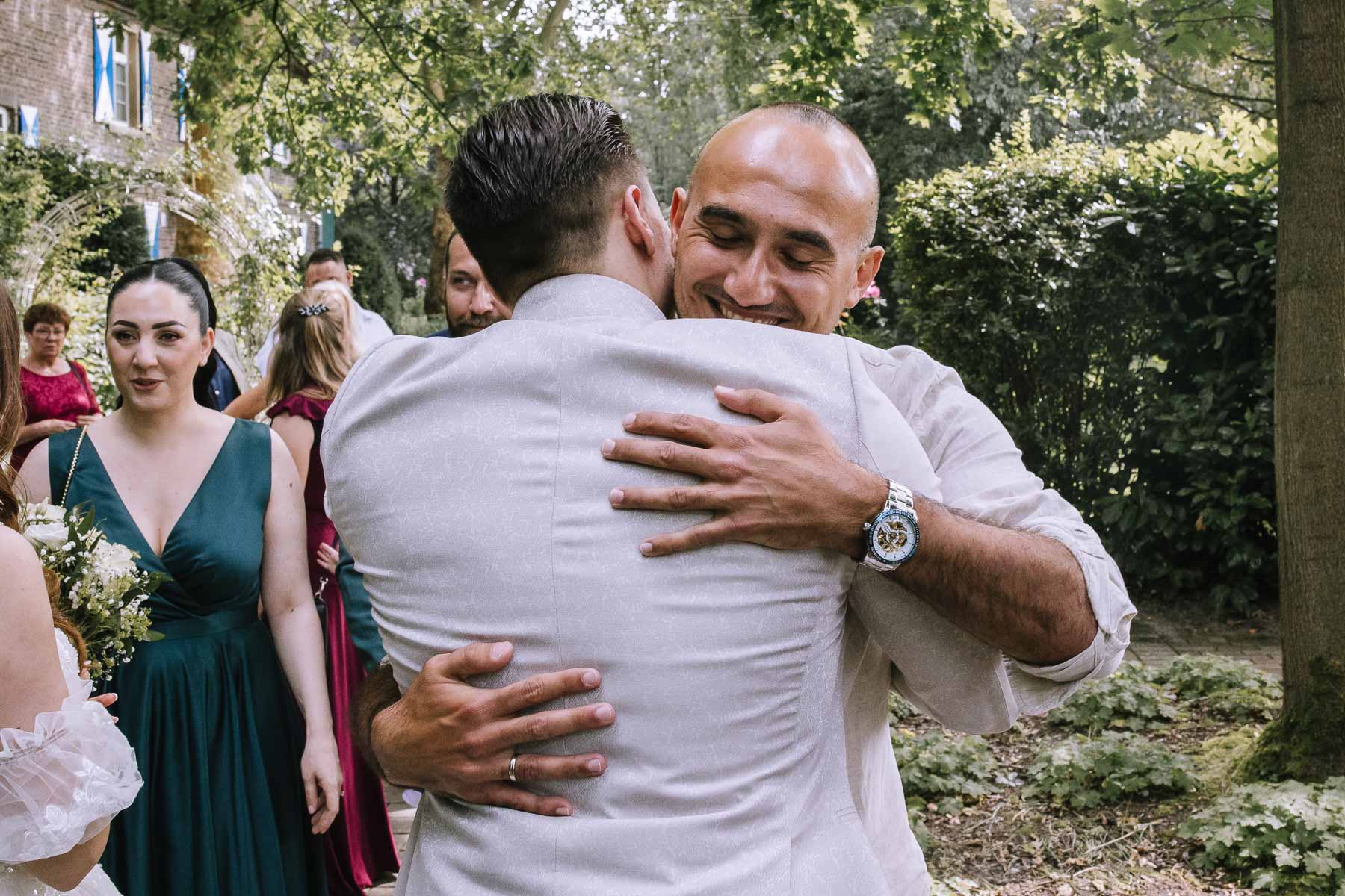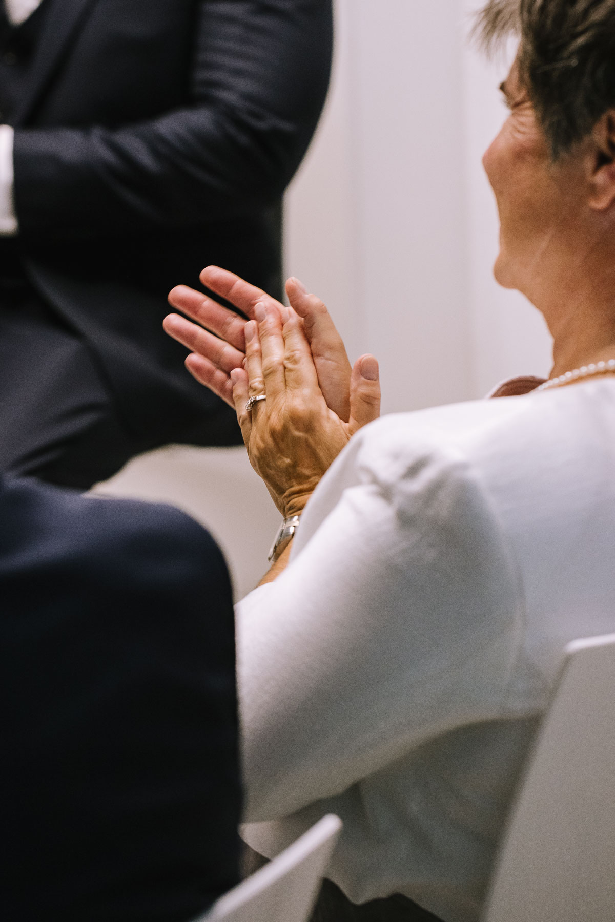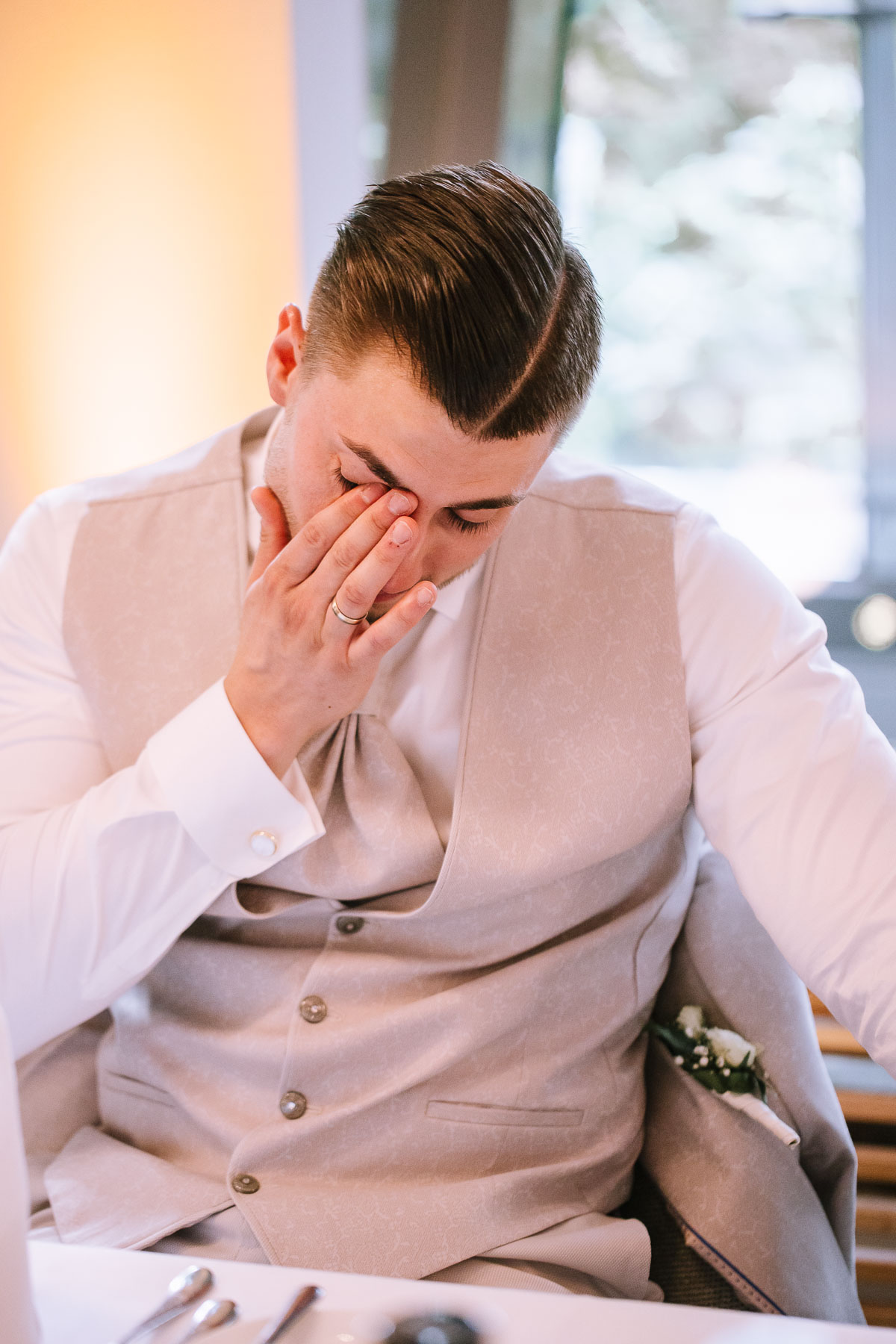Gänsehaut pur! Nach dieser emotionalen Begegnung ging es weiter zur Freien Trauung. Der Hof Middendorf war der perfekte Ort für eine solche Zeremonie – idyllisch, ruhig, und dennoch voller Leben. Es war eine ganz persönliche, intime Atmosphäre, in der Julia und Henning sich das Ja-Wort gaben. Direkt im Anschluss an die Trauung warteten die Gäste auf das frisch vermählte Paar, und was für ein Empfang! Ein Schwarz-Gelbes Spalier! Henning ist ein riesiger BVB-Fan, und das war natürlich ein absoluter Highlight-Moment. Die Begeisterung war spürbar, als Henning voller Stolz durch das Spalier ging – und ganz nebenbei, der Clou: Im Ring von Henning ist der Signal-Iduna-Park eingraviert. Eine wahre Hommage an sein Herz für Borussia Dortmund! Nach dieser emotionalen Zeremonie fuhren wir weiter ins Hotel am Kloster in Werne. Der moderne Saal im Dachgeschoss war wirklich ein Traum. Riesige Fensterfronten, die den Raum in ein wunderschönes, warmes Licht tauchten, und der Rooftop-Balkon, von dem man einen atemberaubenden Ausblick hatte – ein ganz besonderer Ort für eine Feier, die genauso einzigartig war wie das Brautpaar selbst. Als die Gäste nach und nach eintrafen, spielte der DJ schon moderne Bachata-Musik – eine so entspannte Stimmung, die sofort alle in Feierlaune versetzte. Ich habe die Freude und das Lachen der Gäste förmlich gespürt. Man konnte die Liebe und die Freude von Julia und Henning und ihrer Familie und Freunden in jedem Moment sehen. Aber nicht nur die Stimmung war besonders, sondern auch die Reden der Väter. Beide Väter hielten Worte, die das Herz berührten. Es waren nicht nur Geschichten über die Kindheit der beiden, sondern auch tiefgründige und sehr emotionale Gedanken über die Bedeutung von Familie, Liebe und Zusammenhalt. Ich habe wirklich nicht nur mit den Augen, sondern auch mit dem Herzen fotografiert – solche Momente darf man nicht verpassen. Wenn ich an Julia und Henning denke, dann sehe ich eine Hochzeit voller Emotionen, persönlicher Details und einer unglaublichen Stimmung. Jeder Moment war einzigartig, und ich bin so dankbar, dass ich Teil dieses besonderen Tages sein durfte. Für mich als Hochzeitsfotografin gibt es kaum etwas Schöneres, als die Liebe zwischen zwei Menschen auf solche Weise festzuhalten – die zarten, emotionalen Momente genauso wie die ausgelassenen, fröhlichen Augenblicke. Ich wünsche Julia und Henning alles Liebe und freue mich, diese wunderschönen Erinnerungen für sie auf Bildern festgehalten zu haben!