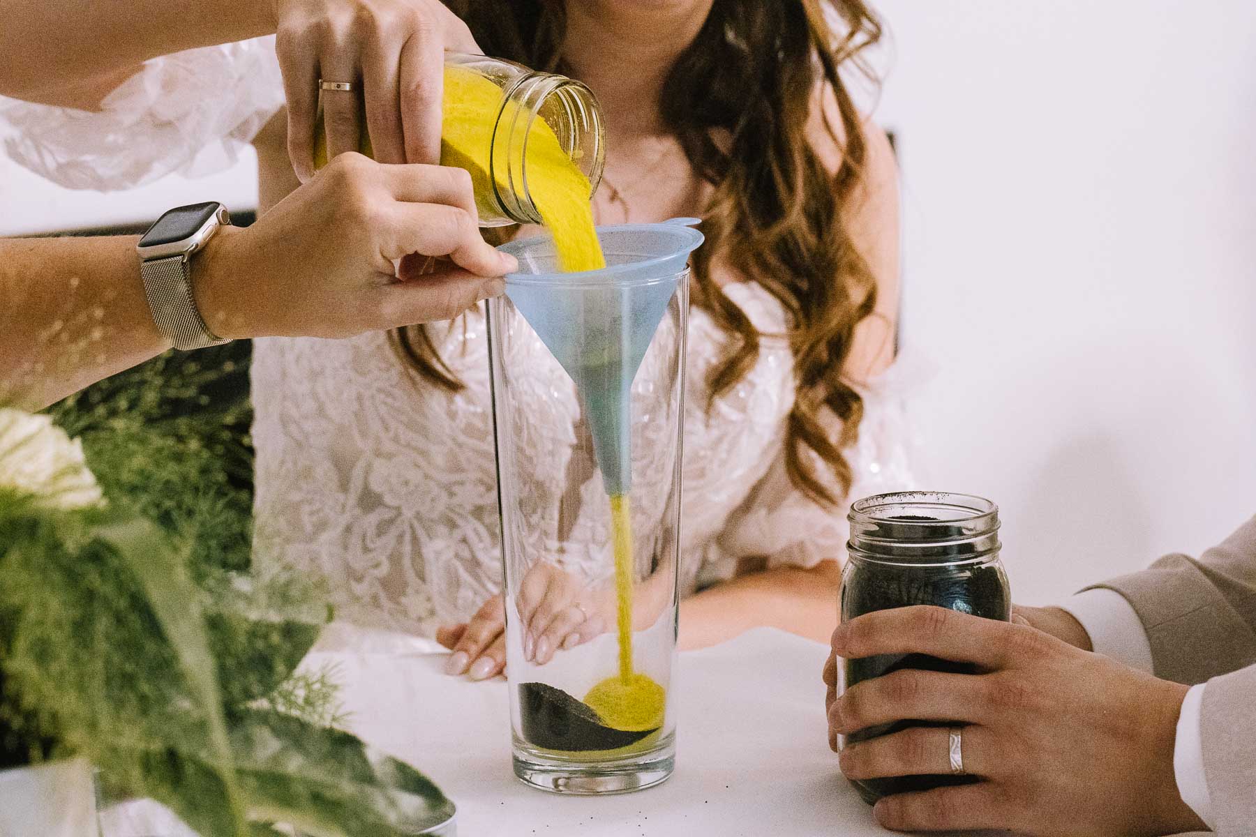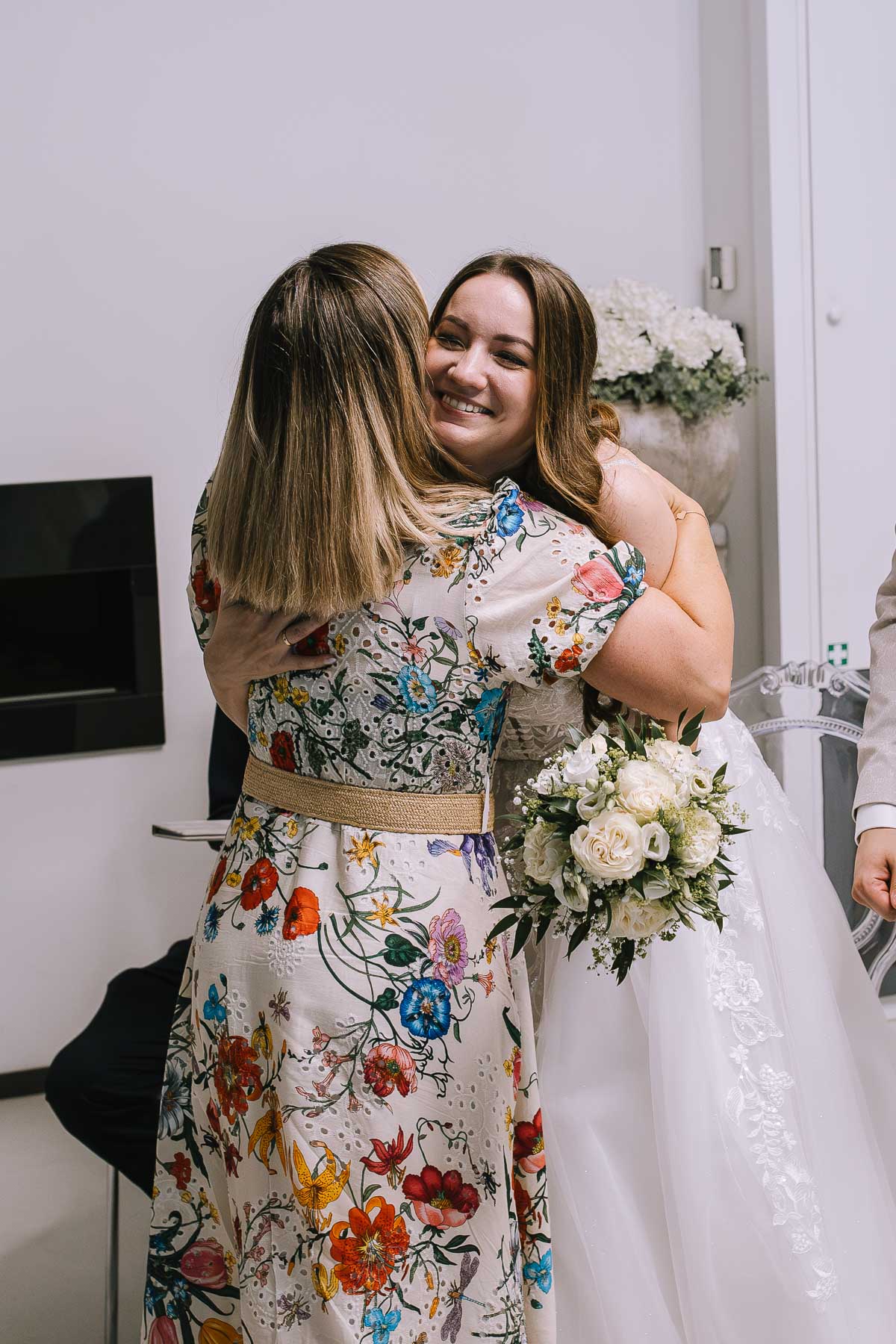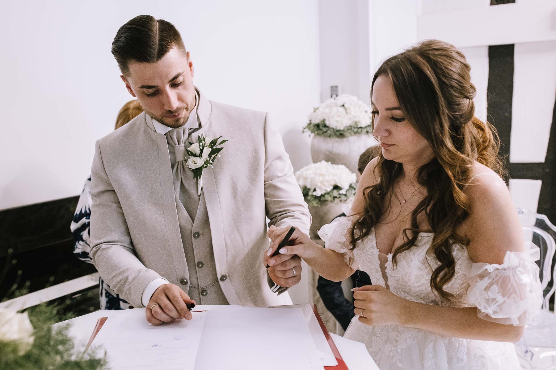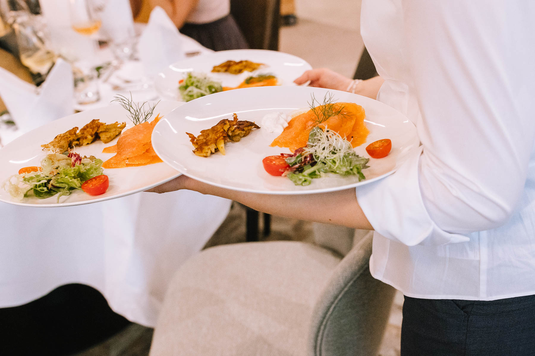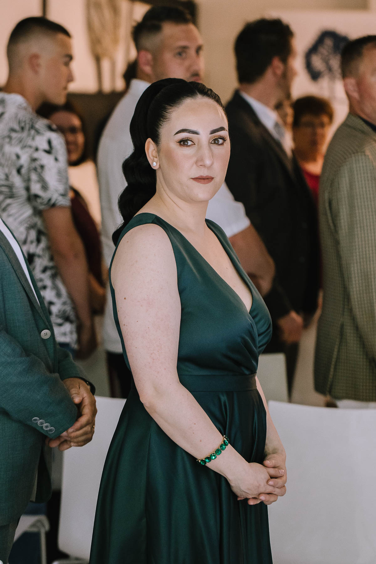 Gänsehaut pur! Nach dieser emotionalen Begegnung ging es weiter zur Freien Trauung. Der Hof Middendorf war der perfekte Ort für eine solche Zeremonie – idyllisch, ruhig, und dennoch voller Leben. Es war eine ganz persönliche, intime Atmosphäre, in der Julia und Henning sich das Ja-Wort gaben. Direkt im Anschluss an die Trauung warteten die Gäste auf das frisch vermählte Paar, und was für ein Empfang! Ein Schwarz-Gelbes Spalier! Henning ist ein riesiger BVB-Fan, und das war natürlich ein absoluter Highlight-Moment. Die Begeisterung war spürbar, als Henning voller Stolz durch das Spalier ging – und ganz nebenbei, der Clou: Im Ring von Henning ist der Signal-Iduna-Park eingraviert. Eine wahre Hommage an sein Herz für Borussia Dortmund! Nach dieser emotionalen Zeremonie fuhren wir weiter ins Hotel am Kloster in Werne. Der moderne Saal im Dachgeschoss war wirklich ein Traum. Riesige Fensterfronten, die den Raum in ein wunderschönes, warmes Licht tauchten, und der Rooftop-Balkon, von dem man einen atemberaubenden Ausblick hatte – ein ganz besonderer Ort für eine Feier, die genauso einzigartig war wie das Brautpaar selbst. Als die Gäste nach und nach eintrafen, spielte der DJ schon moderne Bachata-Musik – eine so entspannte Stimmung, die sofort alle in Feierlaune versetzte. Ich habe die Freude und das Lachen der Gäste förmlich gespürt. Man konnte die Liebe und die Freude von Julia und Henning und ihrer Familie und Freunden in jedem Moment sehen. Aber nicht nur die Stimmung war besonders, sondern auch die Reden der Väter. Beide Väter hielten Worte, die das Herz berührten. Es waren nicht nur Geschichten über die Kindheit der beiden, sondern auch tiefgründige und sehr emotionale Gedanken über die Bedeutung von Familie, Liebe und Zusammenhalt. Ich habe wirklich nicht nur mit den Augen, sondern auch mit dem Herzen fotografiert – solche Momente darf man nicht verpassen. Wenn ich an Julia und Henning denke, dann sehe ich eine Hochzeit voller Emotionen, persönlicher Details und einer unglaublichen Stimmung. Jeder Moment war einzigartig, und ich bin so dankbar, dass ich Teil dieses besonderen Tages sein durfte. Für mich als Hochzeitsfotografin gibt es kaum etwas Schöneres, als die Liebe zwischen zwei Menschen auf solche Weise festzuhalten – die zarten, emotionalen Momente genauso wie die ausgelassenen, fröhlichen Augenblicke. Ich wünsche Julia und Henning alles Liebe und freue mich, diese wunderschönen Erinnerungen für sie auf Bildern festgehalten zu haben!