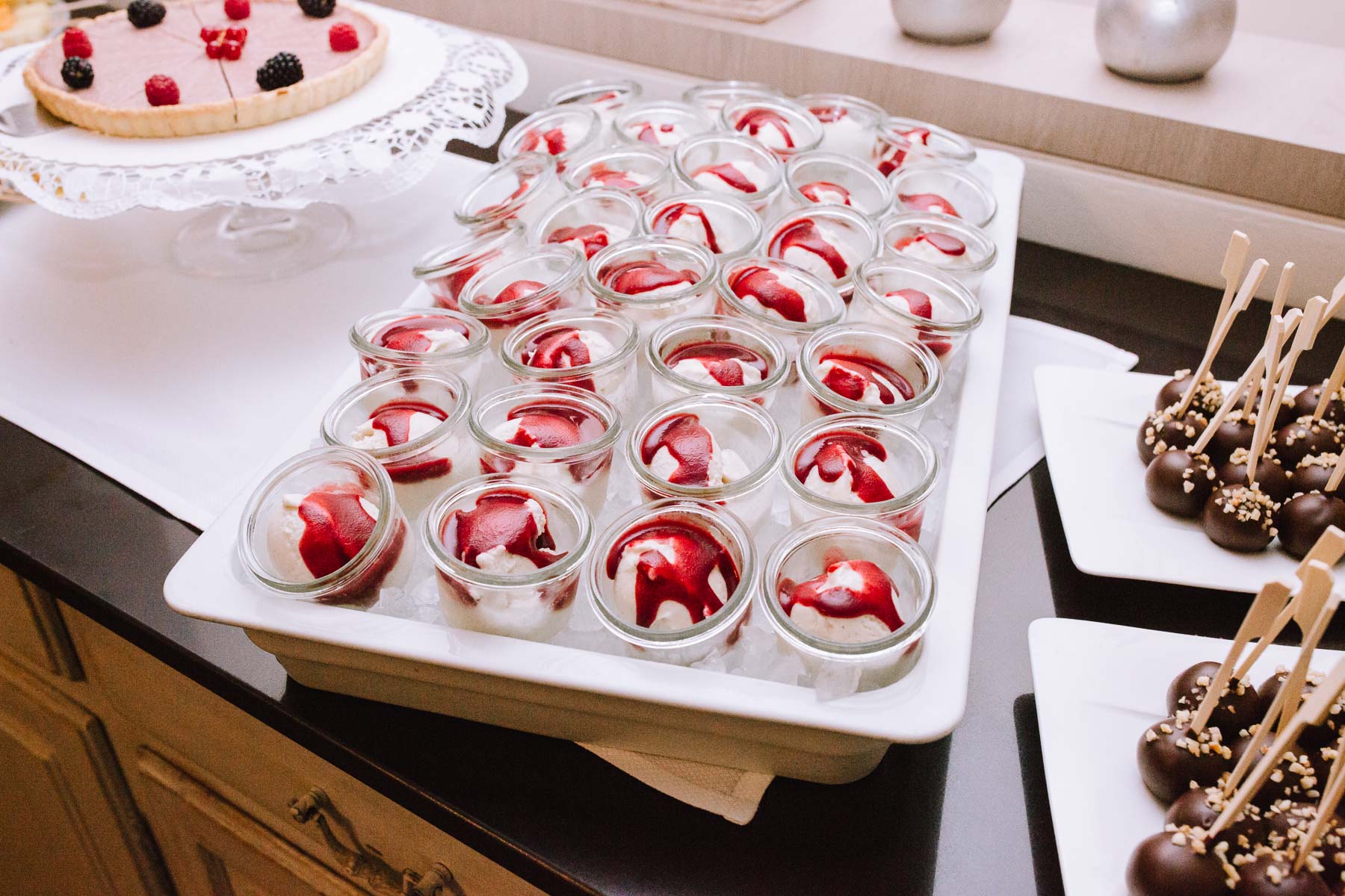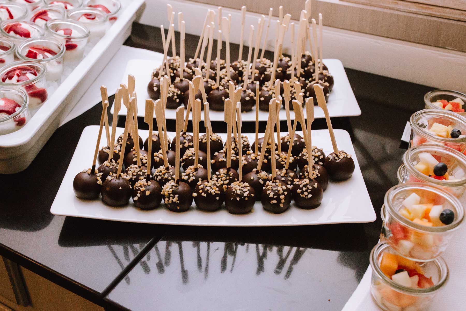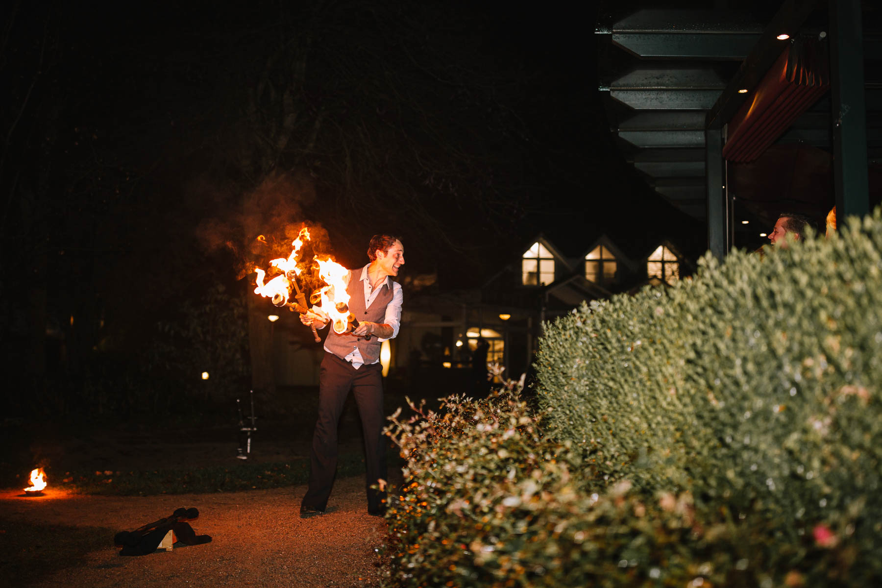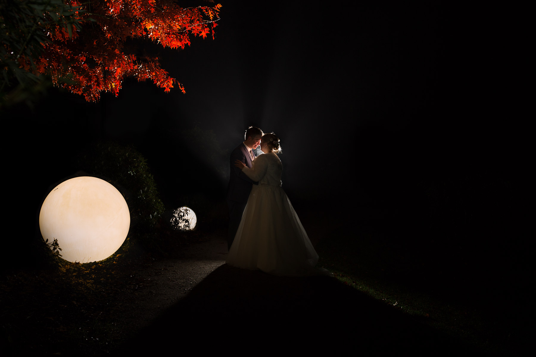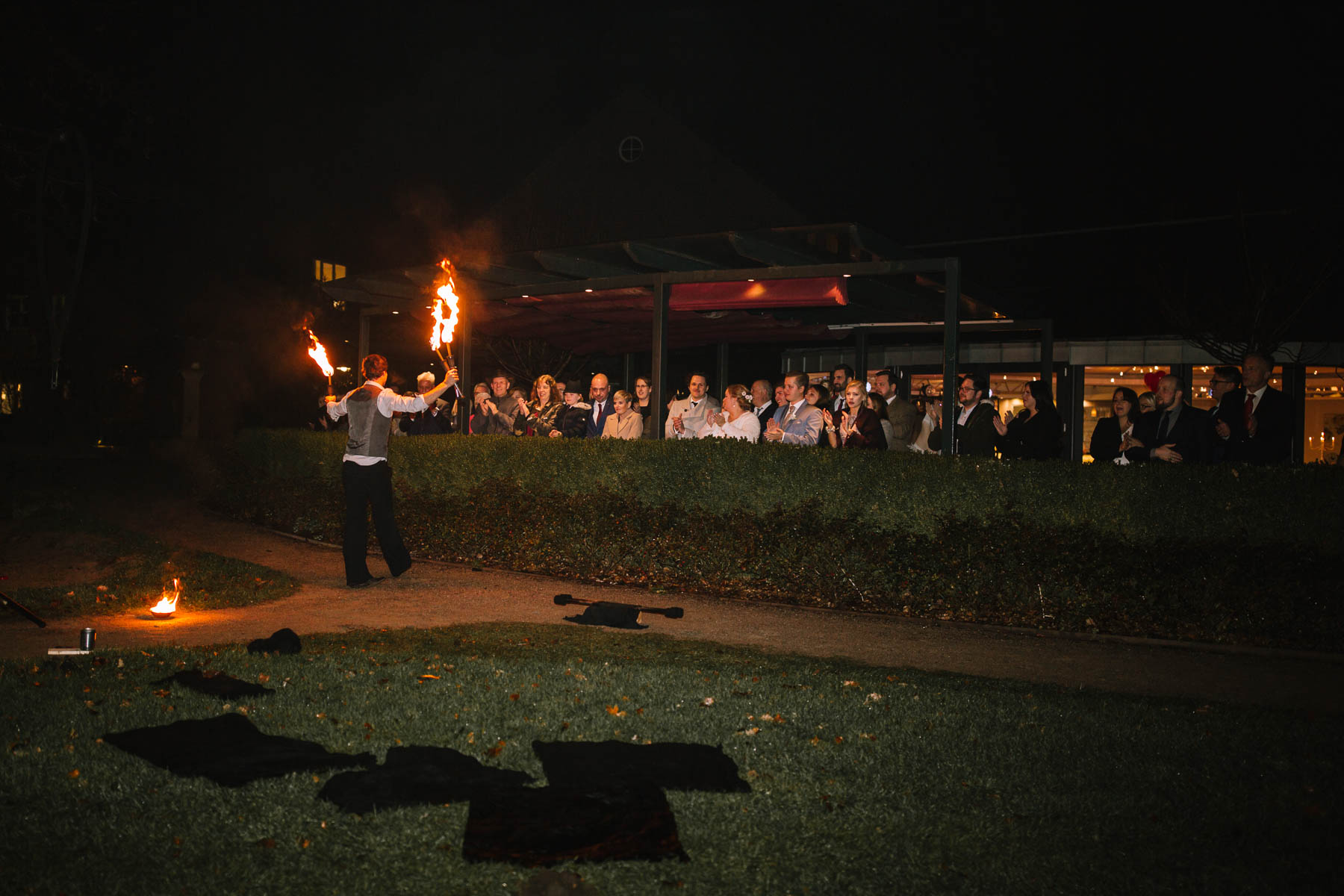 Währenddessen sahen wir schon durch das Fenster, dass Sascha sich bereits auf den Weg zur Ernst-August-Hütte gemacht hatte, wo der First Look stattfinden sollte. Leider herrschte draußen ein ungemütlicher Mix aus Nieselregen, Schneeregen und Nebel. Aus diesem Grund haben wir das Shooting nach drinnen verlegt. Und dann war es auch soweit: bereits auf dem Weg, den wir mit transparenten Regenschirmen beschritten, stieg die Spannung immer mehr. Angekommen in der Hütte war es dann soweit und eines kann ich euch sagen: es war ein First Look, wie er im Buche steht. Das Aufeinandertreffen war sooo emotional – einfach nur wunderschön. Und auch die Trauung im Confideum des Landhotels Voshövel war voller aufregender und emotionaler Momente. Nach der Trauung gingen wir dann in den Pavillon, wo die Feier stattfand. Nach dem köstlichen Essen mit Hochzeitstorte als Dessert, Feuershow, einem perfekt einstudierten Hochzeitstanz und einem Late-Night-Shooting, ging es für mich dann zurück ins Sauerland. Vielen Dank Anna und Sascha für die vielen tollen Momente!