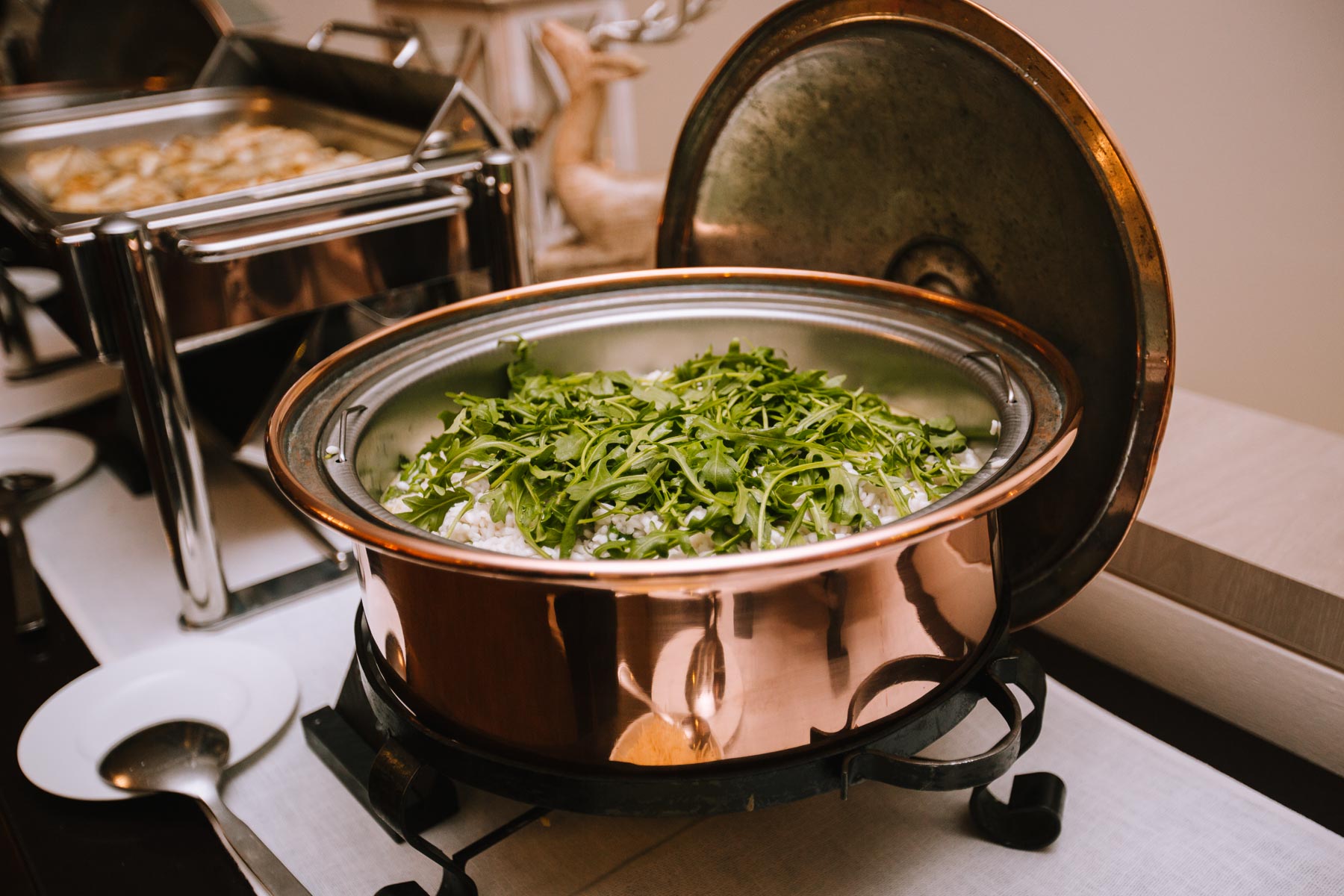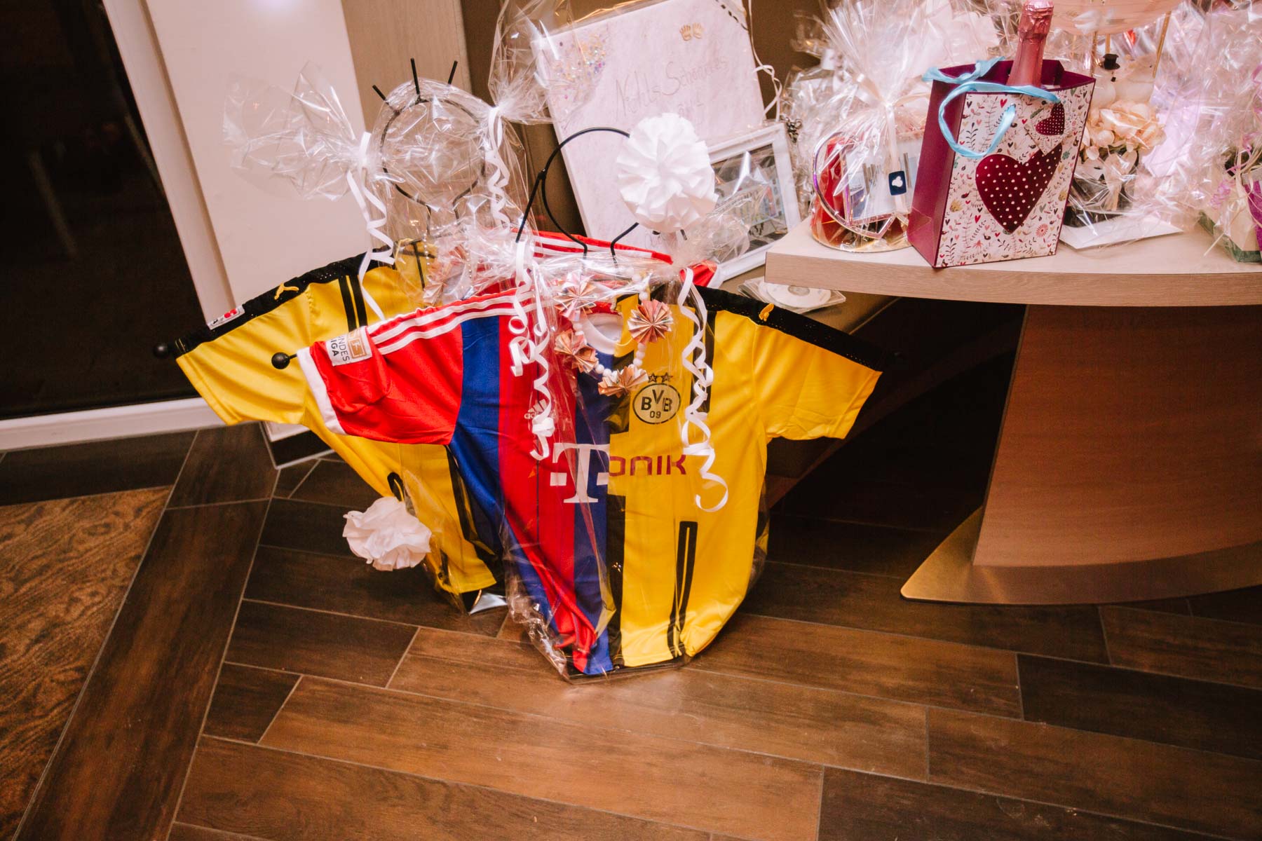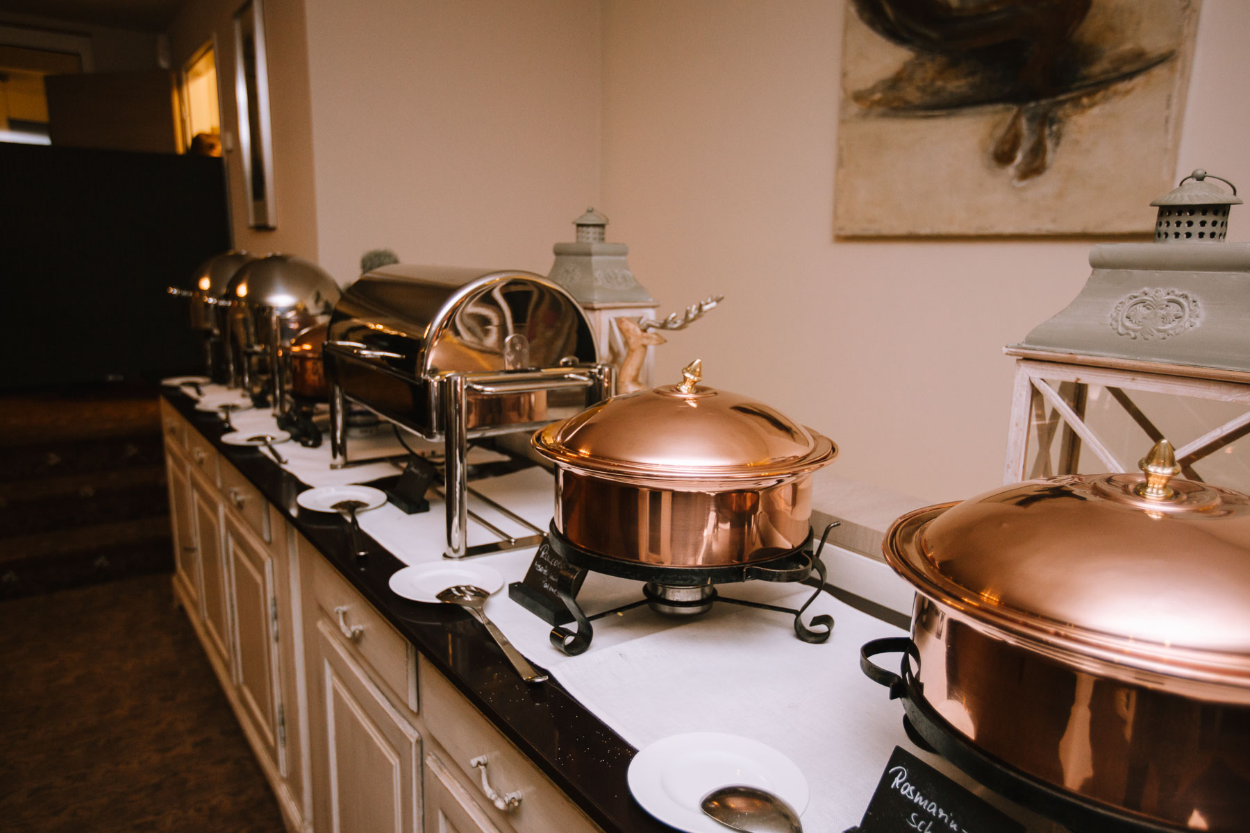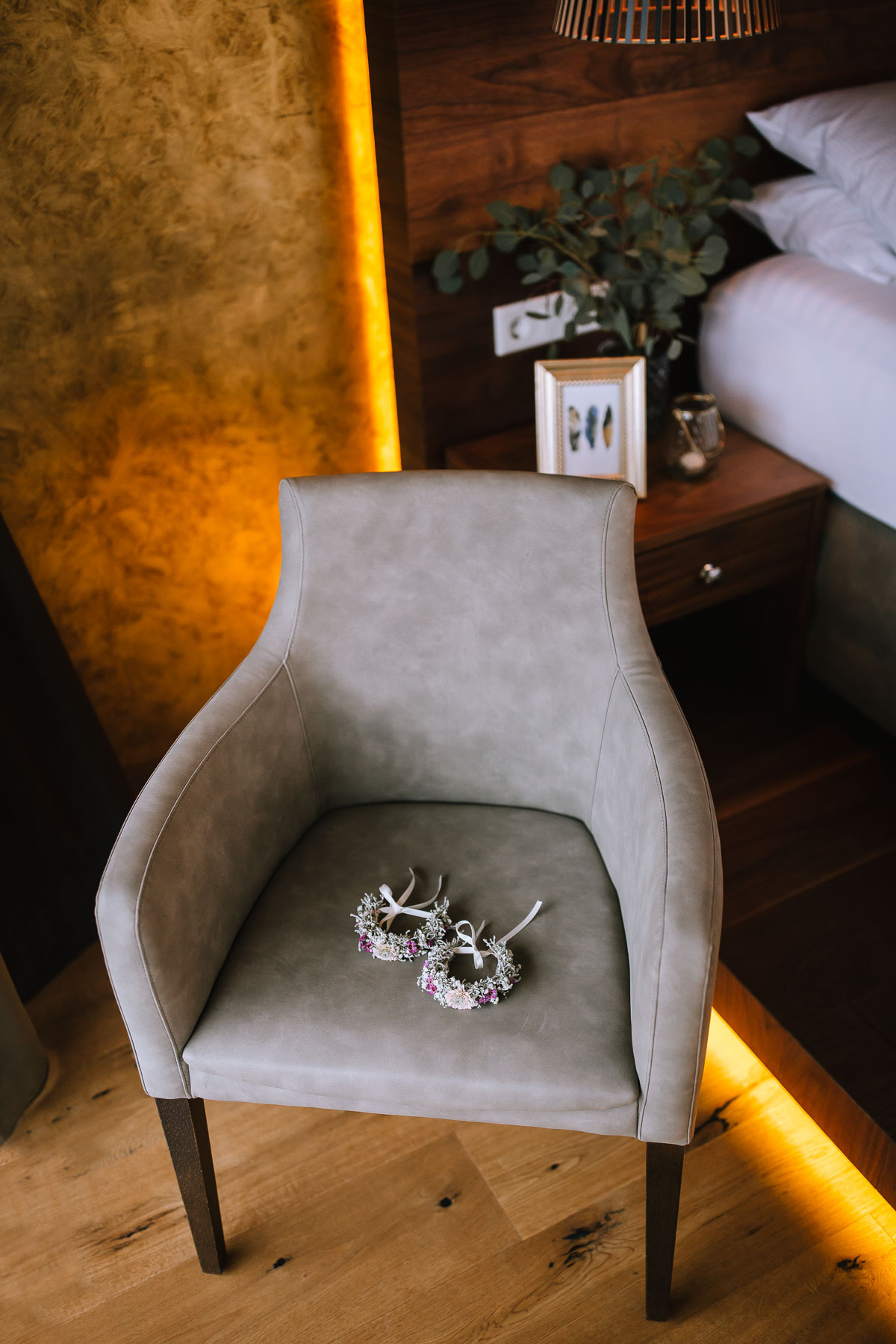 Im Herbst lernte ich Anna und Sascha kennen. Wir trafen uns im Café im Landhotel Voshövel zum Kuchenessen und von der ersten Minute an war klar, dass wir uns super verstehen würden. Zum ersten Mal habe ich Menschen kennengelernt, die noch öfter Lachen als ich selbst und das war mir natürlich sofort sehr sympathisch. Das Leben ist schießlich ernst genug, als dass man zu VIEL lachen könnte. Nachdem wir den Tagesablauf durchgeplant hatten, machen wir noch ein kleines Verlobungsshooting direkt am Landhotel Voshövel, dessen Gelände so weitläufig ist, dass es zahlreiche wunderschöne Ecken zum Fotografieren gibt. Auch das Shooting hat super viel Spaß gemacht und ließ die Vorfreude noch ein Stück anwachsen. Im Jahr darauf, im November, war es dann soweit. Früh morgens ging es los an den Niederrhein und dort angekommen, wurde ich direkt herzlich von Sascha und seiner Schwester im Hotelzimmer empfangen. Nach dem Getting Ready des Bräutigams ging ich ins Zimmer 229 – die Champagner-Suite. Dort warteten Anna und ihre Trauzeugin bereits auf mich. An diesem Tag lernte ich auch Larissa kennen, die ich später noch öfters im Landhotel Voshövel traf und die Anna ein wunderschönes Styling zauberte. Nachdem Haare und Make-Up fertig waren, folgte das Ankleiden.