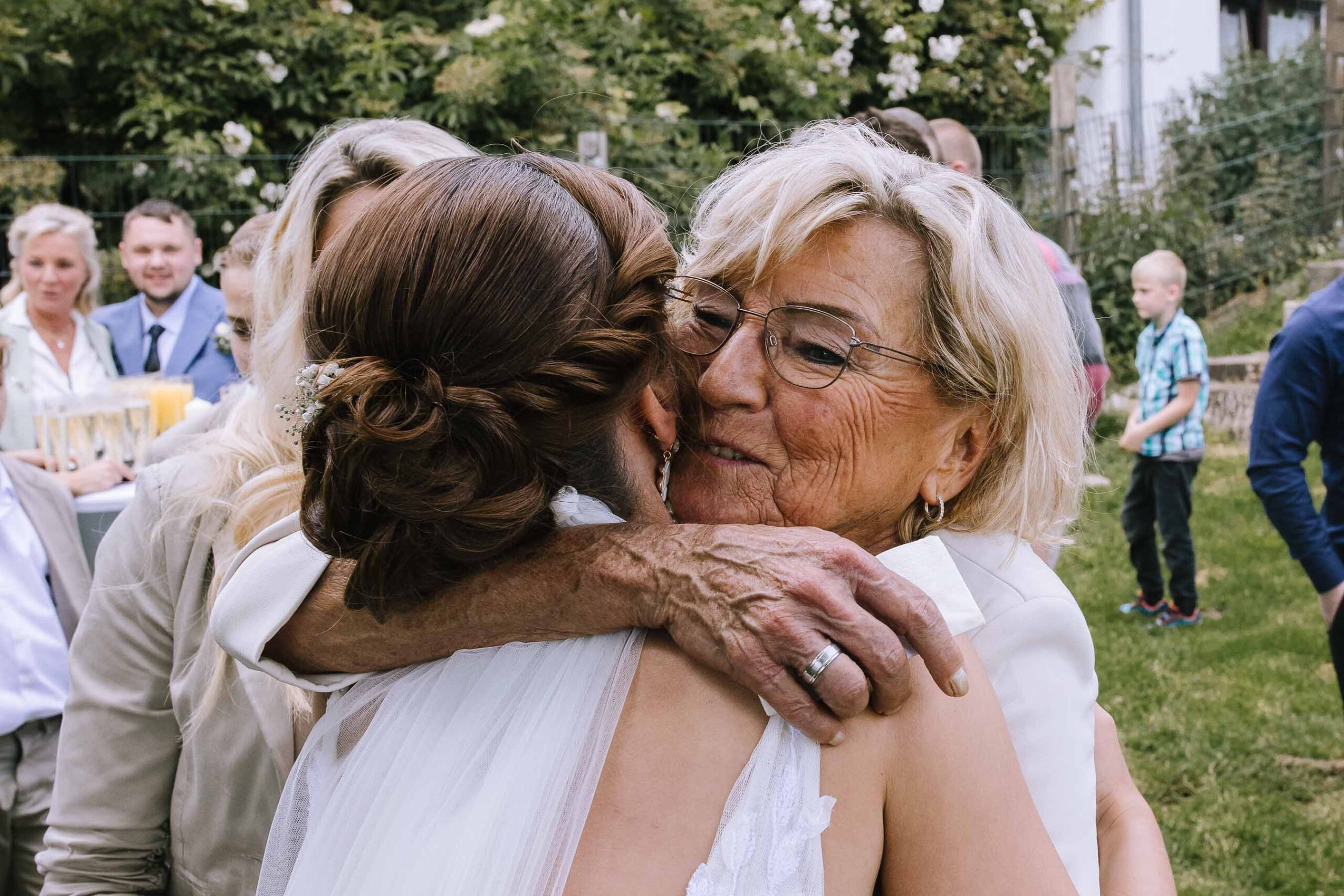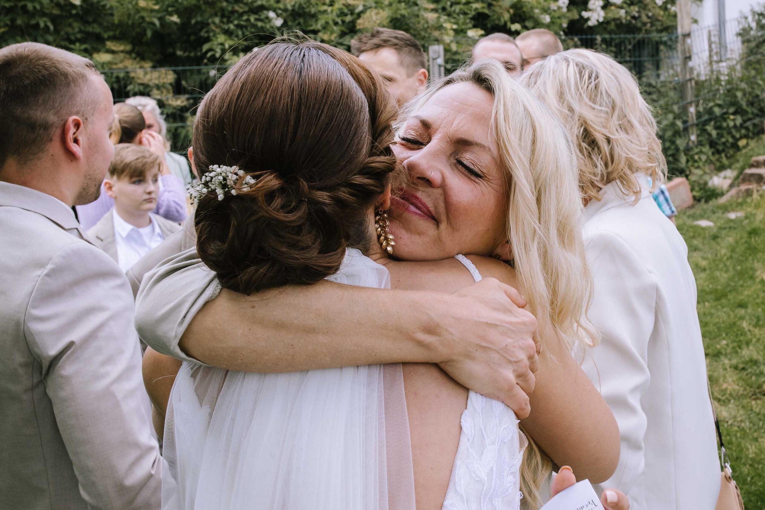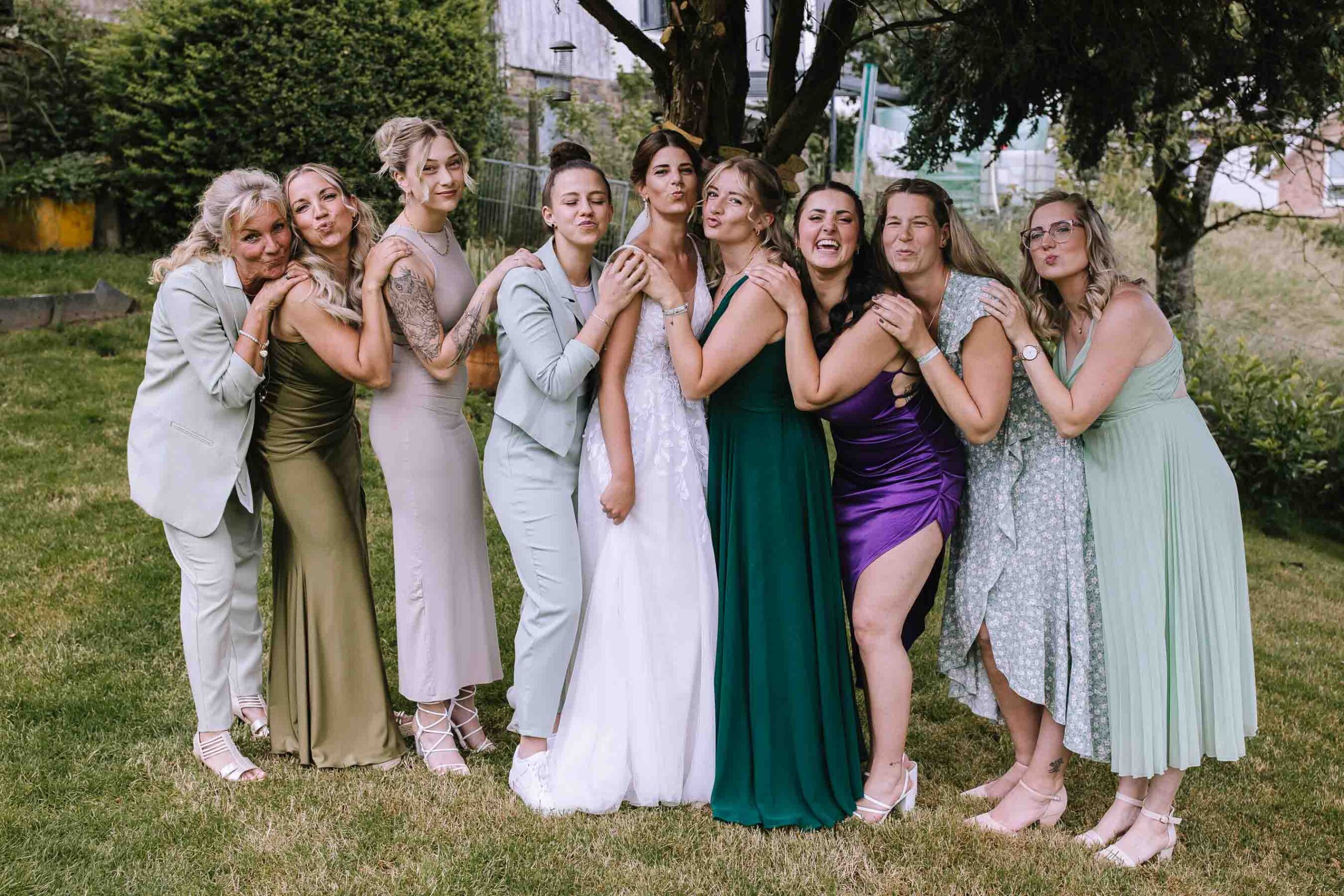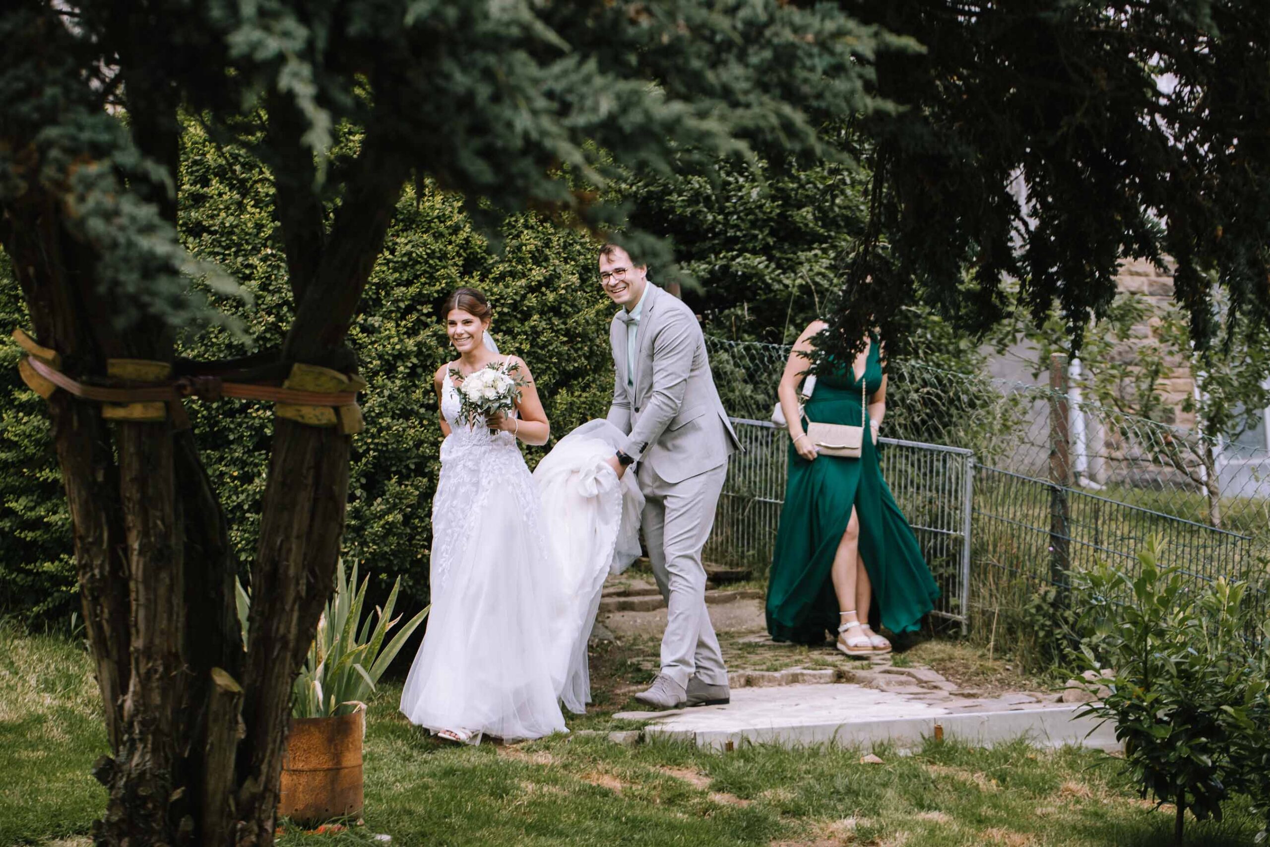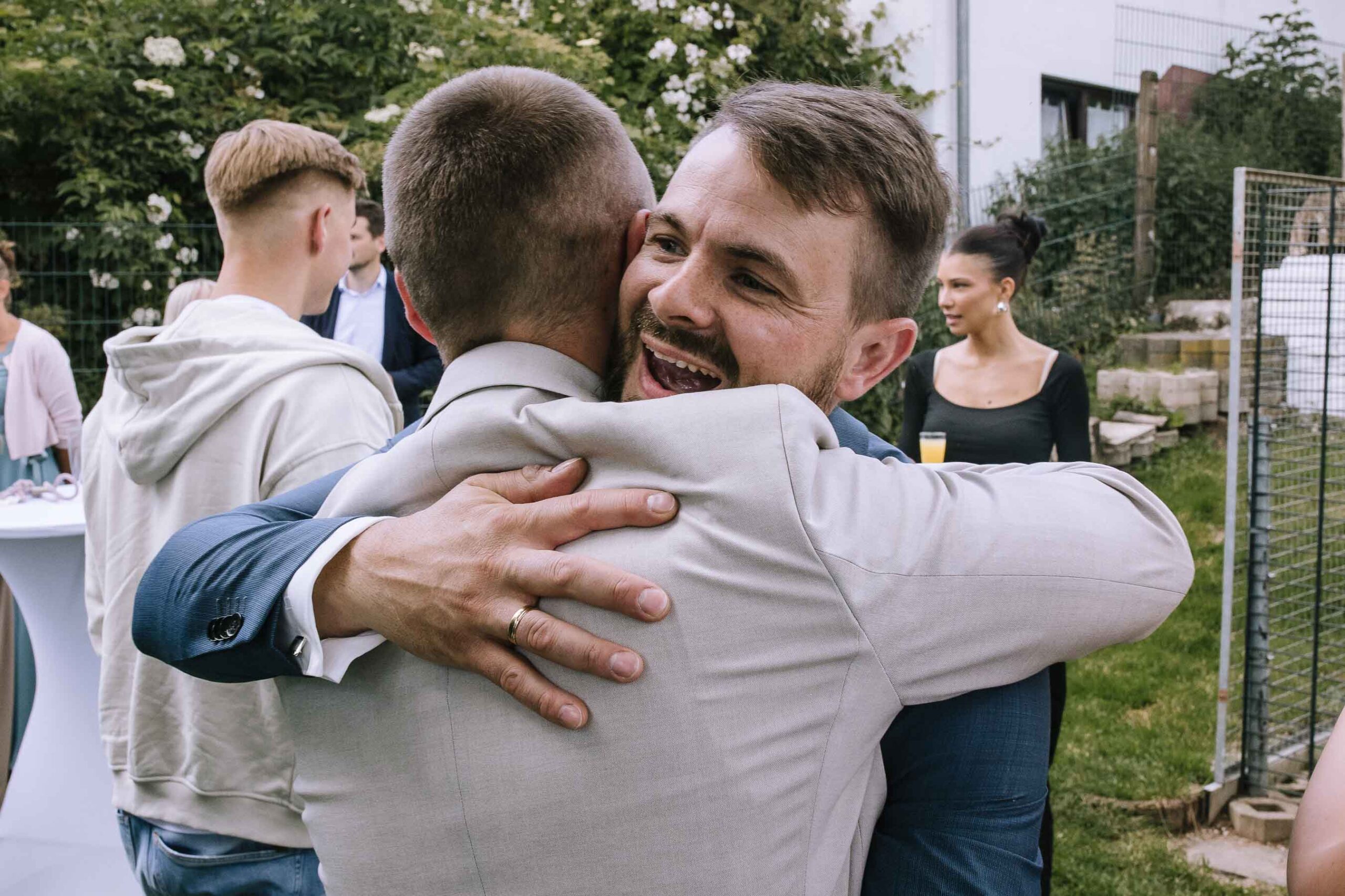 Kulisse festhalten. Wir machten das Shooting auf einem Wiesenhügel, auf dessen Spitze eine kleine Kapelle stand. Schon von weitem sahen wir das Auto mit Mary ankommen, und als sie ausstieg, war es ein unglaublich glücklicher und herzlicher Moment. Es war ein besonderer Augenblick, als Justin seine Braut zum ersten Mal in ihrem Hochzeitskleid sah – und der Moment war so voller Liebe und Emotionen, dass ich ihn mit meiner Kamera einfangen konnte. Die freie Trauung fand direkt am Ponystall statt und war genauso schön, wie wir es uns alle erhofft hatten. Sie war persönlich, fröhlich und voller Wärme. Als besonderes Ritual pflanzten Mary und Justin zusammen einen kleinen Olivenbaum – ein Symbol für ihre wachsende Liebe. Dieses schöne Ritual fügte der Zeremonie noch mehr Bedeutung und Tiefe hinzu. Nach der Trauung ging es zum Sektempfang in den Garten, wo die Gäste das frisch vermählte Paar mit Glückwünschen und Umarmungen empfingen. Es war eine lockere, fröhliche Atmosphäre, die sich auch in den Gruppenfotos widerspiegelte, die wir in der wunderschönen Gartenlandschaft machten. Die natürlichen Farben des Gartens und die entspannte Stimmung machten die Bilder lebendig und authentisch – genau das, was Mary und Justin sich gewünscht hatten. Es war mir eine Ehre, Mary und Justin an diesem besonderen Tag zu begleiten. Als Hochzeitsfotografin in Lindlar hatte ich das Glück, ihre Geschichte mit all ihren schönen Momenten festzuhalten. Vom First-Look über die Trauung bis hin zum Sektempfang – es war ein Tag voller Glück und Liebe, der für immer in meinen Bildern weiterlebt. Ich wünsche den beiden alles Gute für ihren gemeinsamen Weg!