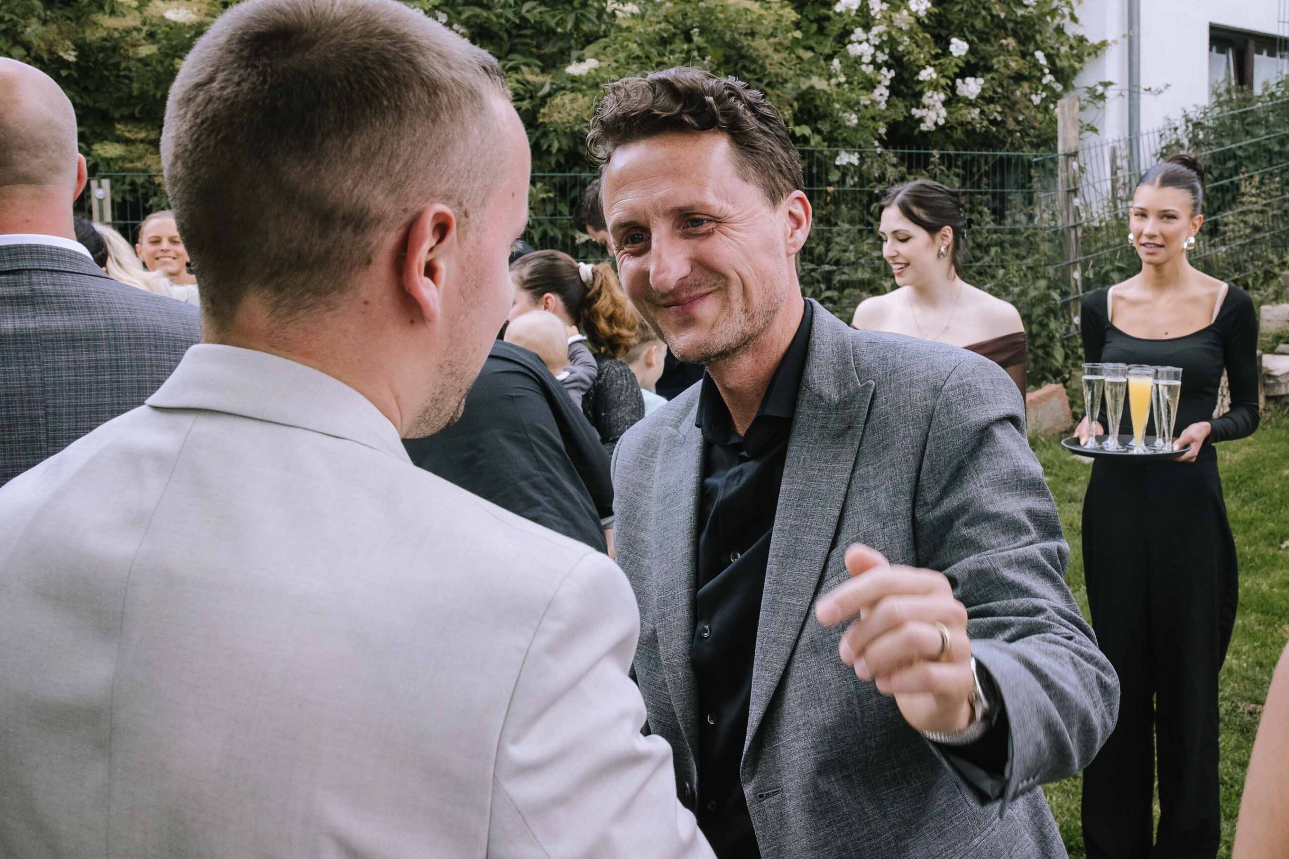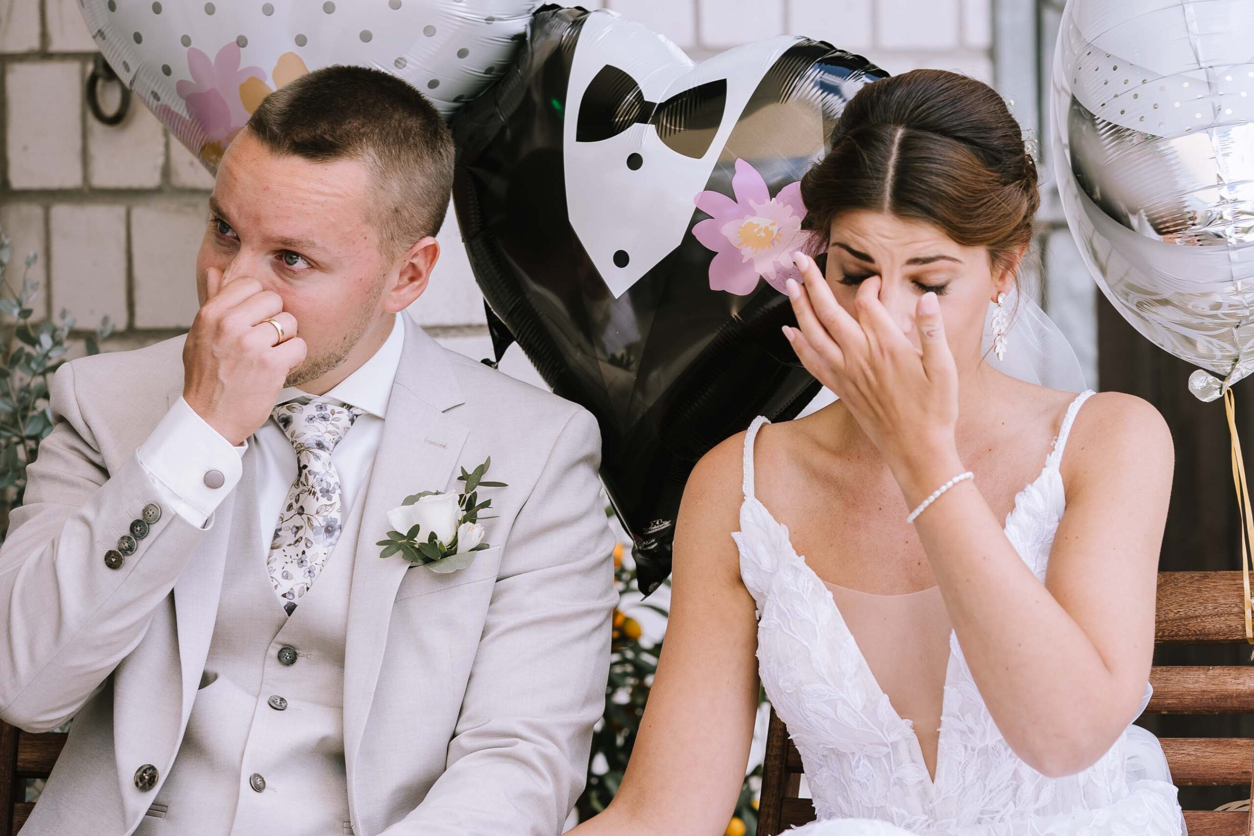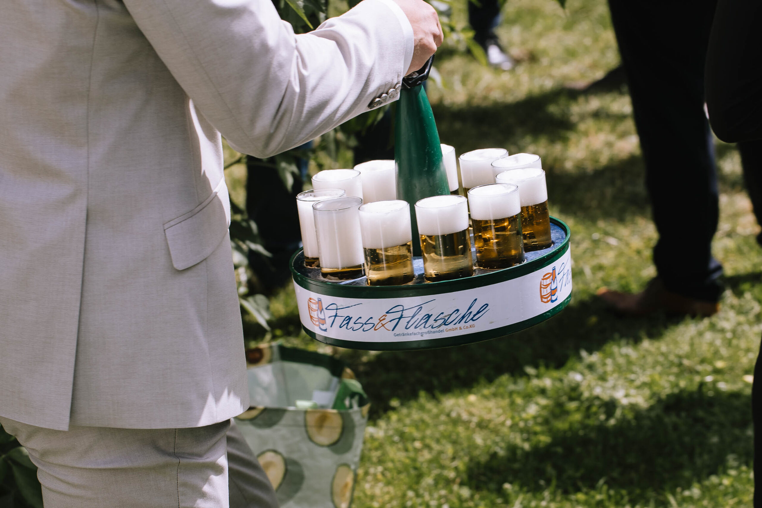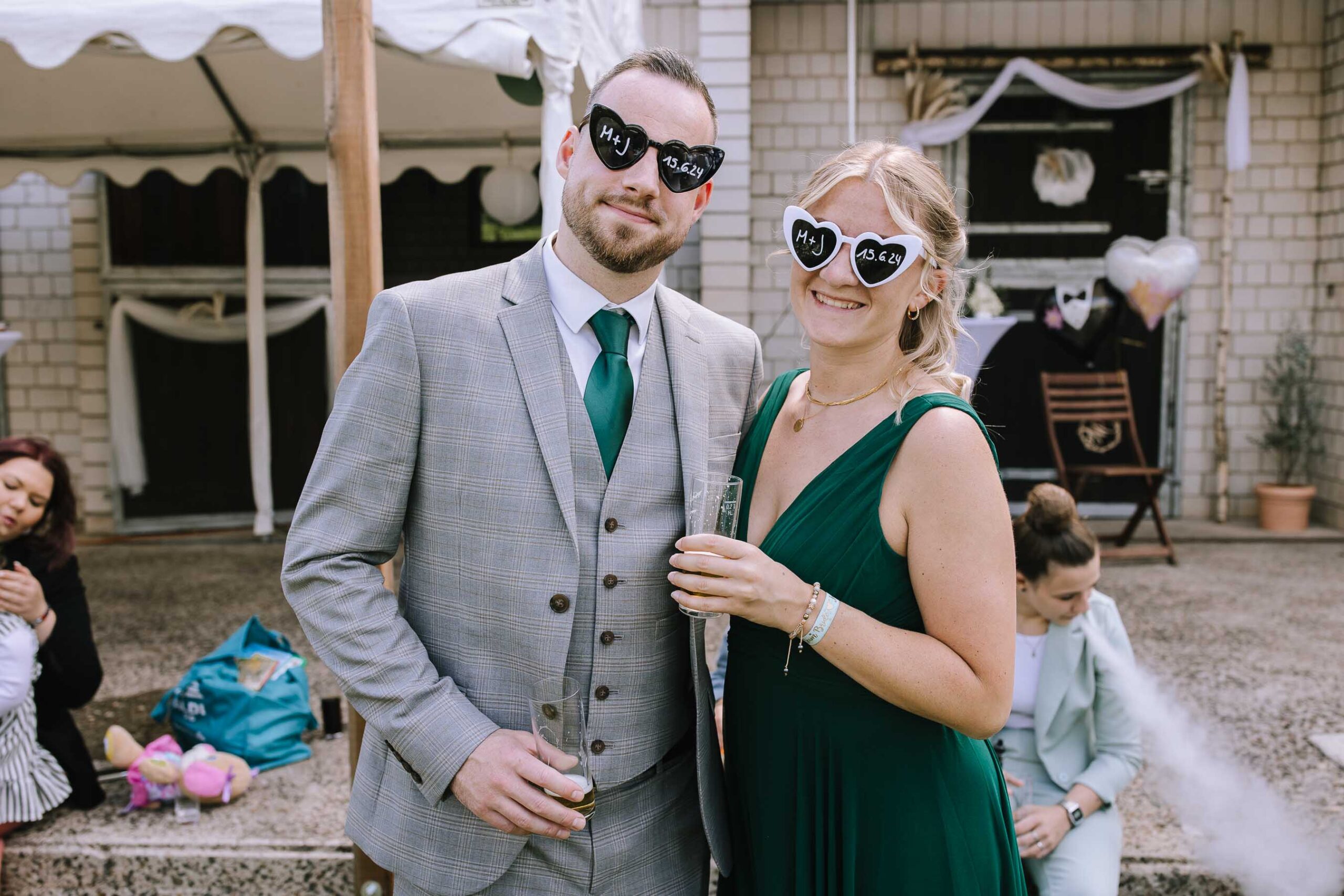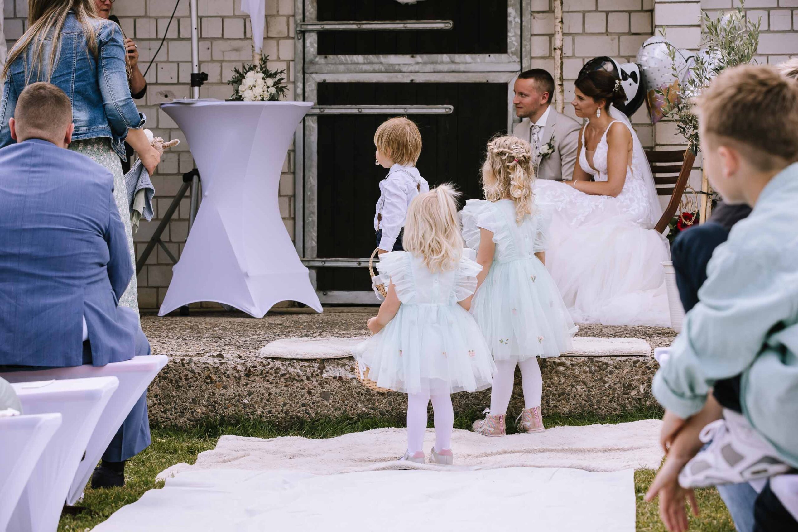 Kulisse festhalten. Wir machten das Shooting auf einem Wiesenhügel, auf dessen Spitze eine kleine Kapelle stand. Schon von weitem sahen wir das Auto mit Mary ankommen, und als sie ausstieg, war es ein unglaublich glücklicher und herzlicher Moment. Es war ein besonderer Augenblick, als Justin seine Braut zum ersten Mal in ihrem Hochzeitskleid sah – und der Moment war so voller Liebe und Emotionen, dass ich ihn mit meiner Kamera einfangen konnte. Die freie Trauung fand direkt am Ponystall statt und war genauso schön, wie wir es uns alle erhofft hatten. Sie war persönlich, fröhlich und voller Wärme. Als besonderes Ritual pflanzten Mary und Justin zusammen einen kleinen Olivenbaum – ein Symbol für ihre wachsende Liebe. Dieses schöne Ritual fügte der Zeremonie noch mehr Bedeutung und Tiefe hinzu. Nach der Trauung ging es zum Sektempfang in den Garten, wo die Gäste das frisch vermählte Paar mit Glückwünschen und Umarmungen empfingen. Es war eine lockere, fröhliche Atmosphäre, die sich auch in den Gruppenfotos widerspiegelte, die wir in der wunderschönen Gartenlandschaft machten. Die natürlichen Farben des Gartens und die entspannte Stimmung machten die Bilder lebendig und authentisch – genau das, was Mary und Justin sich gewünscht hatten. Es war mir eine Ehre, Mary und Justin an diesem besonderen Tag zu begleiten. Als Hochzeitsfotografin in Lindlar hatte ich das Glück, ihre Geschichte mit all ihren schönen Momenten festzuhalten. Vom First-Look über die Trauung bis hin zum Sektempfang – es war ein Tag voller Glück und Liebe, der für immer in meinen Bildern weiterlebt. Ich wünsche den beiden alles Gute für ihren gemeinsamen Weg!