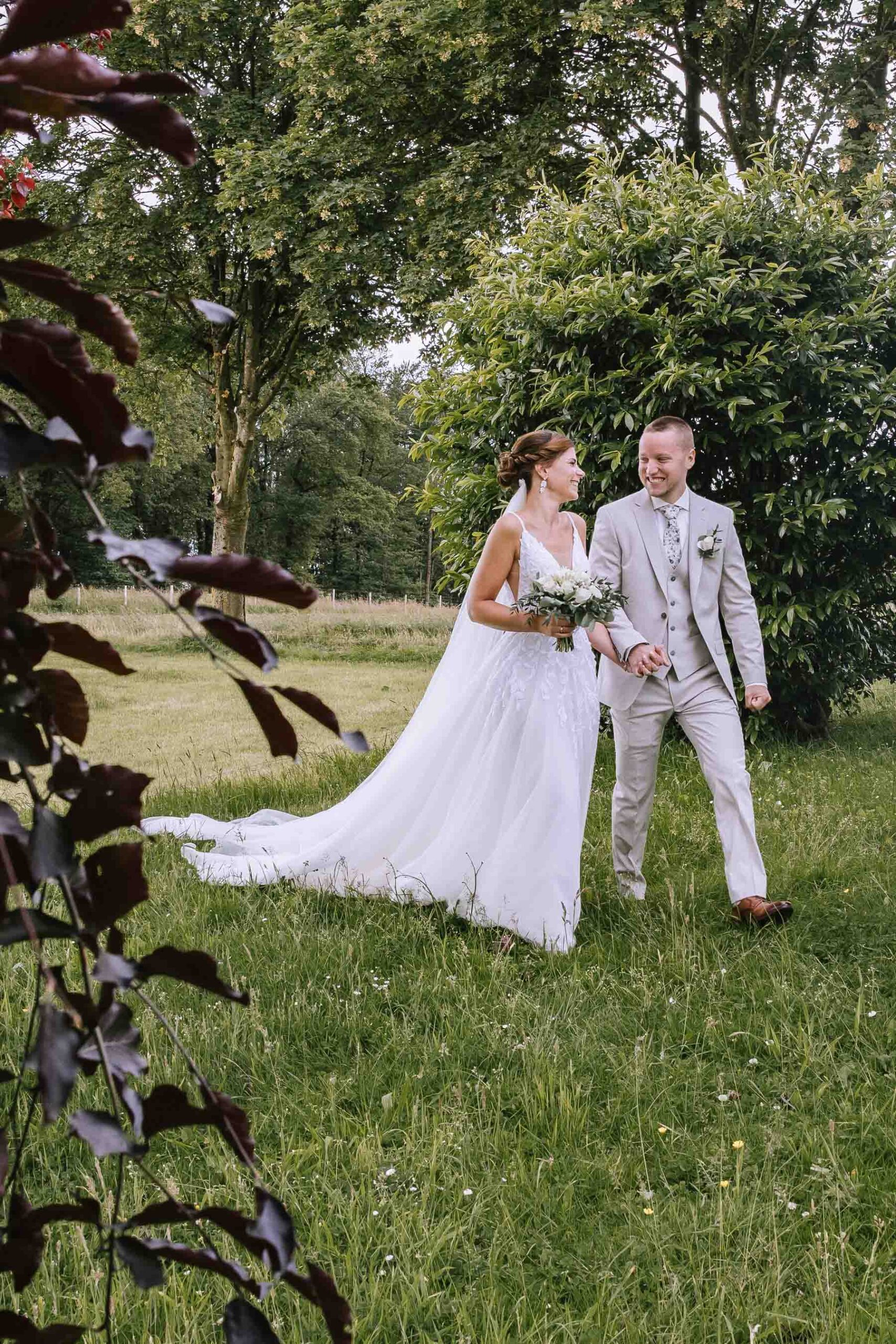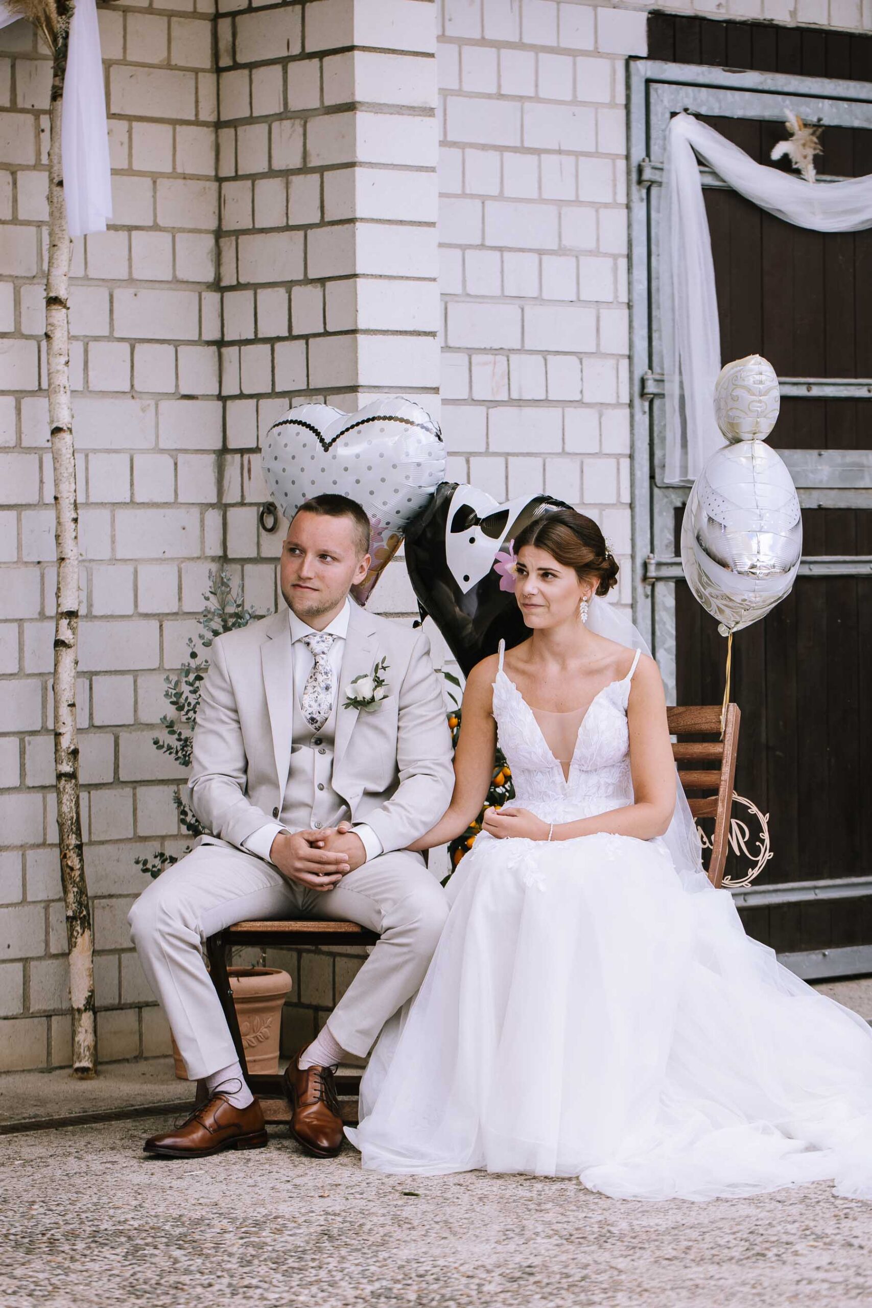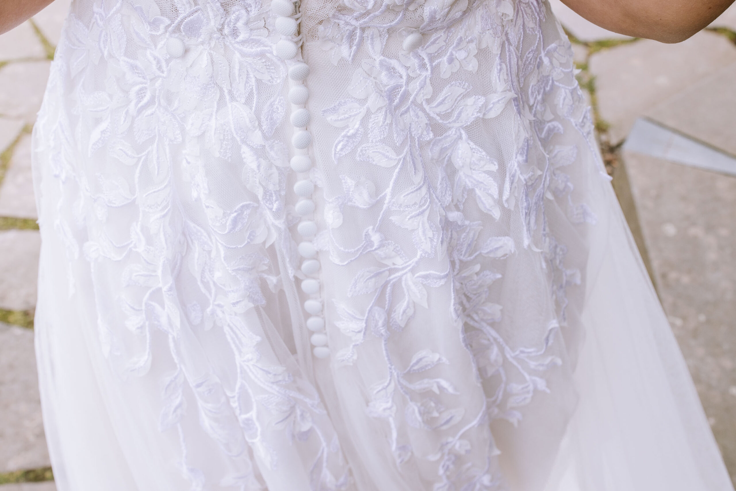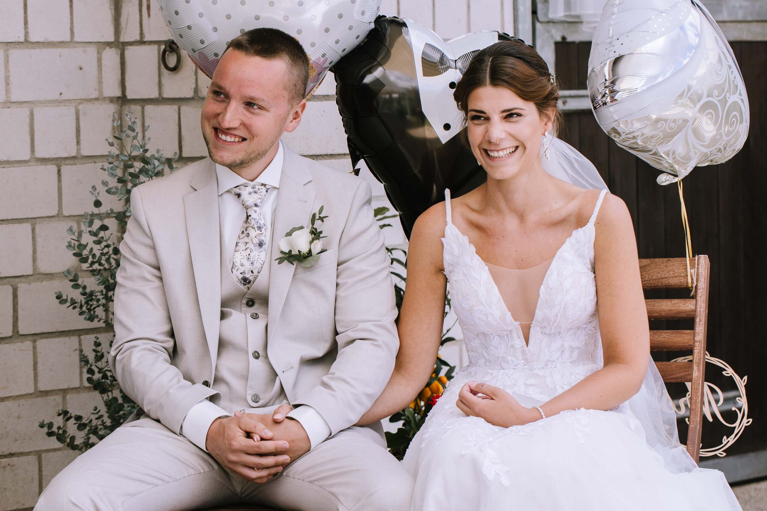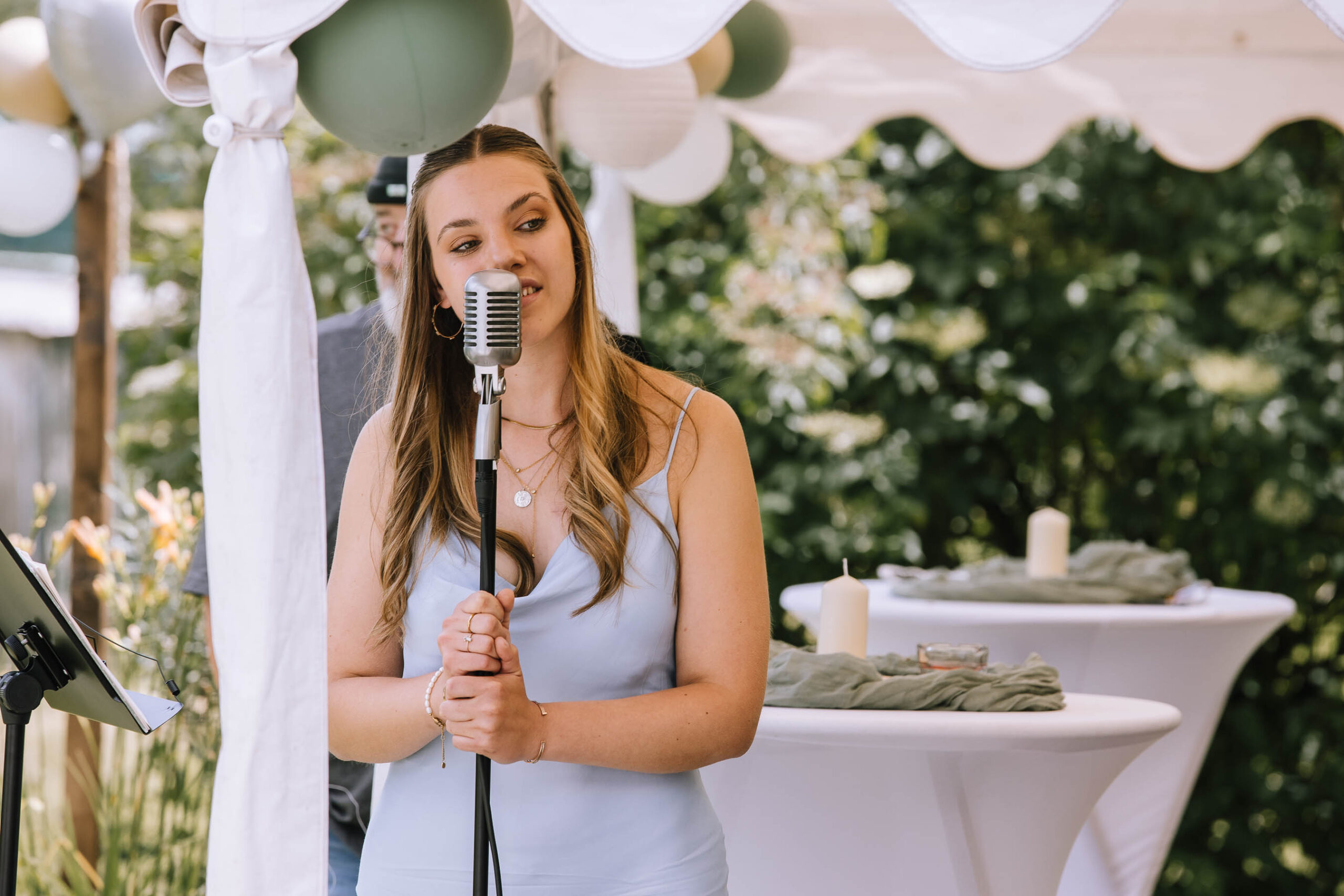 Kulisse festhalten. Wir machten das Shooting auf einem Wiesenhügel, auf dessen Spitze eine kleine Kapelle stand. Schon von weitem sahen wir das Auto mit Mary ankommen, und als sie ausstieg, war es ein unglaublich glücklicher und herzlicher Moment. Es war ein besonderer Augenblick, als Justin seine Braut zum ersten Mal in ihrem Hochzeitskleid sah – und der Moment war so voller Liebe und Emotionen, dass ich ihn mit meiner Kamera einfangen konnte. Die freie Trauung fand direkt am Ponystall statt und war genauso schön, wie wir es uns alle erhofft hatten. Sie war persönlich, fröhlich und voller Wärme. Als besonderes Ritual pflanzten Mary und Justin zusammen einen kleinen Olivenbaum – ein Symbol für ihre wachsende Liebe. Dieses schöne Ritual fügte der Zeremonie noch mehr Bedeutung und Tiefe hinzu. Nach der Trauung ging es zum Sektempfang in den Garten, wo die Gäste das frisch vermählte Paar mit Glückwünschen und Umarmungen empfingen. Es war eine lockere, fröhliche Atmosphäre, die sich auch in den Gruppenfotos widerspiegelte, die wir in der wunderschönen Gartenlandschaft machten. Die natürlichen Farben des Gartens und die entspannte Stimmung machten die Bilder lebendig und authentisch – genau das, was Mary und Justin sich gewünscht hatten. Es war mir eine Ehre, Mary und Justin an diesem besonderen Tag zu begleiten. Als Hochzeitsfotografin in Lindlar hatte ich das Glück, ihre Geschichte mit all ihren schönen Momenten festzuhalten. Vom First-Look über die Trauung bis hin zum Sektempfang – es war ein Tag voller Glück und Liebe, der für immer in meinen Bildern weiterlebt. Ich wünsche den beiden alles Gute für ihren gemeinsamen Weg!