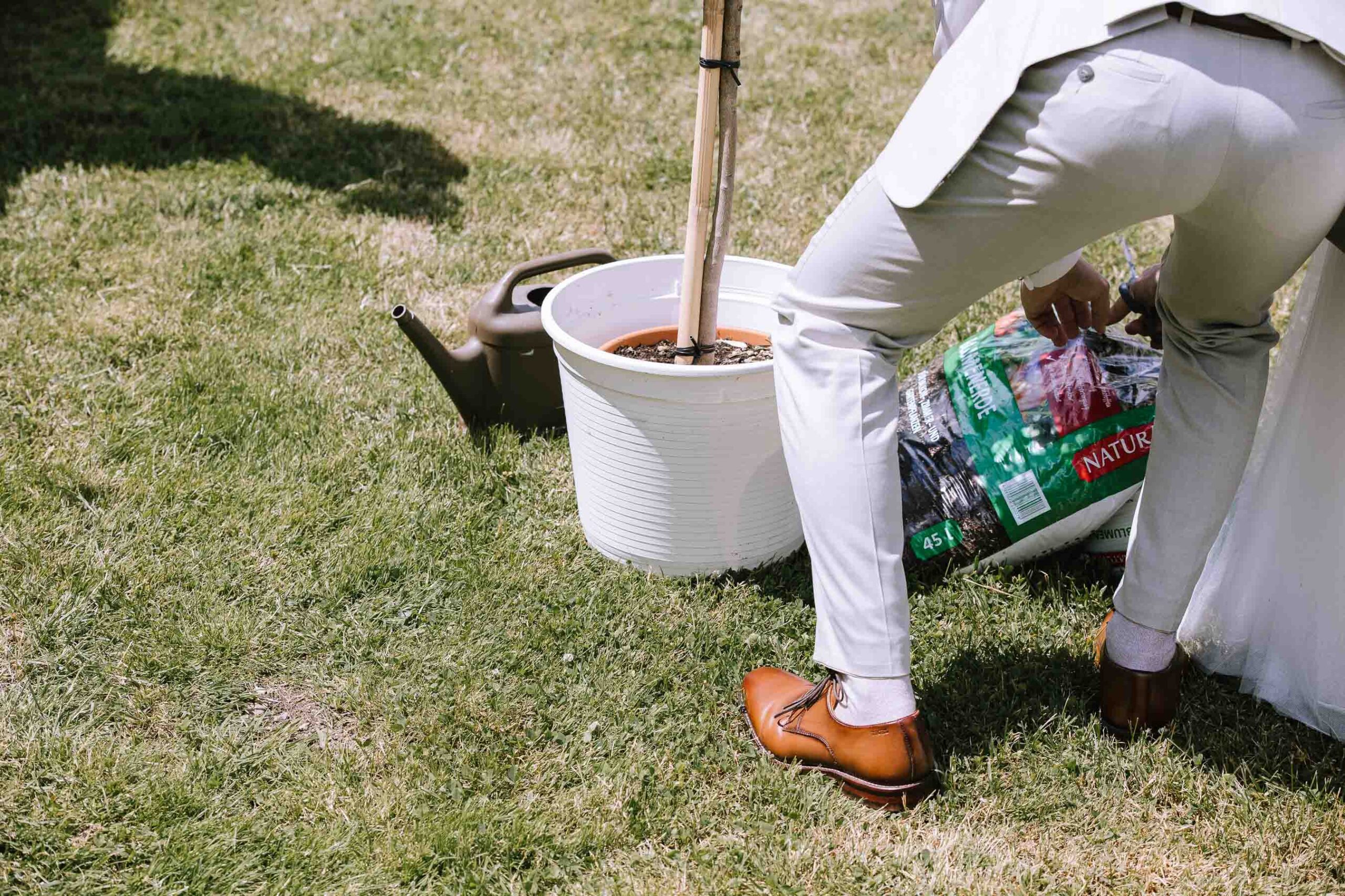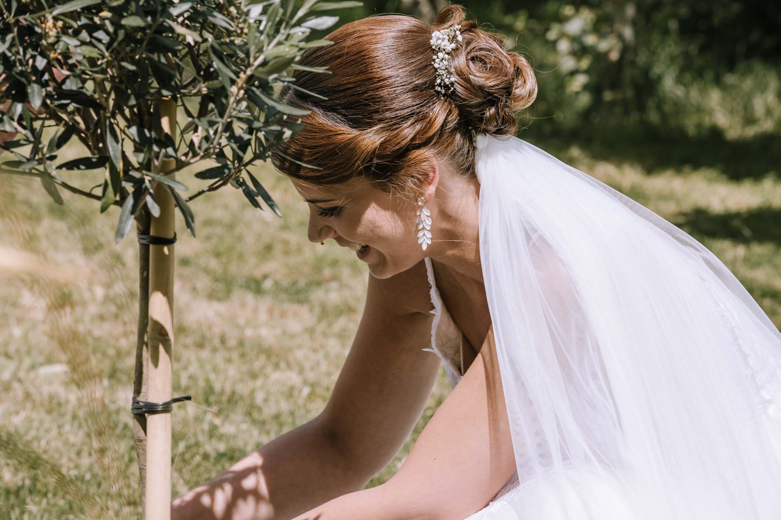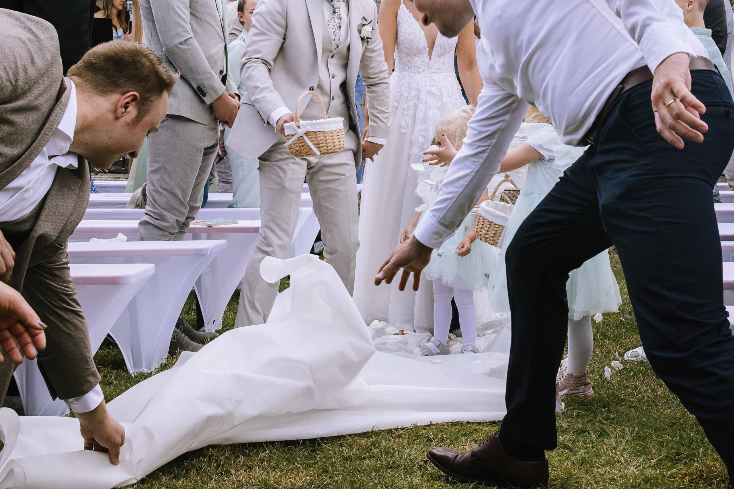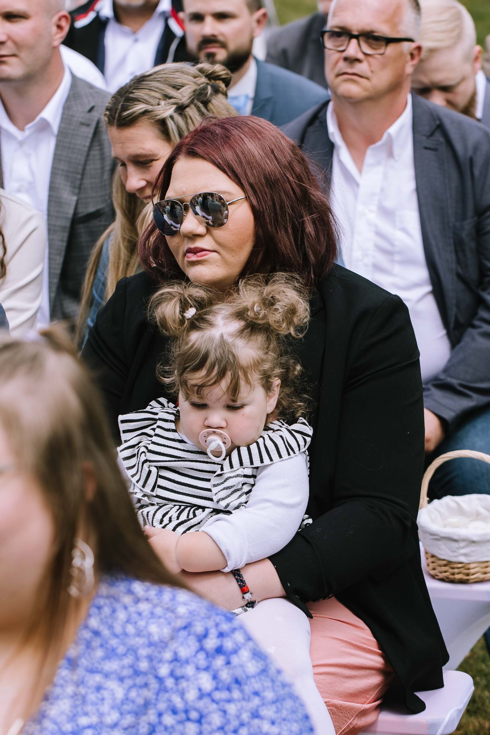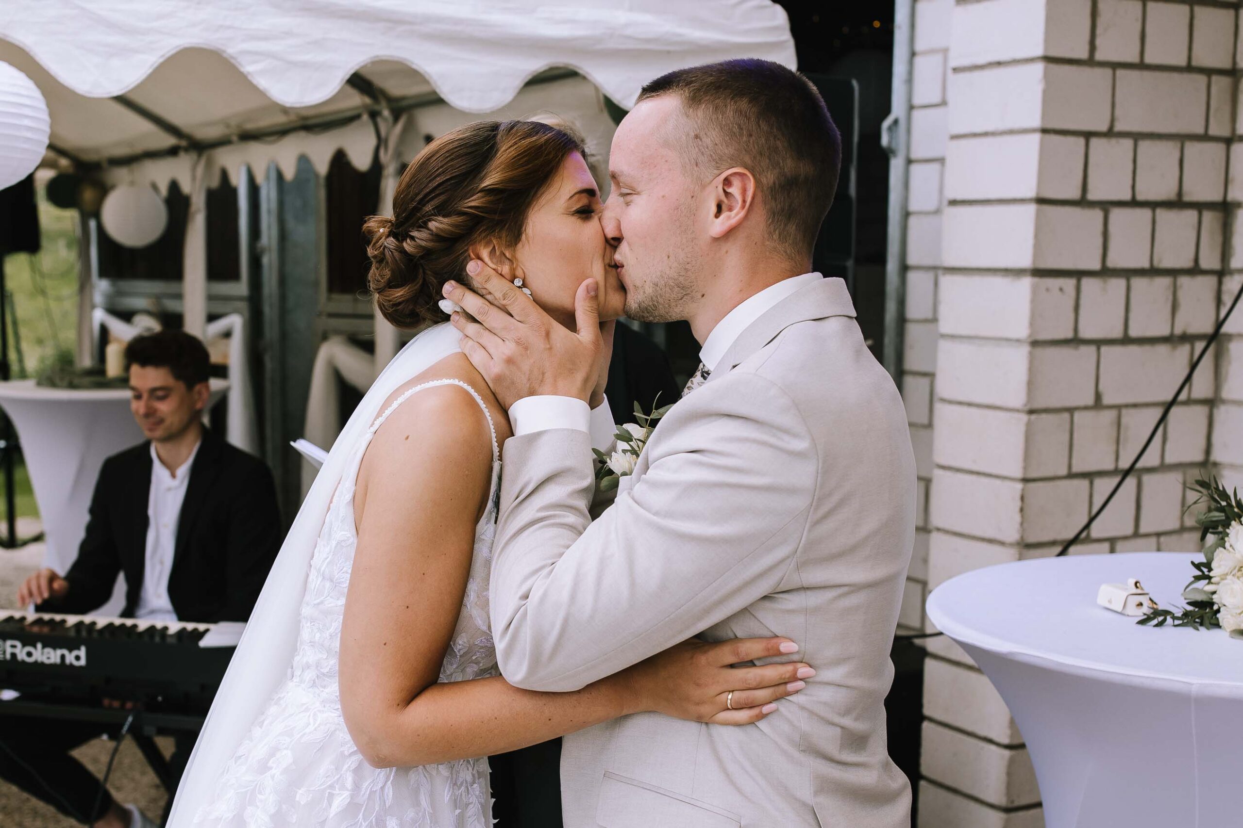 Kulisse festhalten. Wir machten das Shooting auf einem Wiesenhügel, auf dessen Spitze eine kleine Kapelle stand. Schon von weitem sahen wir das Auto mit Mary ankommen, und als sie ausstieg, war es ein unglaublich glücklicher und herzlicher Moment. Es war ein besonderer Augenblick, als Justin seine Braut zum ersten Mal in ihrem Hochzeitskleid sah – und der Moment war so voller Liebe und Emotionen, dass ich ihn mit meiner Kamera einfangen konnte. Die freie Trauung fand direkt am Ponystall statt und war genauso schön, wie wir es uns alle erhofft hatten. Sie war persönlich, fröhlich und voller Wärme. Als besonderes Ritual pflanzten Mary und Justin zusammen einen kleinen Olivenbaum – ein Symbol für ihre wachsende Liebe. Dieses schöne Ritual fügte der Zeremonie noch mehr Bedeutung und Tiefe hinzu. Nach der Trauung ging es zum Sektempfang in den Garten, wo die Gäste das frisch vermählte Paar mit Glückwünschen und Umarmungen empfingen. Es war eine lockere, fröhliche Atmosphäre, die sich auch in den Gruppenfotos widerspiegelte, die wir in der wunderschönen Gartenlandschaft machten. Die natürlichen Farben des Gartens und die entspannte Stimmung machten die Bilder lebendig und authentisch – genau das, was Mary und Justin sich gewünscht hatten. Es war mir eine Ehre, Mary und Justin an diesem besonderen Tag zu begleiten. Als Hochzeitsfotografin in Lindlar hatte ich das Glück, ihre Geschichte mit all ihren schönen Momenten festzuhalten. Vom First-Look über die Trauung bis hin zum Sektempfang – es war ein Tag voller Glück und Liebe, der für immer in meinen Bildern weiterlebt. Ich wünsche den beiden alles Gute für ihren gemeinsamen Weg!