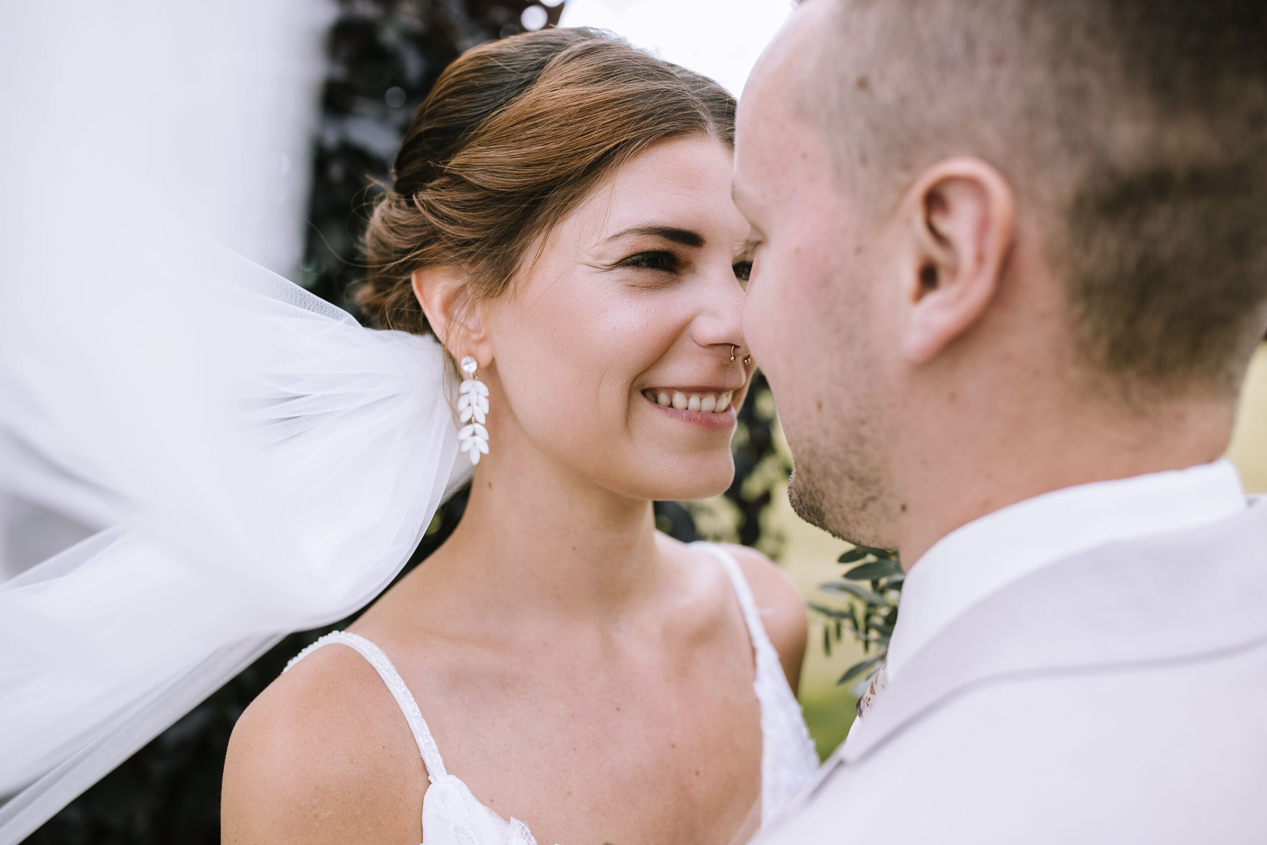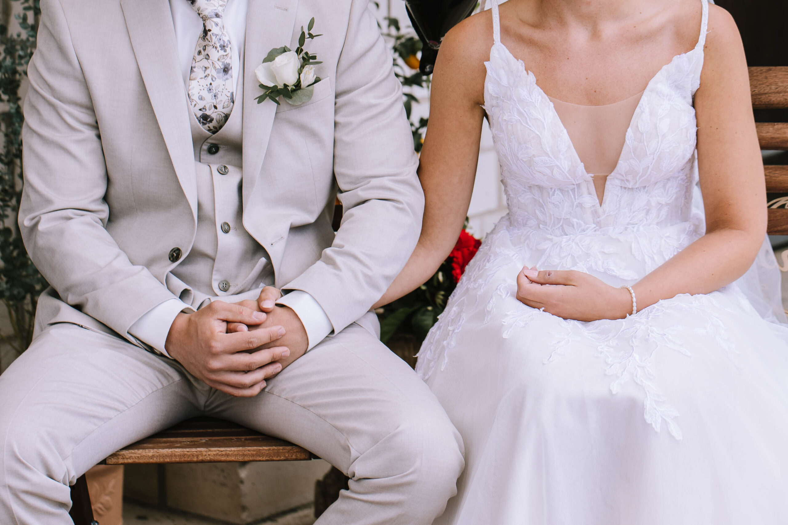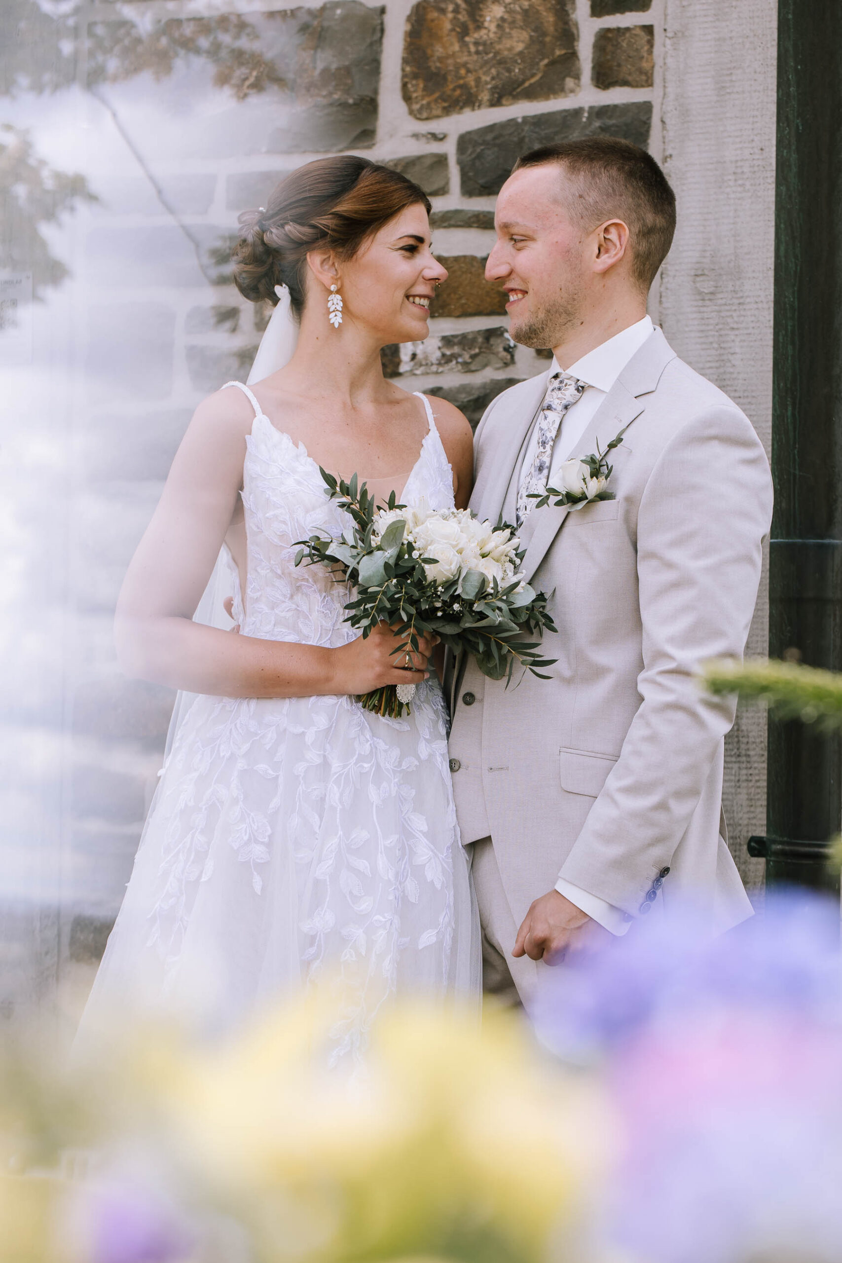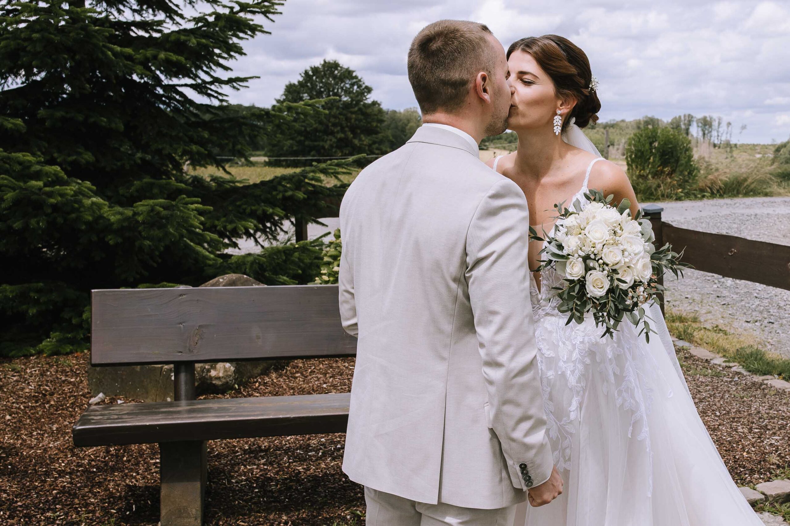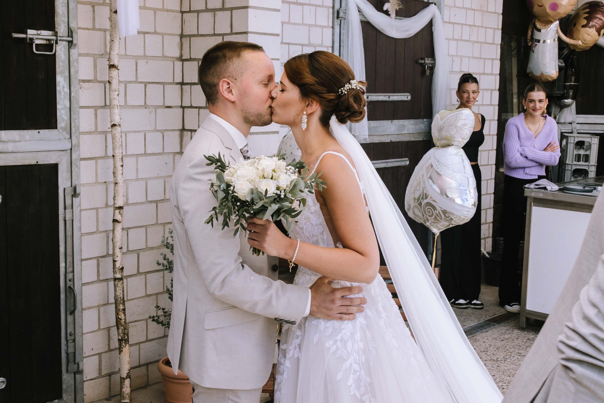 Vor der Hochzeit trafen wir uns ein weiteres Mal, um alles im Detail zu besprechen. Schon beim ersten Gespräch war klar: Die Chemie stimmte und wir waren uns sofort sympathisch. Mary und Justin erzählten mir, dass sie ihre freie Trauung am Ponystall von Justins Eltern feiern wollten – eine tolle Idee, die zu ihnen und ihrer lockeren, natürlichen Art perfekt passte. Der Ponystall war von einem wunderschönen Garten umgeben, und das Wetter spielte glücklicherweise mit, sodass es ein wahrer Traumtag wurde. Für das First-Look-Shooting hatten die beiden einen besonderen Wunsch: Sie wollten den Moment der ersten Begegnung in einer idyllischen, natürlichen