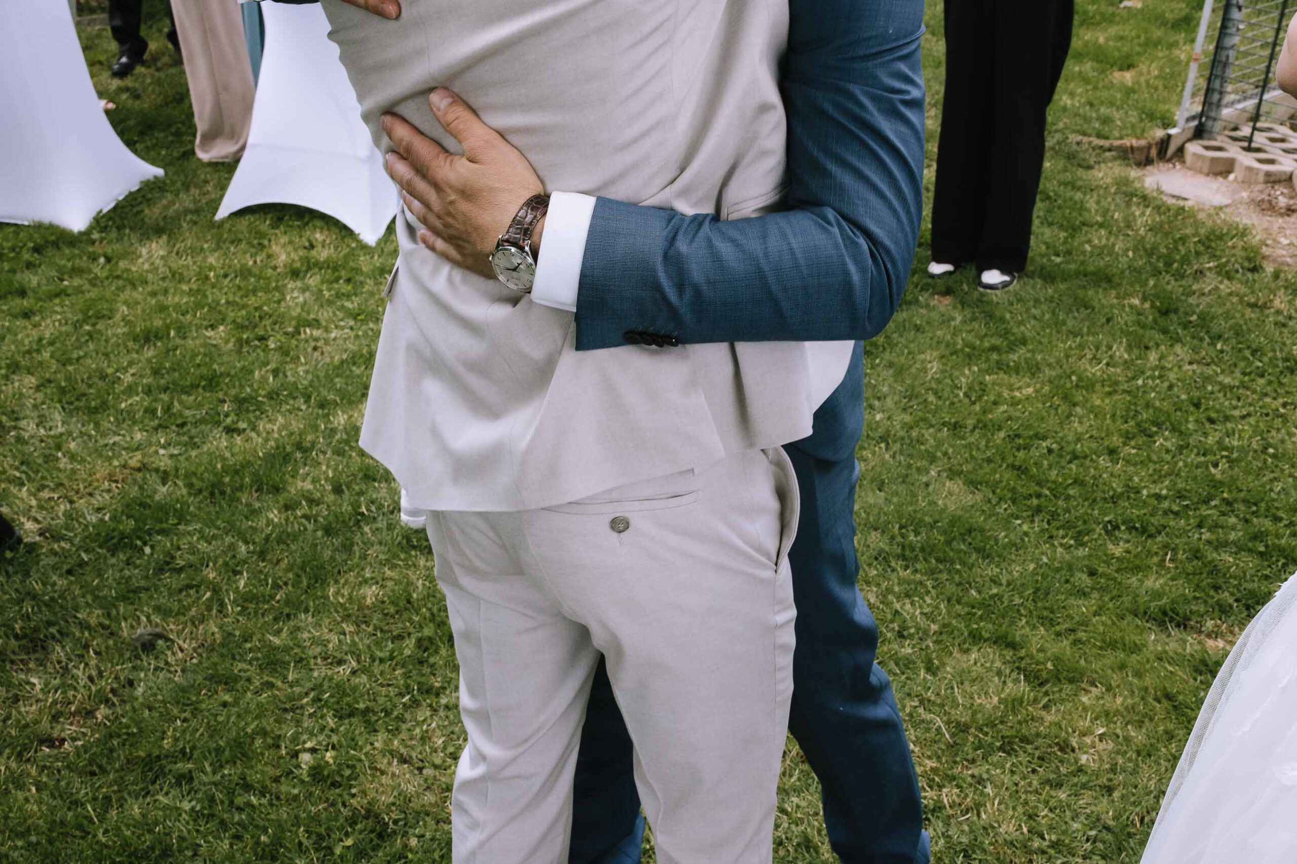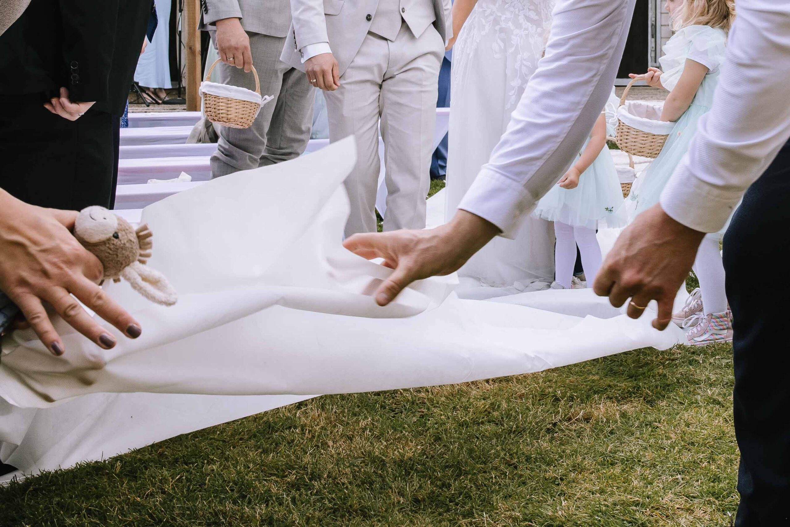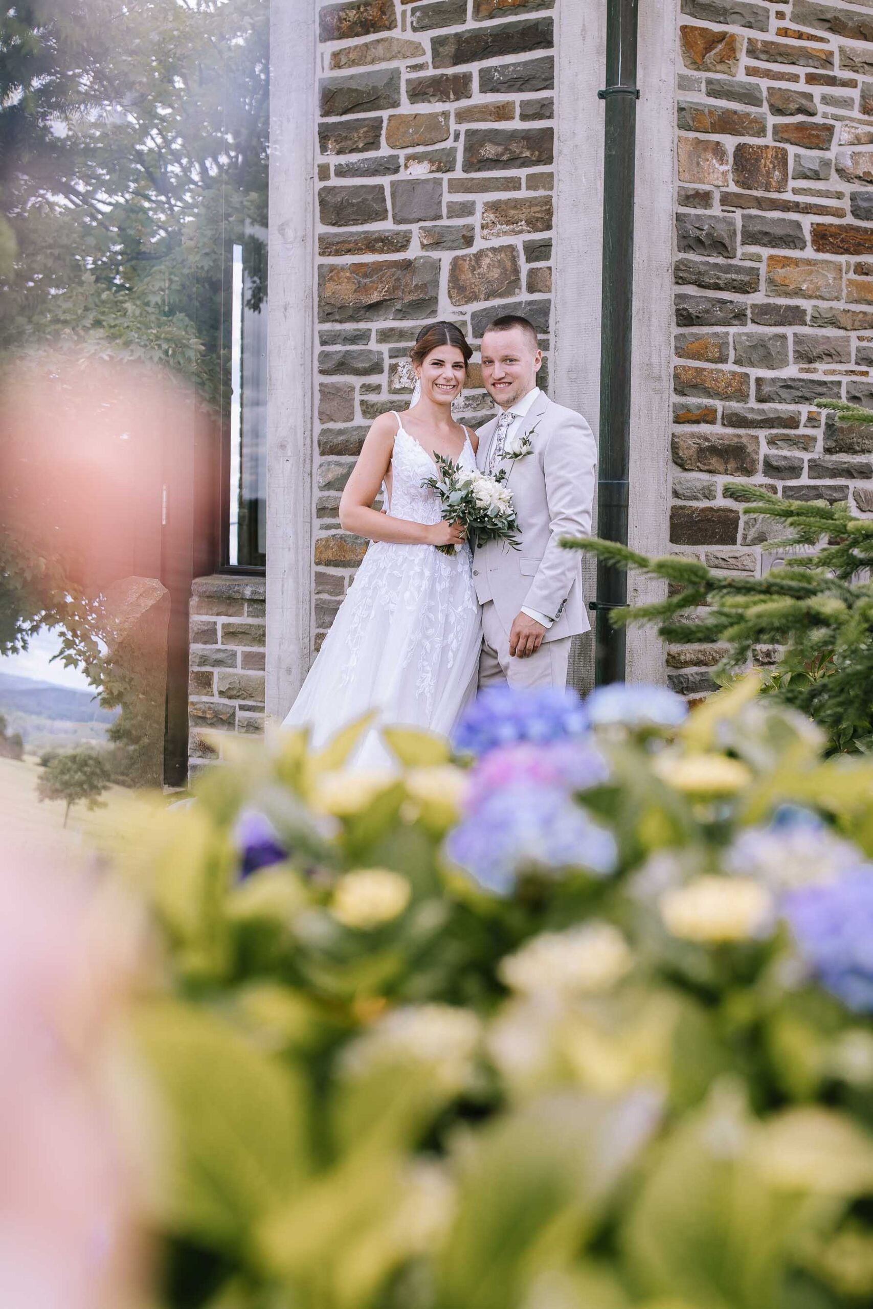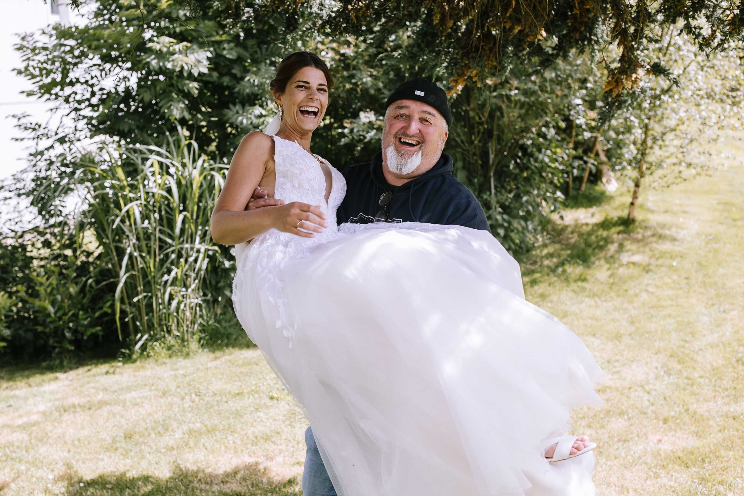 Vor der Hochzeit trafen wir uns ein weiteres Mal, um alles im Detail zu besprechen. Schon beim ersten Gespräch war klar: Die Chemie stimmte und wir waren uns sofort sympathisch. Mary und Justin erzählten mir, dass sie ihre freie Trauung am Ponystall von Justins Eltern feiern wollten – eine tolle Idee, die zu ihnen und ihrer lockeren, natürlichen Art perfekt passte. Der Ponystall war von einem wunderschönen Garten umgeben, und das Wetter spielte glücklicherweise mit, sodass es ein wahrer Traumtag wurde. Für das First-Look-Shooting hatten die beiden einen besonderen Wunsch: Sie wollten den Moment der ersten Begegnung in einer idyllischen, natürlichen