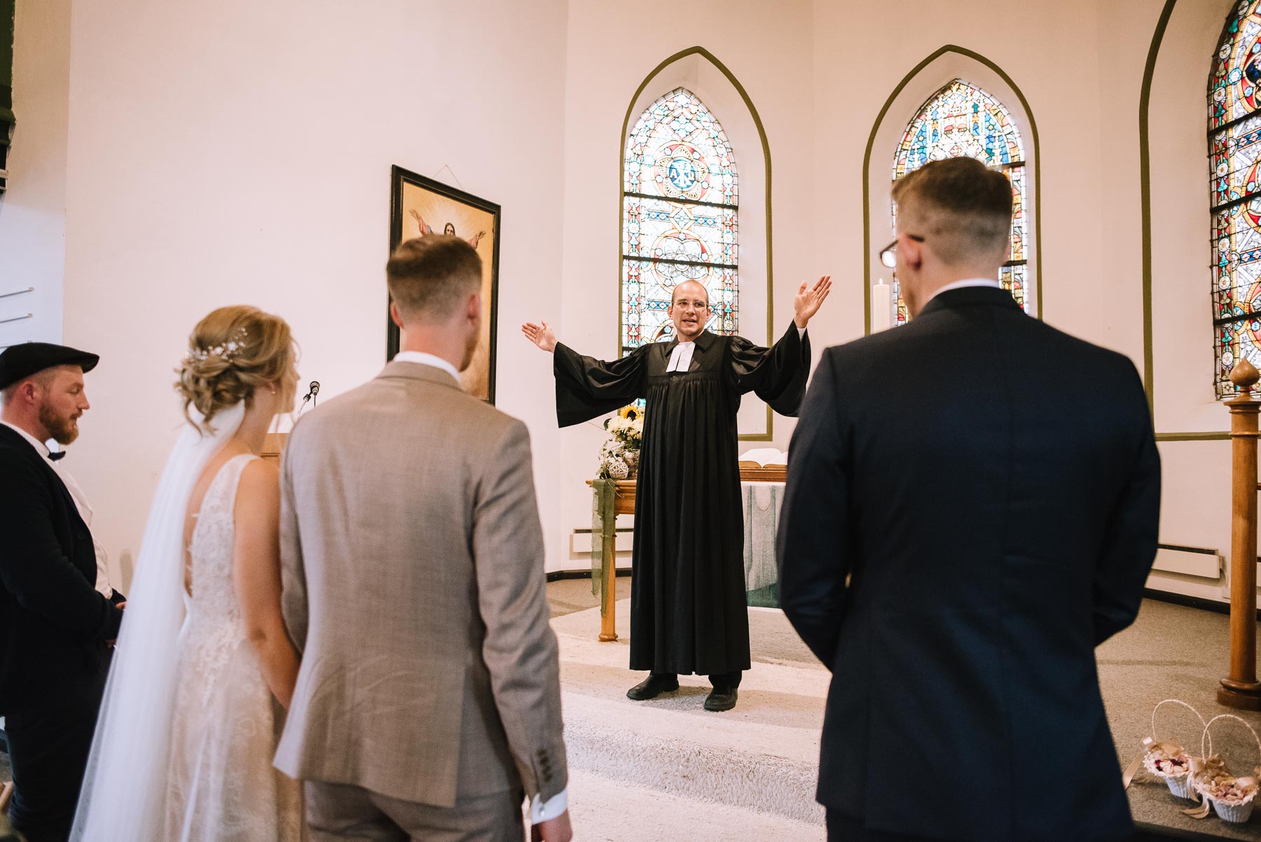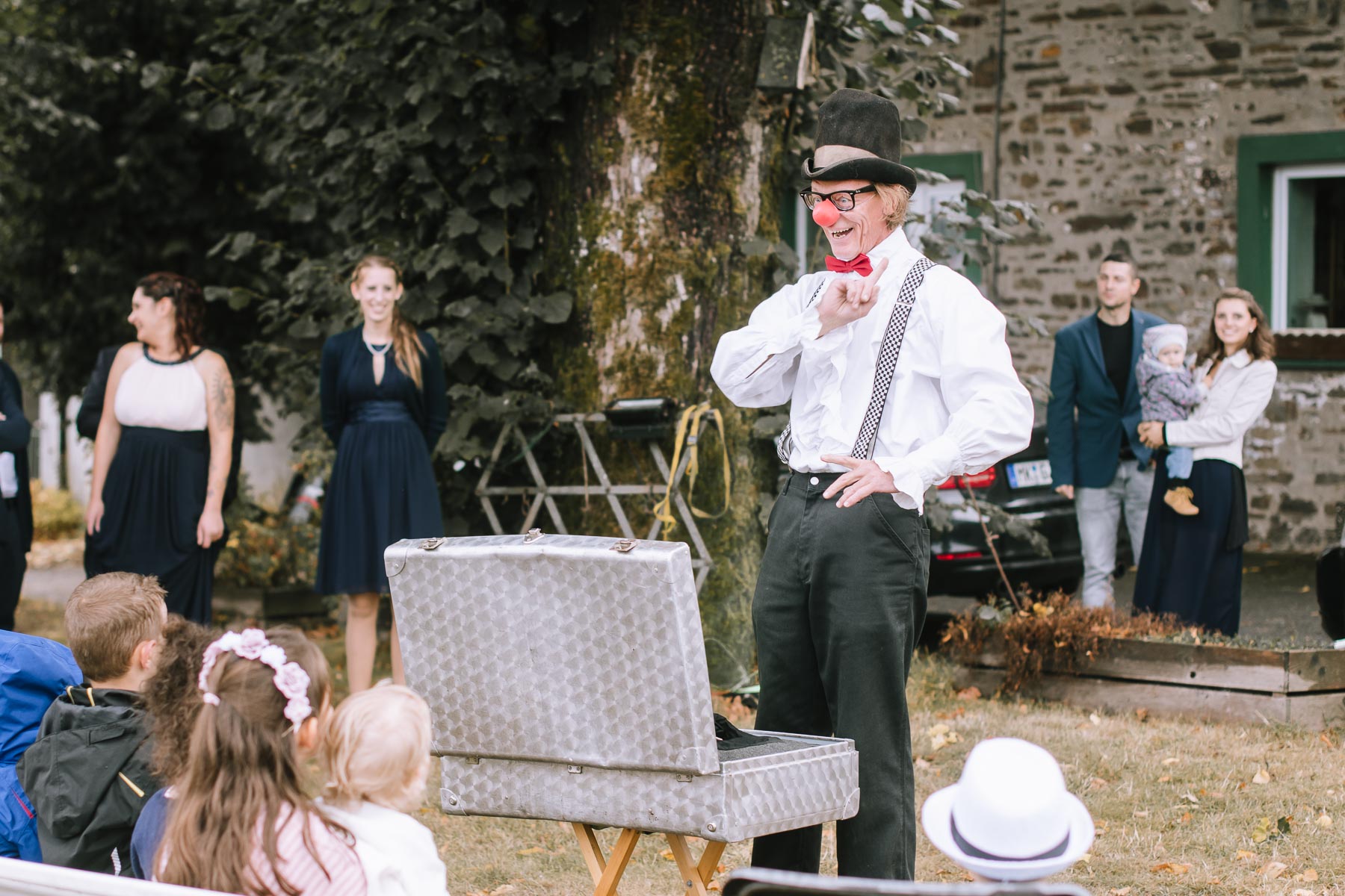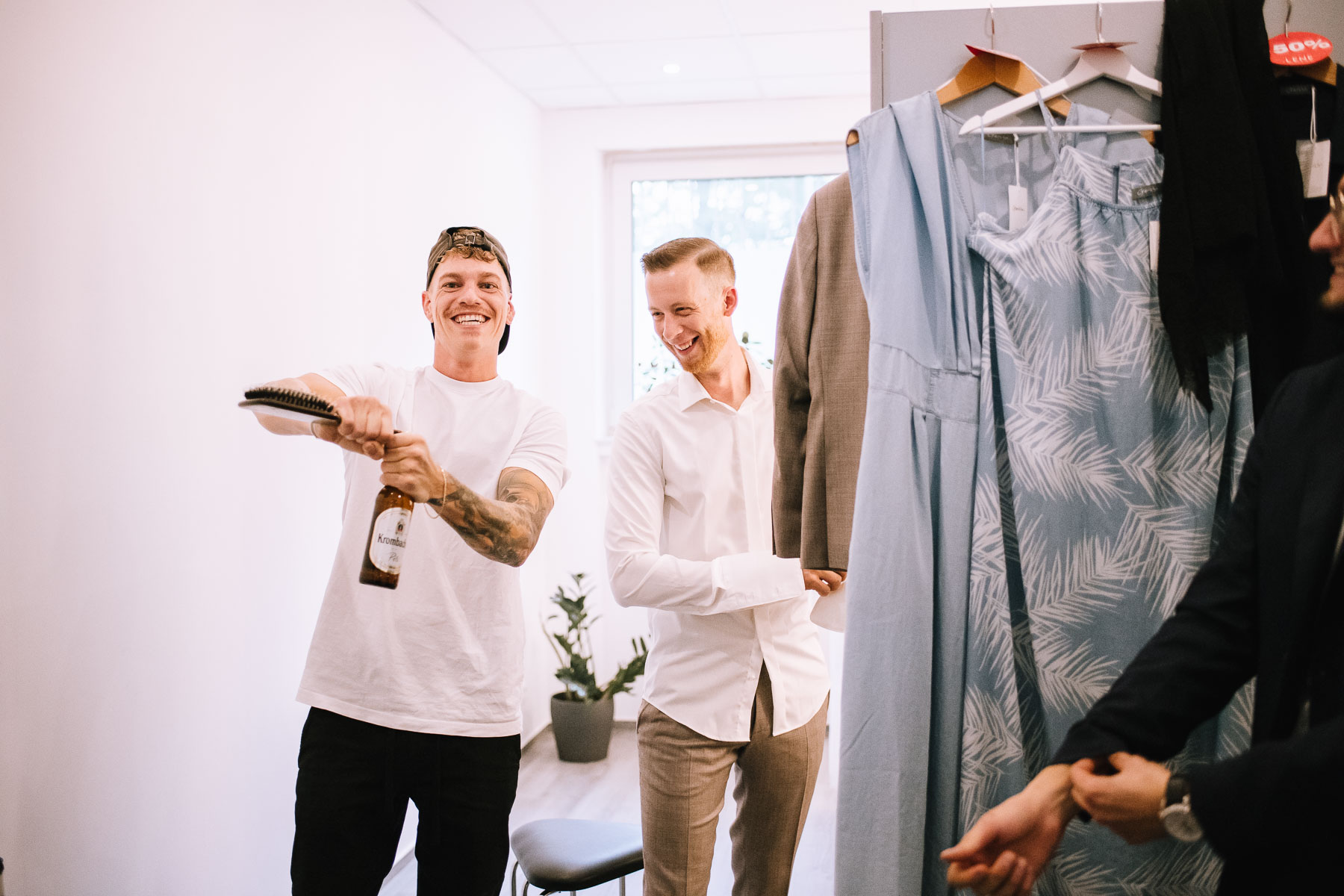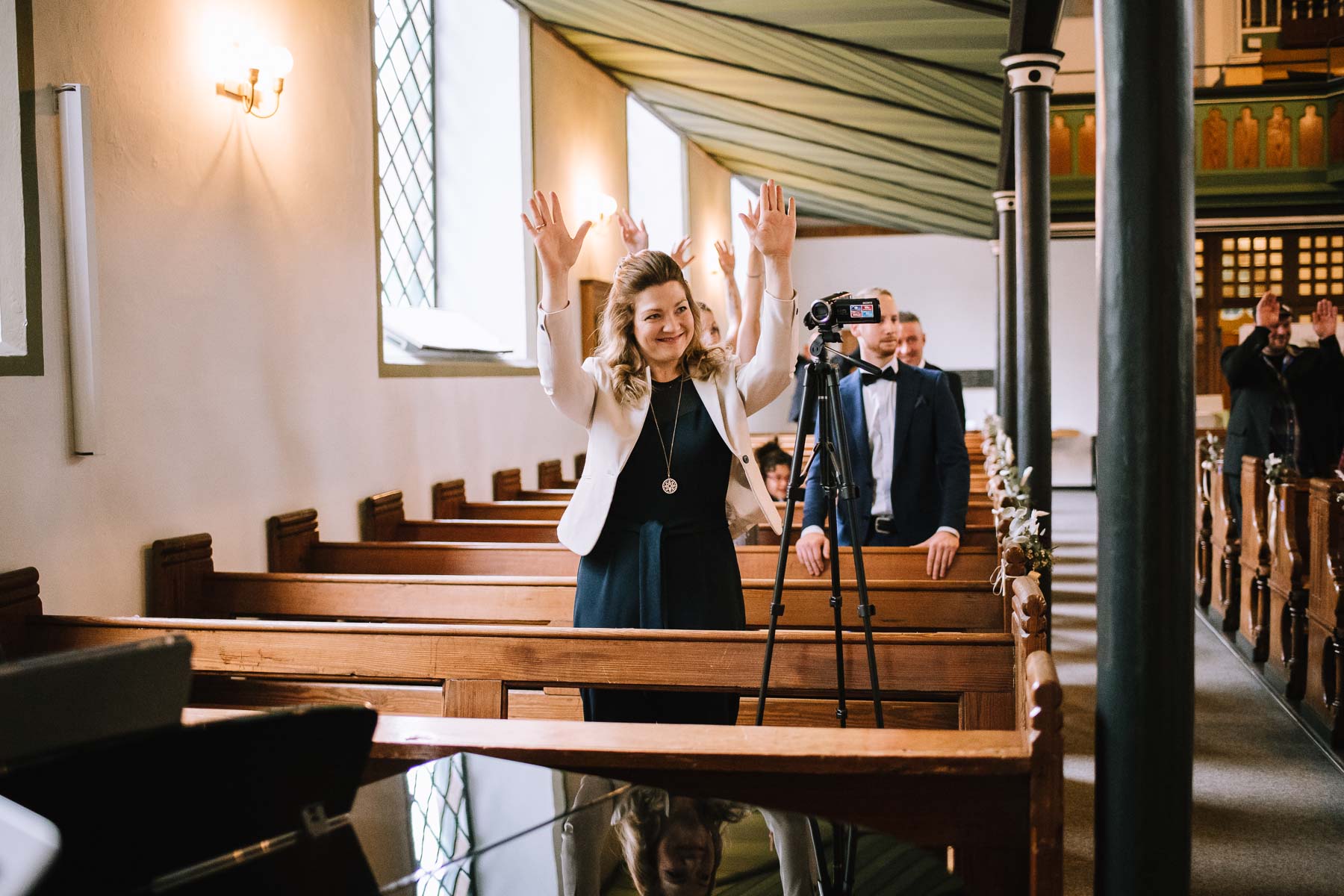 Doch bevor es losging, fand am Morgen erstmal das Getting Ready in Halver statt. Denn Julias Bekannte hatte ihr dafür die Räumlichkeiten ihrer kleinen Boutique Lene. Fashion angeboten. Nach dem Getting Ready ging es dann zur Erlöserkirche nach Schalksmühle, wo Gion Julia zum ersten Mal sah. Es war eine wunderschöne Trauung, in die auch die Kinder der Beiden mit eingebunden wurden. Im Anschluss ging es dann zur Location nach Breckerfeld, sodass der Scheunenhochzeit nichts mehr im Wege stand. Es gab köstliche italienische Speisen und die Band, ebenfalls Freunde von den Beiden, sorgte die ganze Zeit für tolle Musik. Und auch für die Kleinsten gab es Bespaßung durch den Clown Lino aus Lüdenscheid.