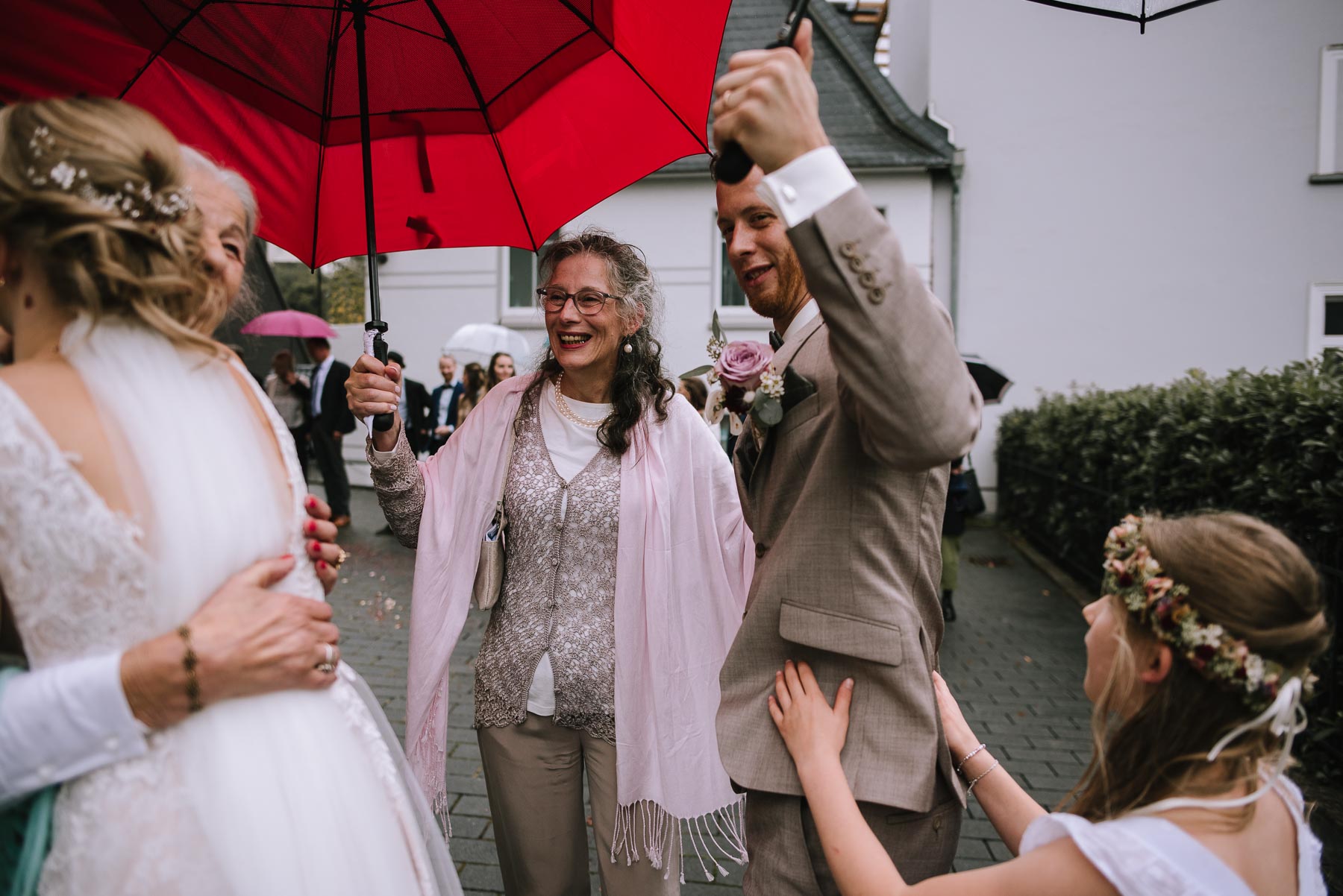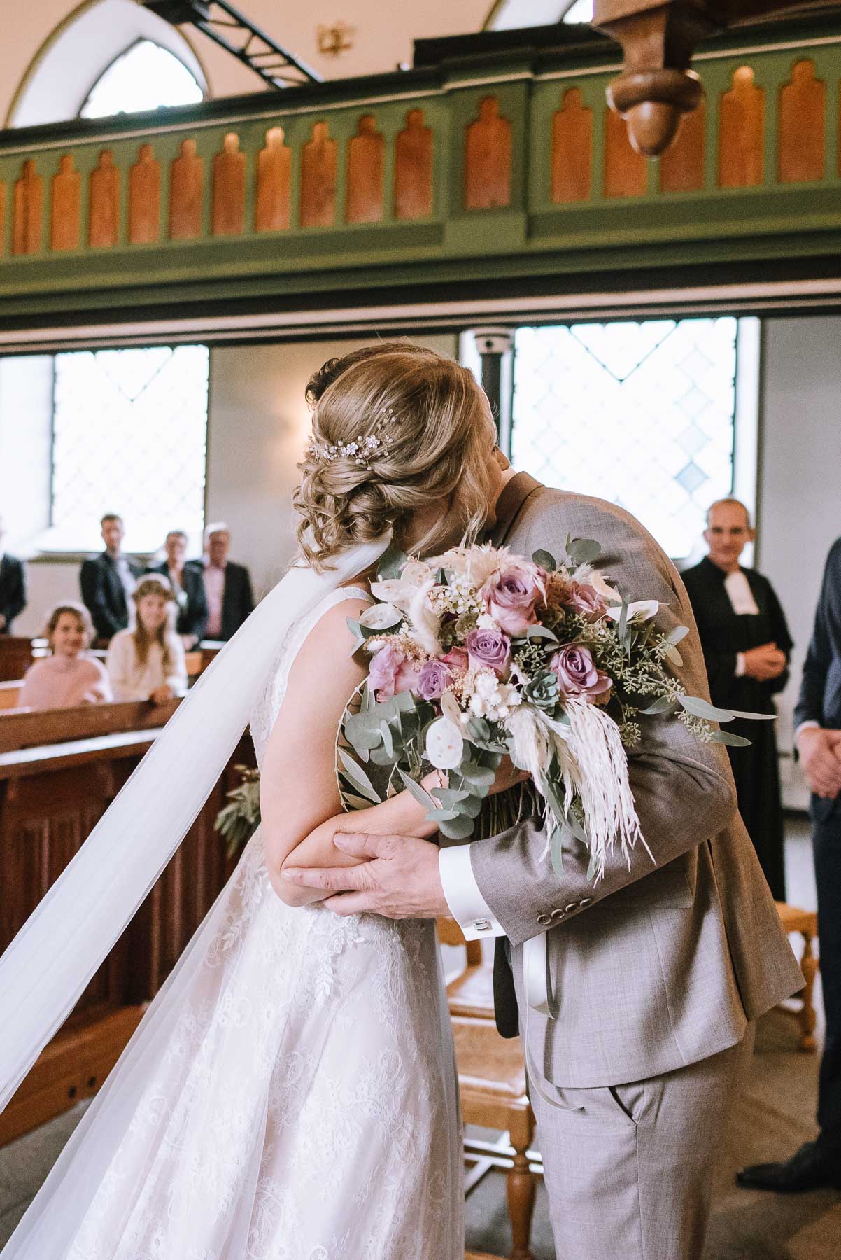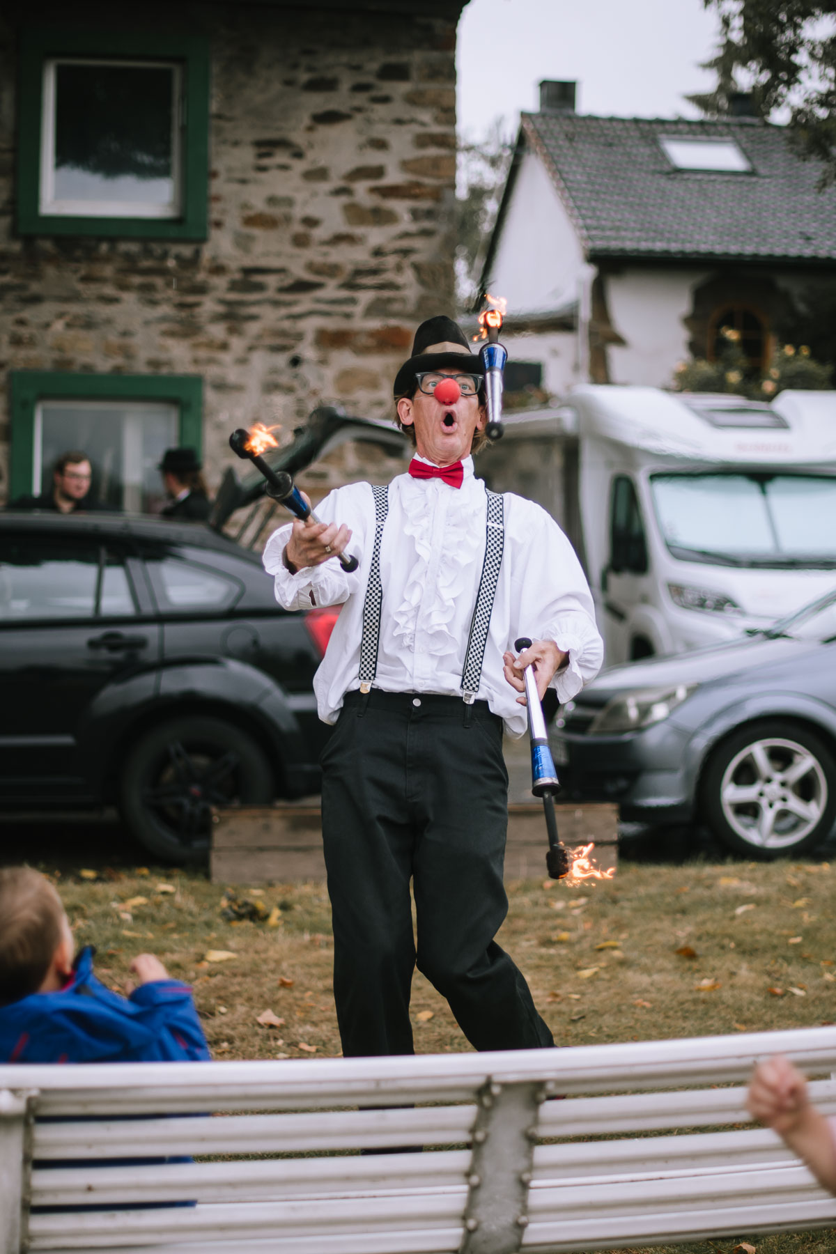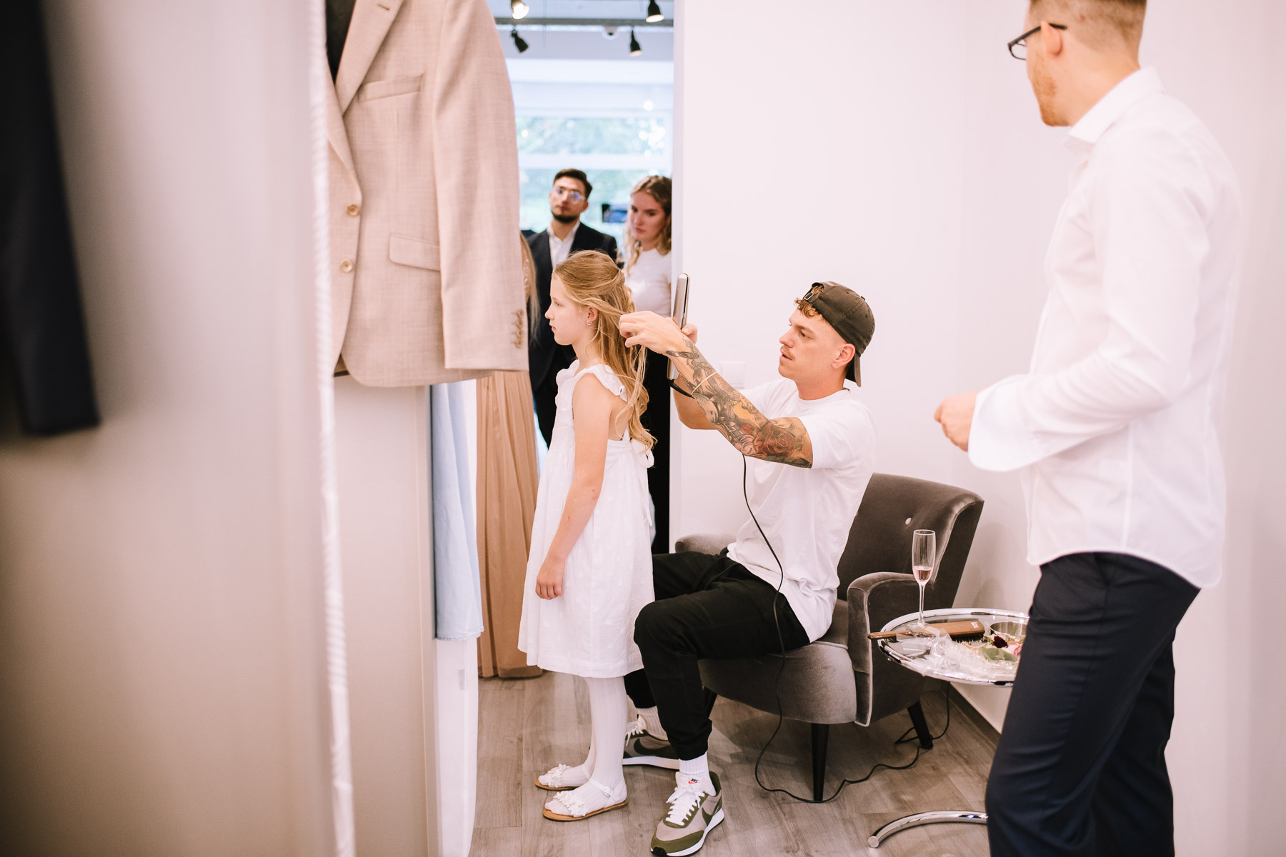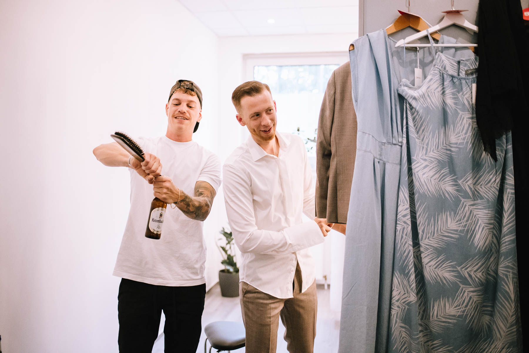 Doch bevor es losging, fand am Morgen erstmal das Getting Ready in Halver statt. Denn Julias Bekannte hatte ihr dafür die Räumlichkeiten ihrer kleinen Boutique Lene. Fashion angeboten. Nach dem Getting Ready ging es dann zur Erlöserkirche nach Schalksmühle, wo Gion Julia zum ersten Mal sah. Es war eine wunderschöne Trauung, in die auch die Kinder der Beiden mit eingebunden wurden. Im Anschluss ging es dann zur Location nach Breckerfeld, sodass der Scheunenhochzeit nichts mehr im Wege stand. Es gab köstliche italienische Speisen und die Band, ebenfalls Freunde von den Beiden, sorgte die ganze Zeit für tolle Musik. Und auch für die Kleinsten gab es Bespaßung durch den Clown Lino aus Lüdenscheid.