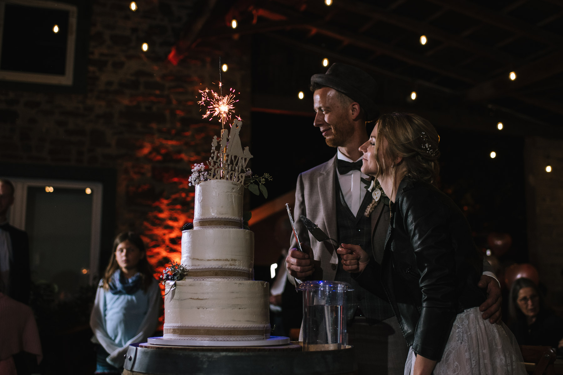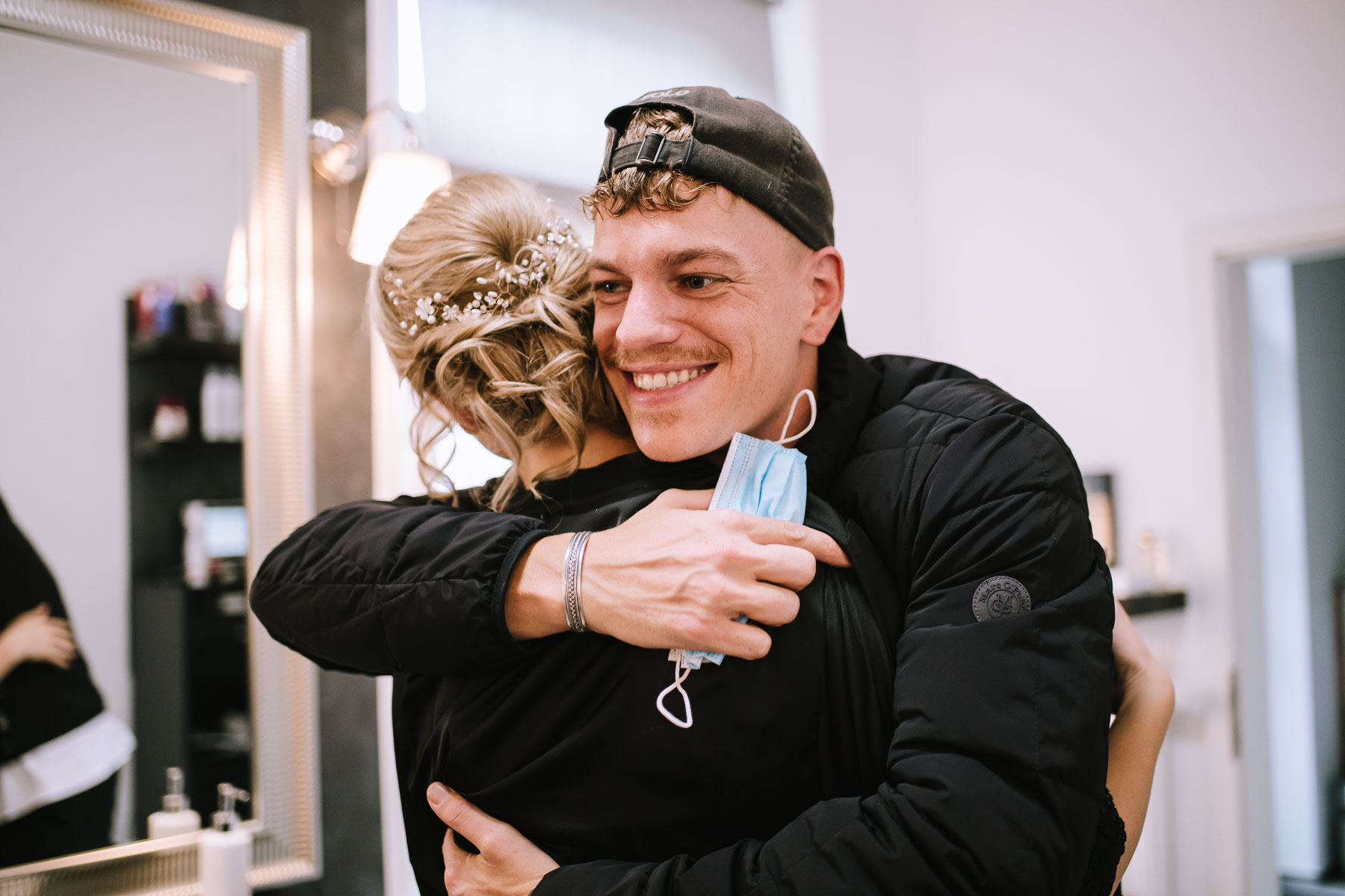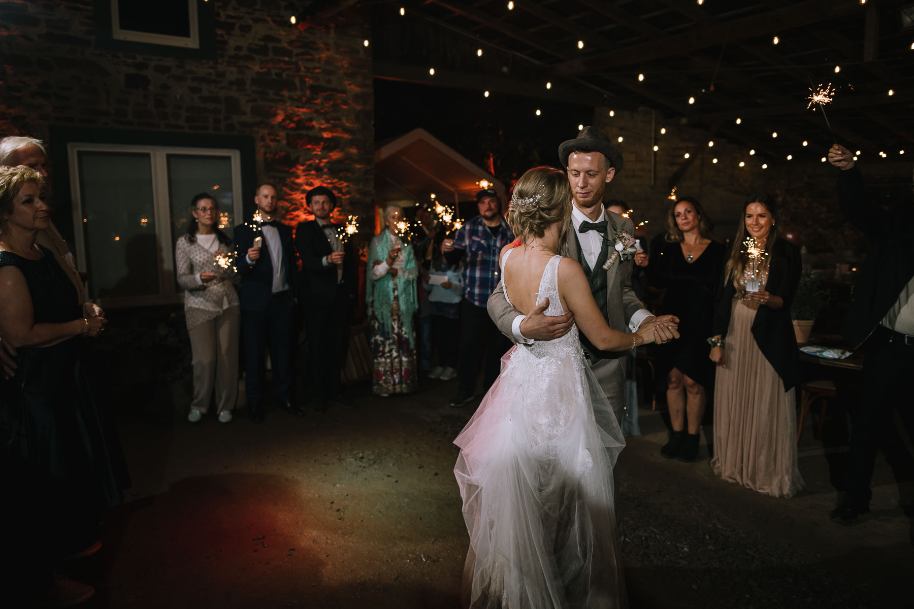 Irgendwann im Sommer traf ich mich mit Julia und Gion hier in Meinerzhagen im italienischen Eiscafé. Denn: die Beiden sind richtige Travelfans und Italien hatte es ihnen besonders angetan: die schöne hügelige Landschaft, gutes Essen, italienische Gastfreundlichkeit. Schon zu Beginn merkten wir, dass das ein langes, intensives Gespräch werden würde. So intensiv, dass wir in ein anderes Eiscafé wechseln mussten, da das erste schon bald schließen würde. Die Beiden erzählten mir von ihrer Traumhochzeit, die zunächst in einer anderen Location in Kierspe stattfinden sollte. Lange Tischreihen, Lichterketten, Livemusik, Olivenzweige und Zitronenbäume – so hatten die beiden ihren großen Tag im Frühjahr des nächsten Jahres vor Augen. Doch dann kam die Pandemie und die Hochzeit musste verschoben werden. Doch nicht nur das machte den Beiden einen Strich durch die Planung. Denn zwei Wochen vor dem Ausweichtermin offenbarte die Location plötzlich, dass sie die Hochzeit nicht so wie besprochen durchführen können würde. Doch auch diese Hiobs-Botschaft ließ Julia und Gion nicht aufgeben. Kurzerhand schnappten sie sich ihre besten Freunde und Verwandten und drehten den Bauernhof eines Bekannten drei mal auf links und räumten auf, was das Zeug hielt, um die Hochzeit in Halver und Breckerfeld feiern zu können. Und tatsächlich schafften sie es, die alte Scheune in eine wunderschöne Hochzeitslocation zu verwandeln. Natürlich