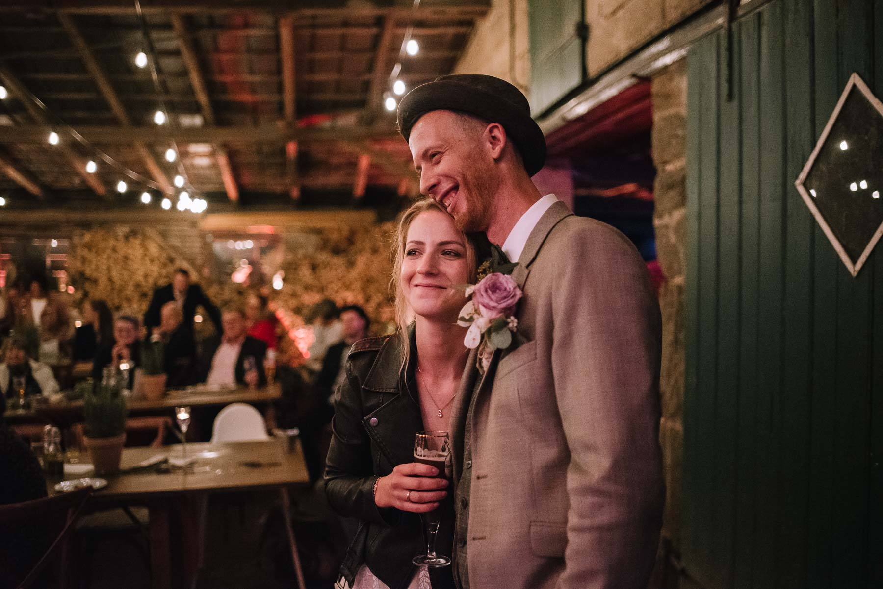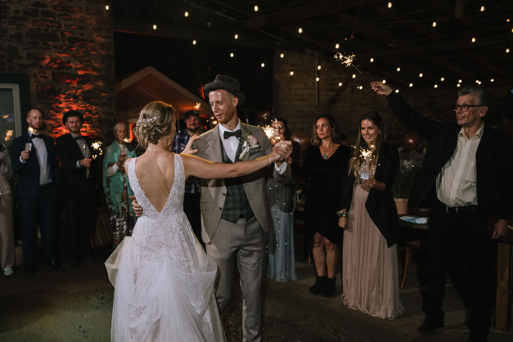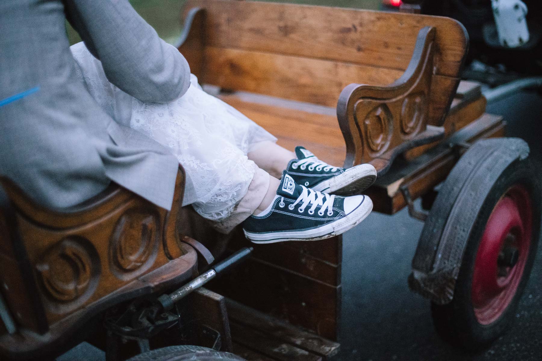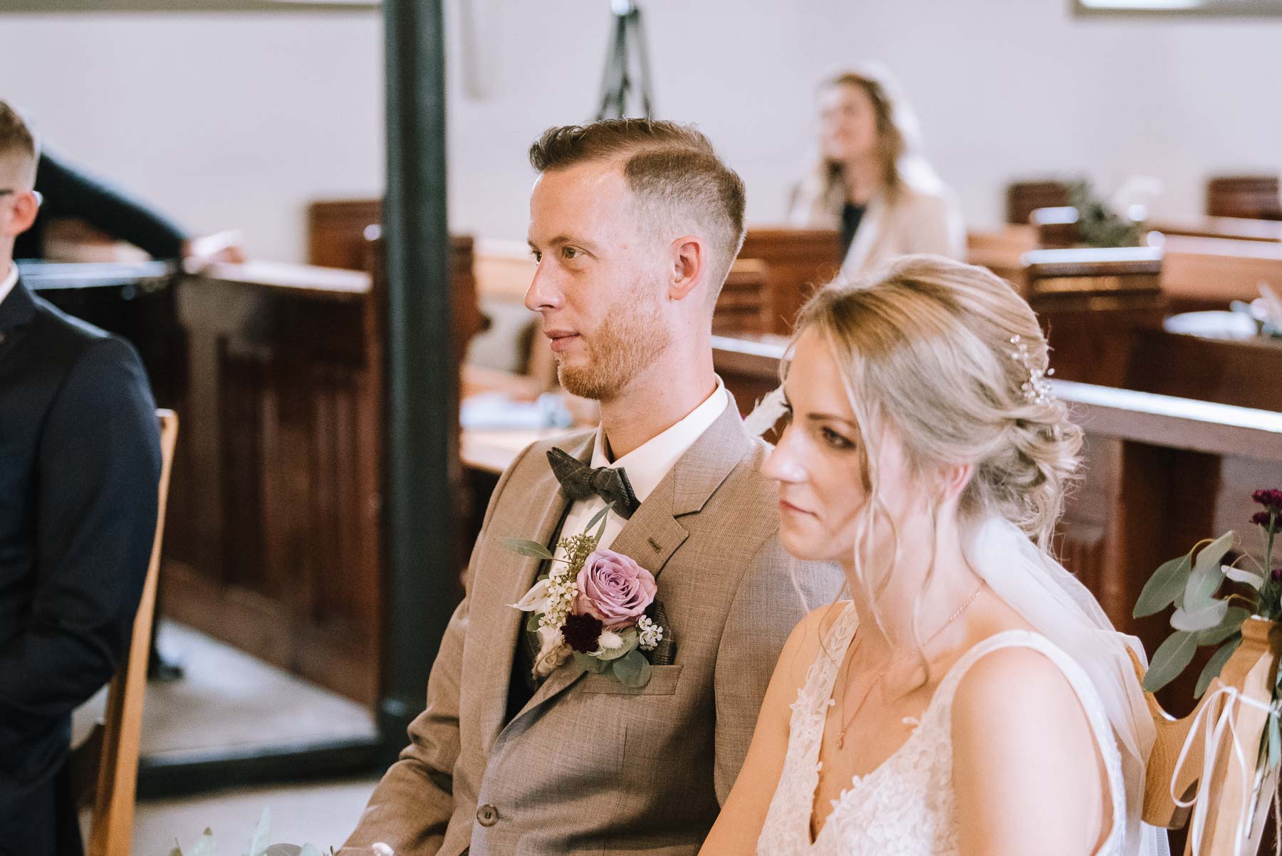 Irgendwann im Sommer traf ich mich mit Julia und Gion hier in Meinerzhagen im italienischen Eiscafé. Denn: die Beiden sind richtige Travelfans und Italien hatte es ihnen besonders angetan: die schöne hügelige Landschaft, gutes Essen, italienische Gastfreundlichkeit. Schon zu Beginn merkten wir, dass das ein langes, intensives Gespräch werden würde. So intensiv, dass wir in ein anderes Eiscafé wechseln mussten, da das erste schon bald schließen würde. Die Beiden erzählten mir von ihrer Traumhochzeit, die zunächst in einer anderen Location in Kierspe stattfinden sollte. Lange Tischreihen, Lichterketten, Livemusik, Olivenzweige und Zitronenbäume – so hatten die beiden ihren großen Tag im Frühjahr des nächsten Jahres vor Augen. Doch dann kam die Pandemie und die Hochzeit musste verschoben werden. Doch nicht nur das machte den Beiden einen Strich durch die Planung. Denn zwei Wochen vor dem Ausweichtermin offenbarte die Location plötzlich, dass sie die Hochzeit nicht so wie besprochen durchführen können würde. Doch auch diese Hiobs-Botschaft ließ Julia und Gion nicht aufgeben. Kurzerhand schnappten sie sich ihre besten Freunde und Verwandten und drehten den Bauernhof eines Bekannten drei mal auf links und räumten auf, was das Zeug hielt, um die Hochzeit in Halver und Breckerfeld feiern zu können. Und tatsächlich schafften sie es, die alte Scheune in eine wunderschöne Hochzeitslocation zu verwandeln. Natürlich