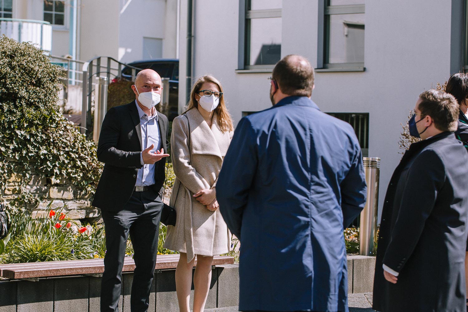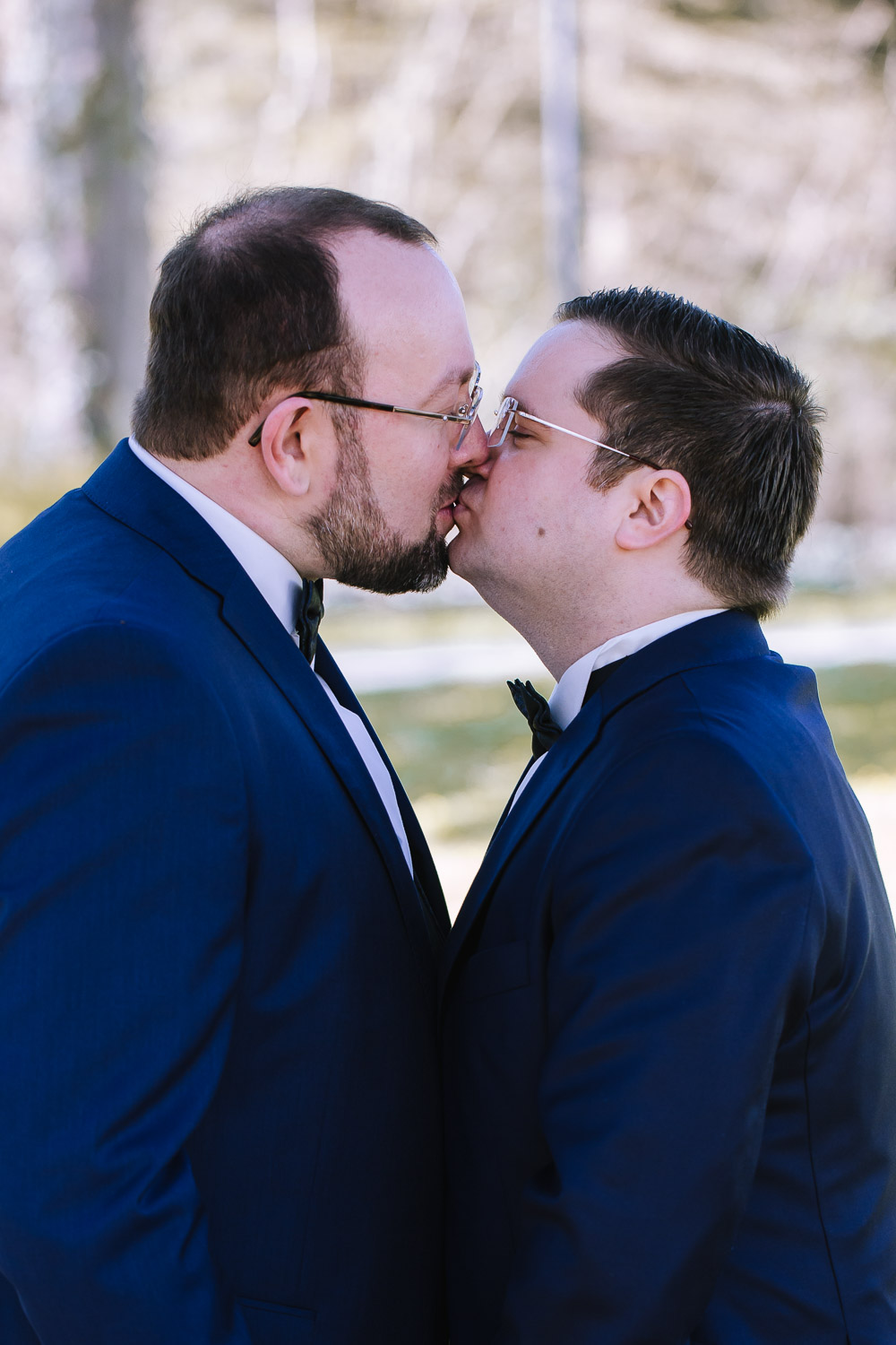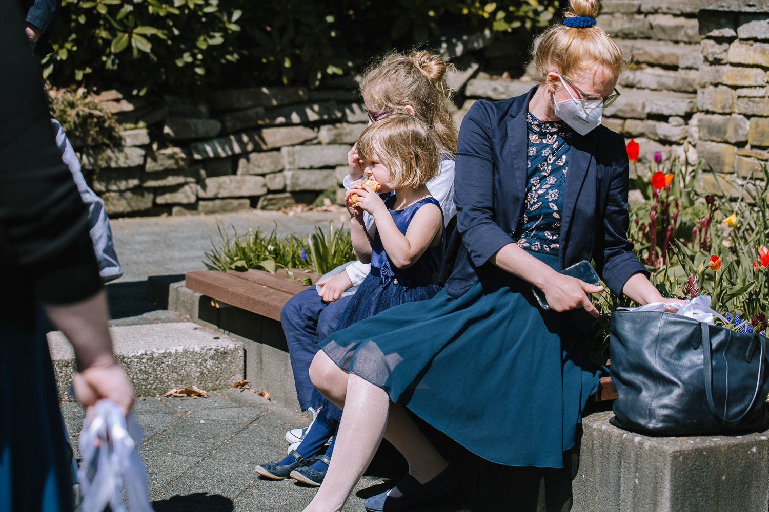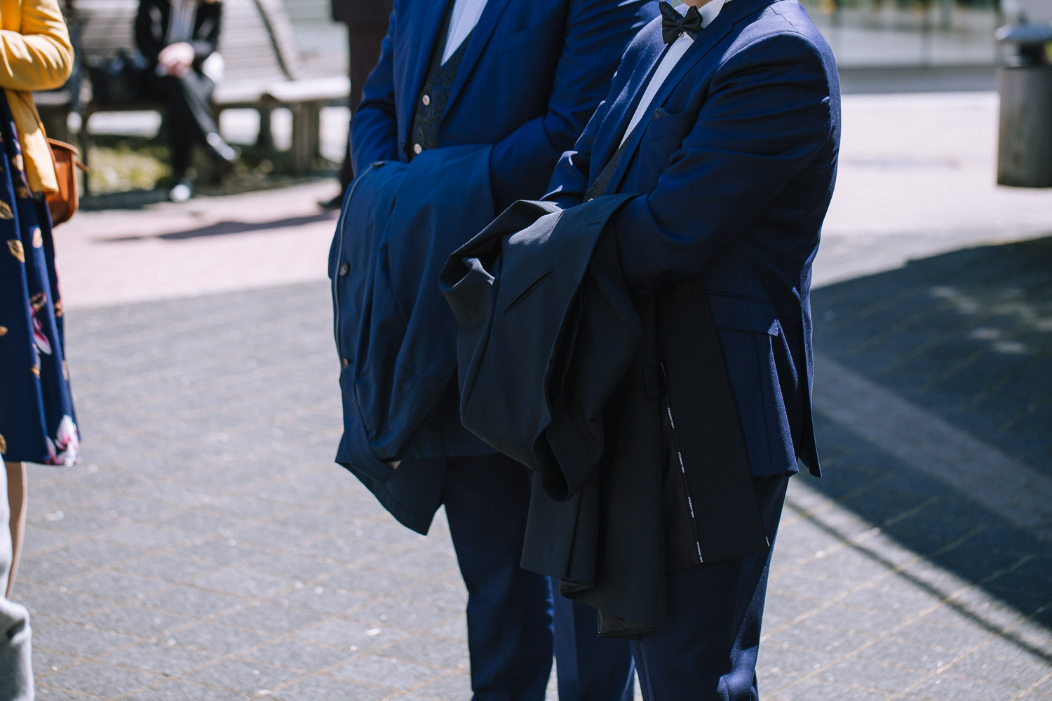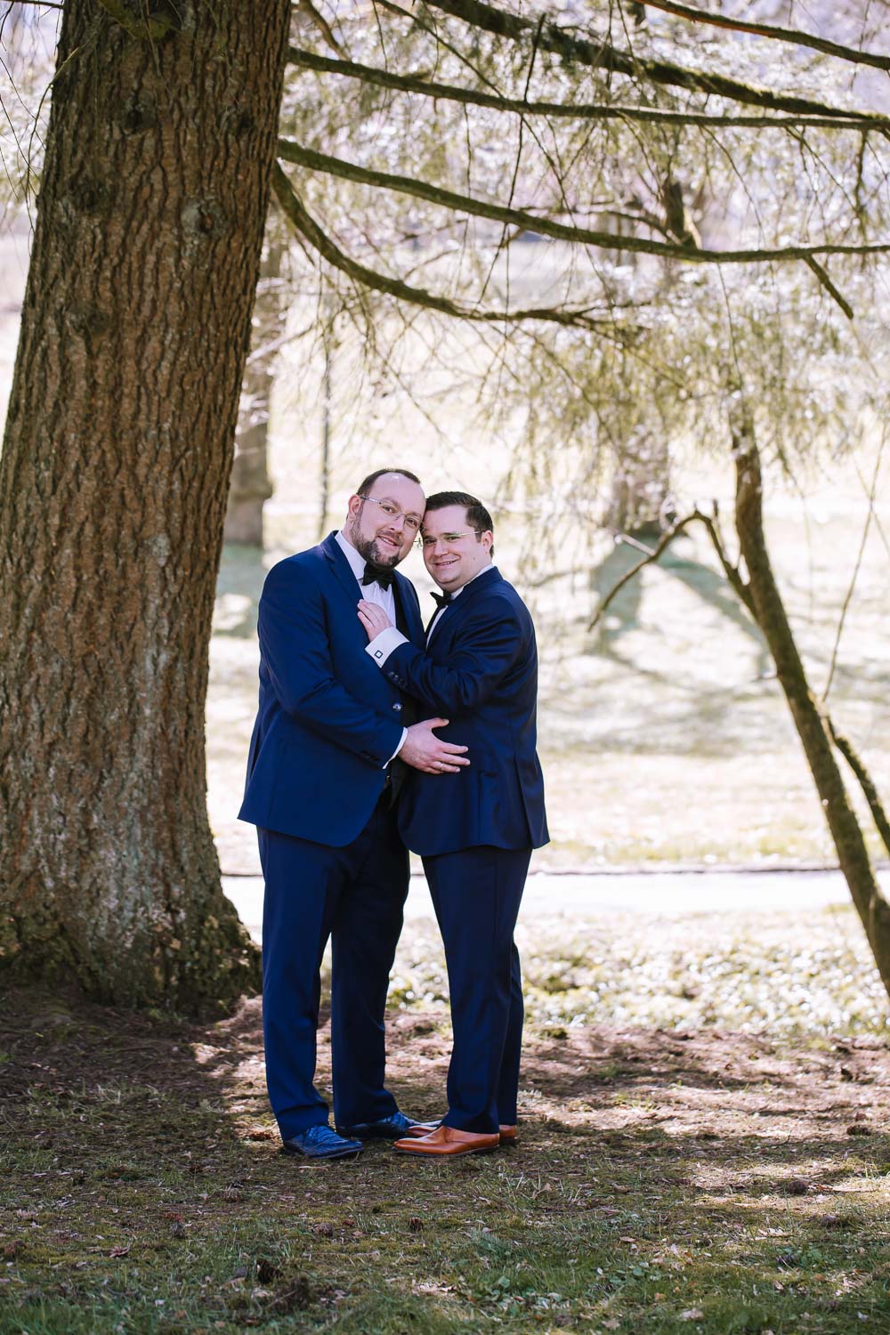 Florian und Sebastian waren tatsächlich mein erstes gleichgeschlechtliches Paar, das ich am Tag ihrer Trauung begleiten durfte. Schon während des Vorgesprächs in einem Café mit lecker Kaffee und Kuchen habe ich gemerkt, was für zwei großartige Menschen da vor mir saßen. Umso mehr freute ich mich, als die Nachricht kam, dass ich die Beiden am Tag ihrer Trauung im Standesamt Meinerzhagen mit anschließendem Bräutigamshooting an der Villa im Park Meinerzhagen und Feier im Hotel Sportalm Gipfelglück begleiten darf. Doch dann machte uns eine gewisse Pandemie mit „C“ einen Strich durch die Rechnung, sodass beinahe alles auf der Kippe stand. Doch auch für dieses Problem fanden wir schnell eine Lösung. Bezieheungsweise waren es eigentlich Florian und Sebastian, die eine Lösung fanden. Denn die ließen sich nicht unterkriegen und zogen die standesamtliche Trauung einfach durch. Zwar durften nur wenige Personen mit ins Trauzimmer und auch ich durfte nur ganz kurz die Kamera durch die Tür halten, um eine Handvoll Bilder zu machen, aber trotzdem waren alle Lieblingsmenschen von Florian und Sebastian dabei und empfingen die Beiden herzlich mit selbstgemachten Weddingwands draußen vor dem Standesamt Meinerzhagen. Nach der Gratulation und dem Sektempfang machten wir uns auf den Weg in den